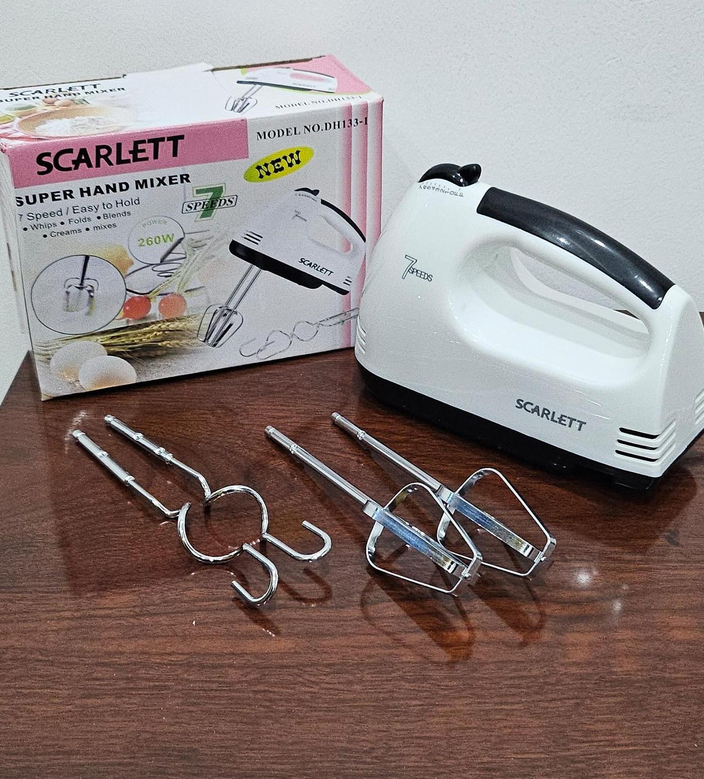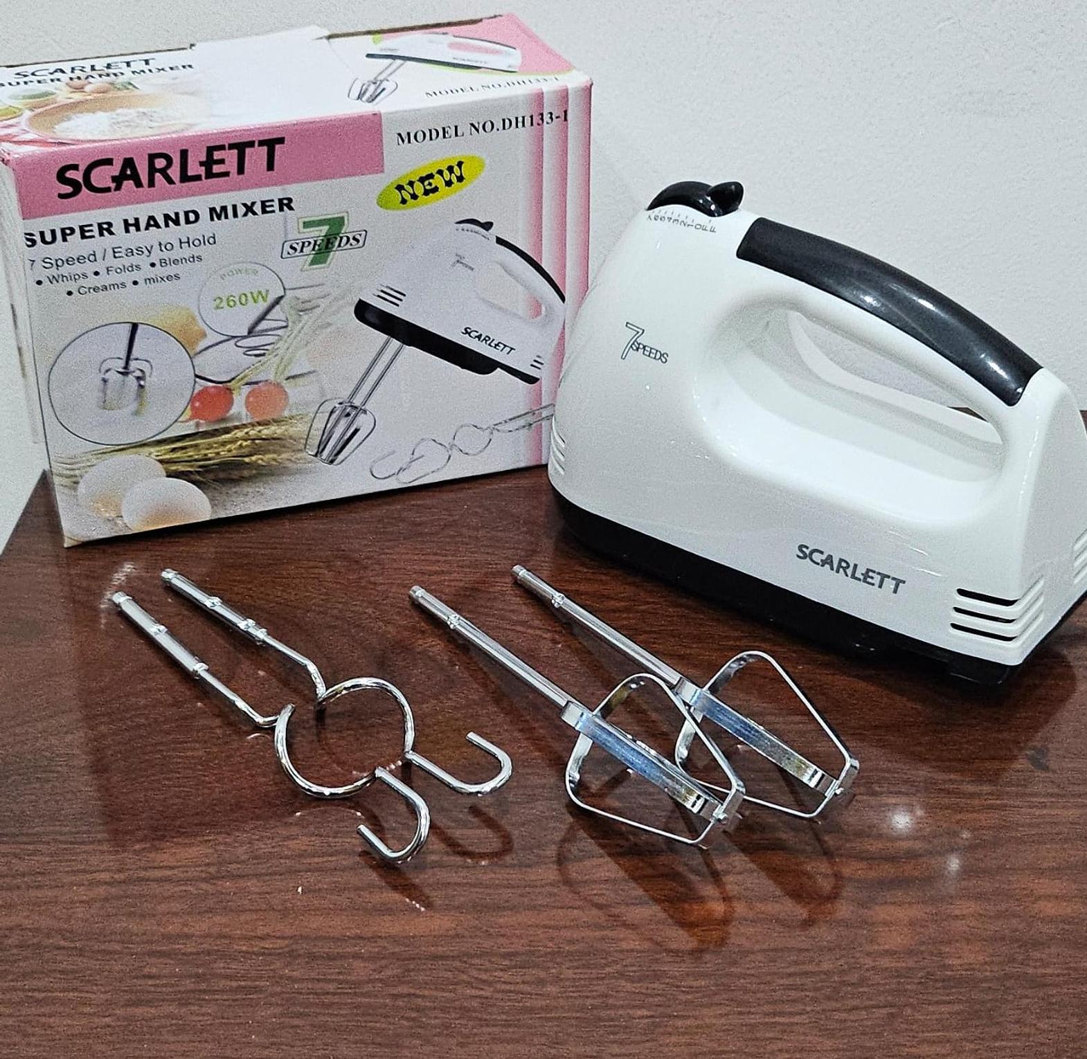 7 speed electric hand mixer, egg beater, spiral whisk brand: scarlett 7 speed it is easy to hold and use it can be used for whipping, mixing, blending, creaming and folding. electric hand mixer kitchen beater spiral whisk stand cake baking food blender egg beater cream dough hand electric mixer