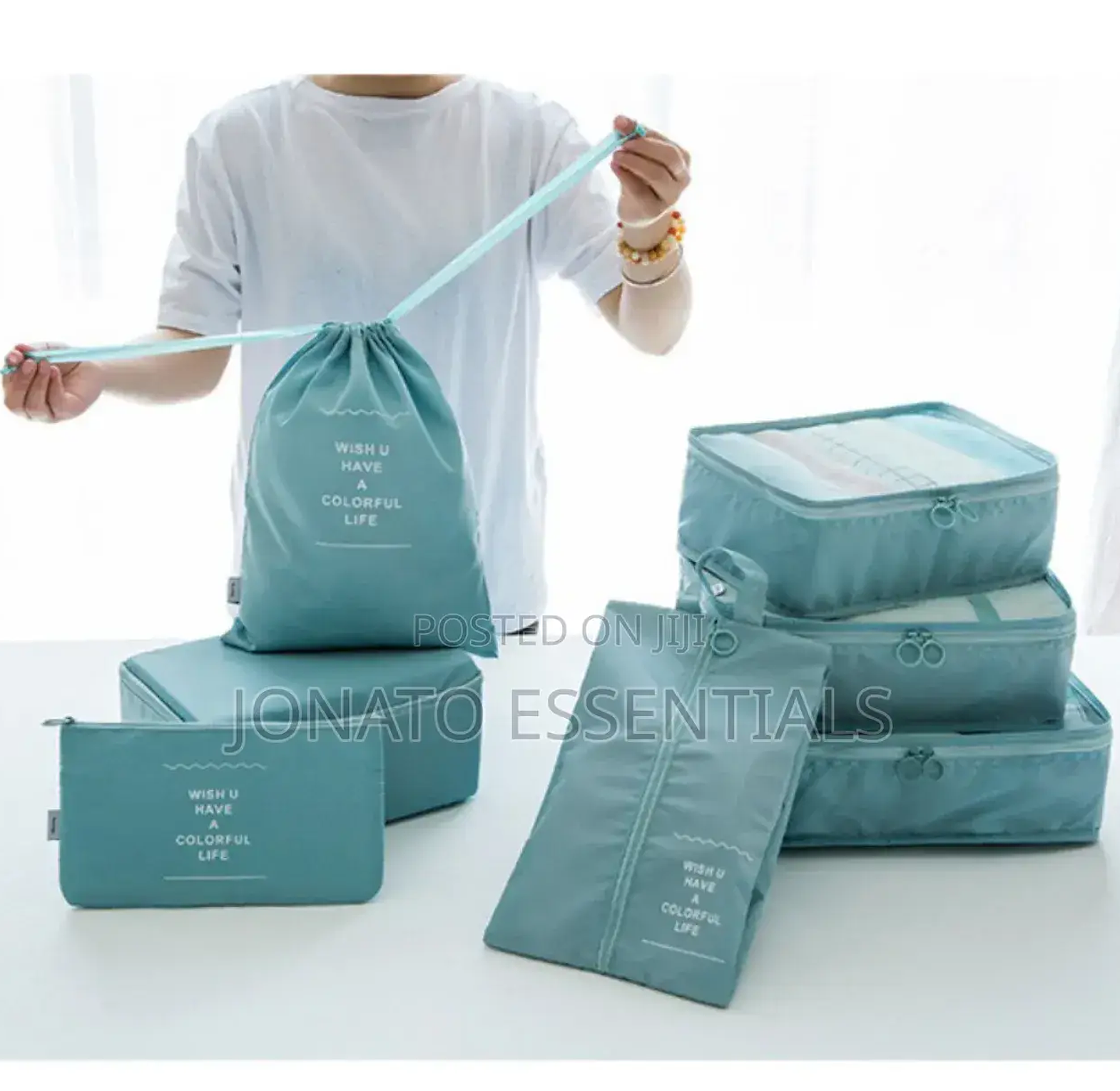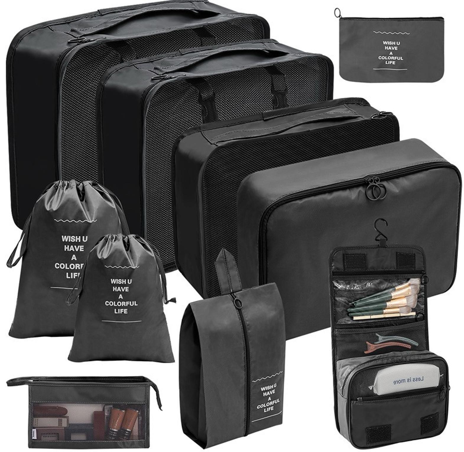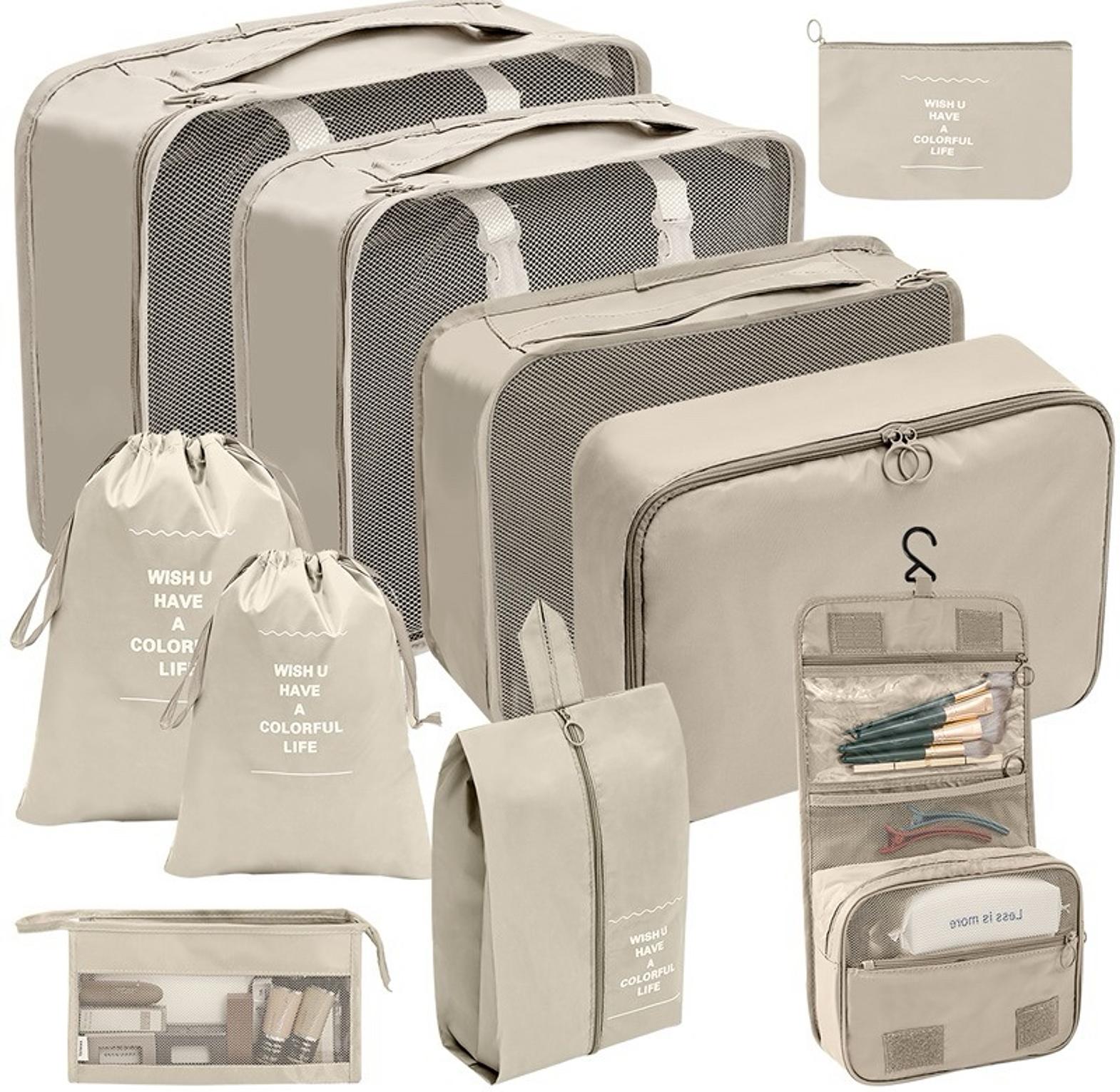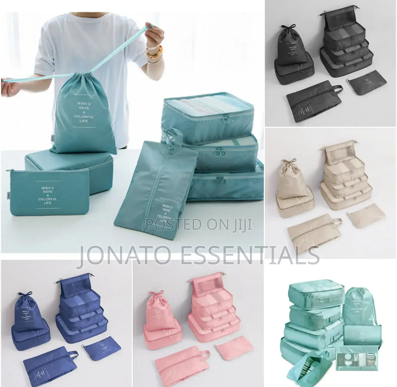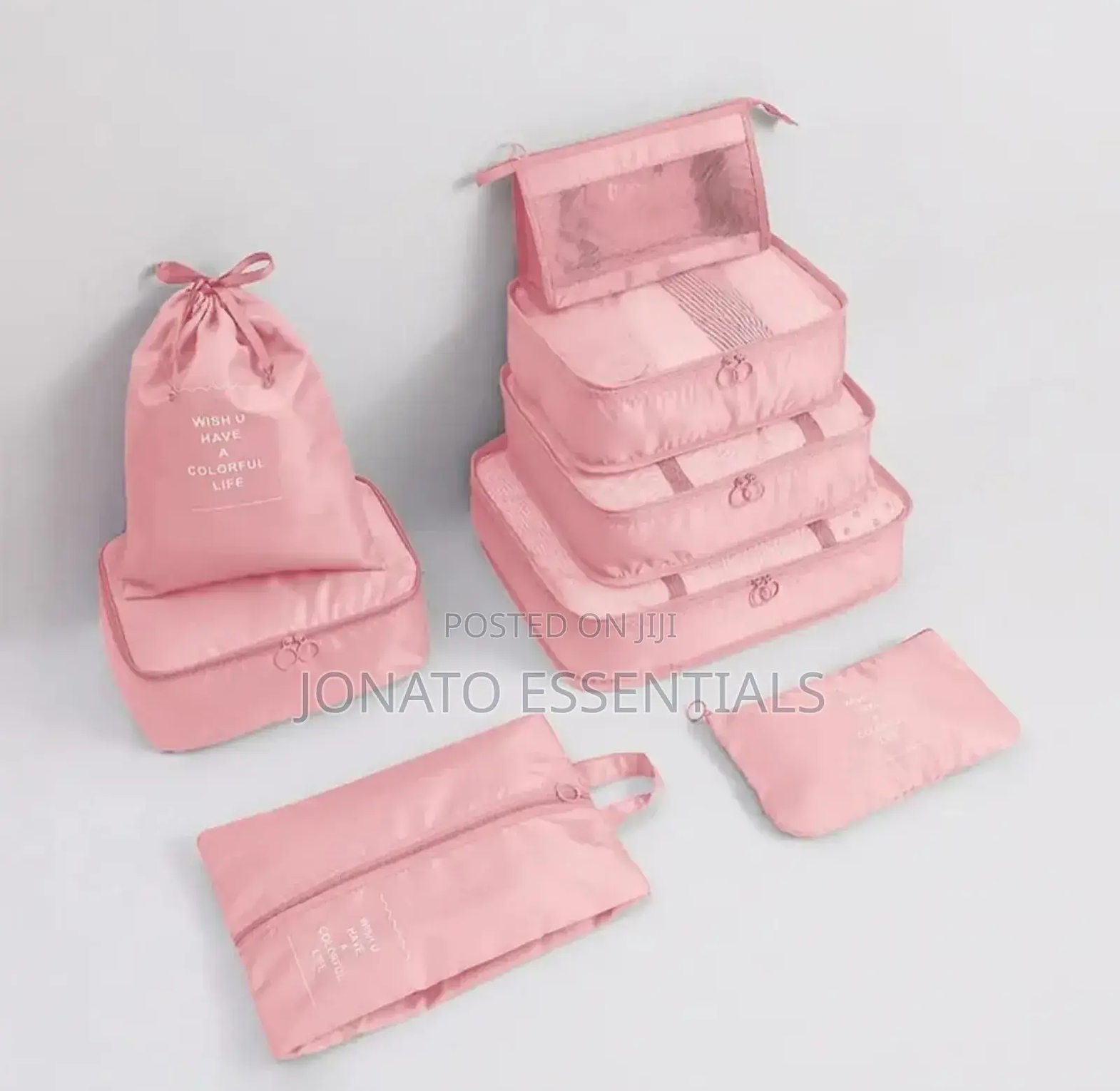 8pcs luggage travel organizers for suitcase with toiletry case 8-pc set includes: 1 large & 2 medium cubes, 2 small cubes, 2 accessory bags, 1 laundry/shoe bag. versatile use :ideal for storing cosmetics, wash items, or any small items that need organized storage. practical and beautiful. speed up packing and classify your goods. made of oxford material with breathable mesh. heavy duty design with double zips makes it easy to open and close travel storage bag set eight-piece cosmetic toiletry classification bag suitcase organizer pouches durable polyester fabric.