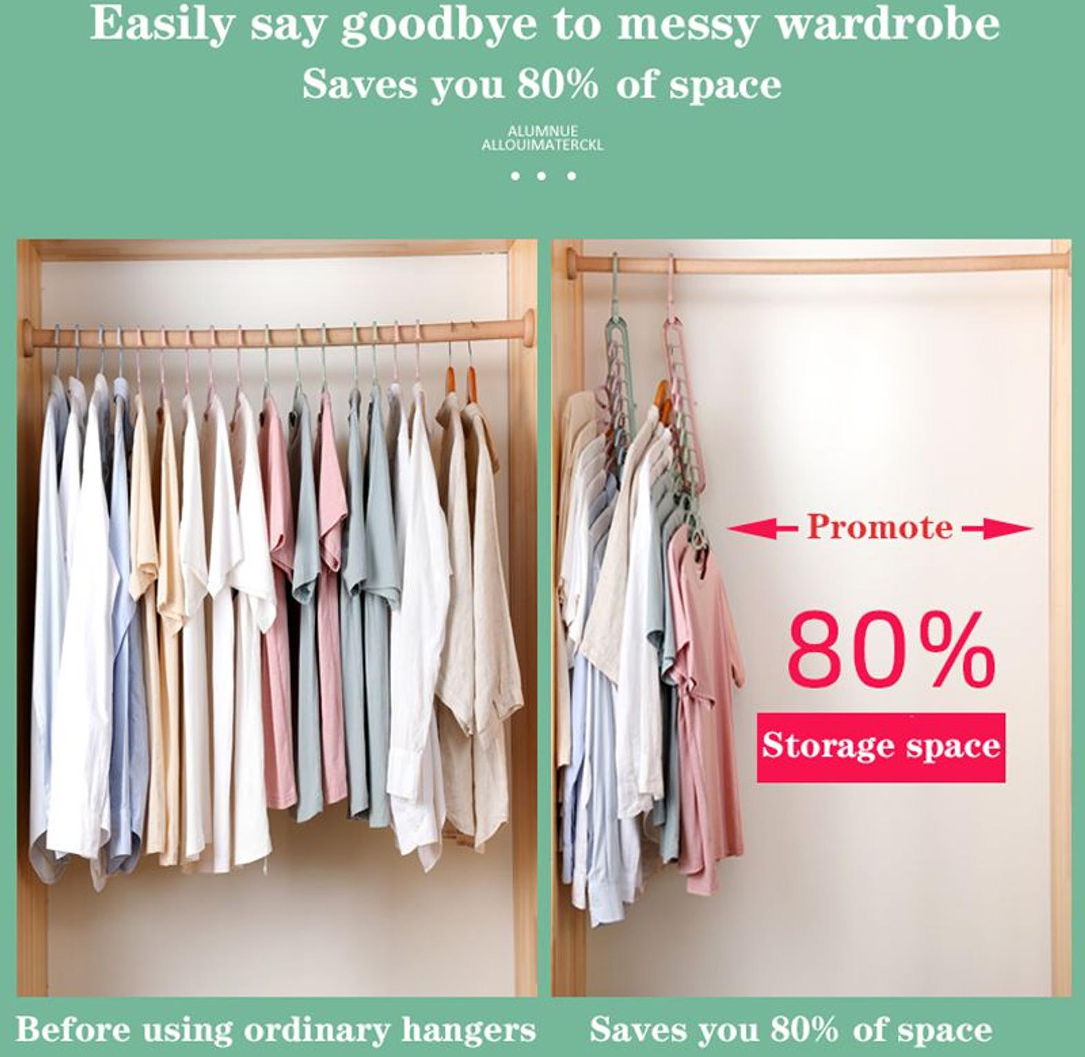 9 hole hanger holder, closet organizer, wardrobe organizer has 9 holes hanger. it is a multi-port space saving hanger 1.this hanger can greatly save your wardrobe space.dormitory and apartment for limited space. 2.keep your shirts, pants and shirts organized and wrinkle-free.flexible joints at both ends for horizontal or vertical use. 3.sturdy pp material, convenient nine-hole branch, the crane can rotate 360 degrees, the track has built-in buckle, can be 4.used horizontally and vertically, lightly stored and dried, is a good helper for your admission. 9-hole clothes hanger rack closet organizer space saving hanger for clothes multi-port clothes rack folding clothes drying rack.