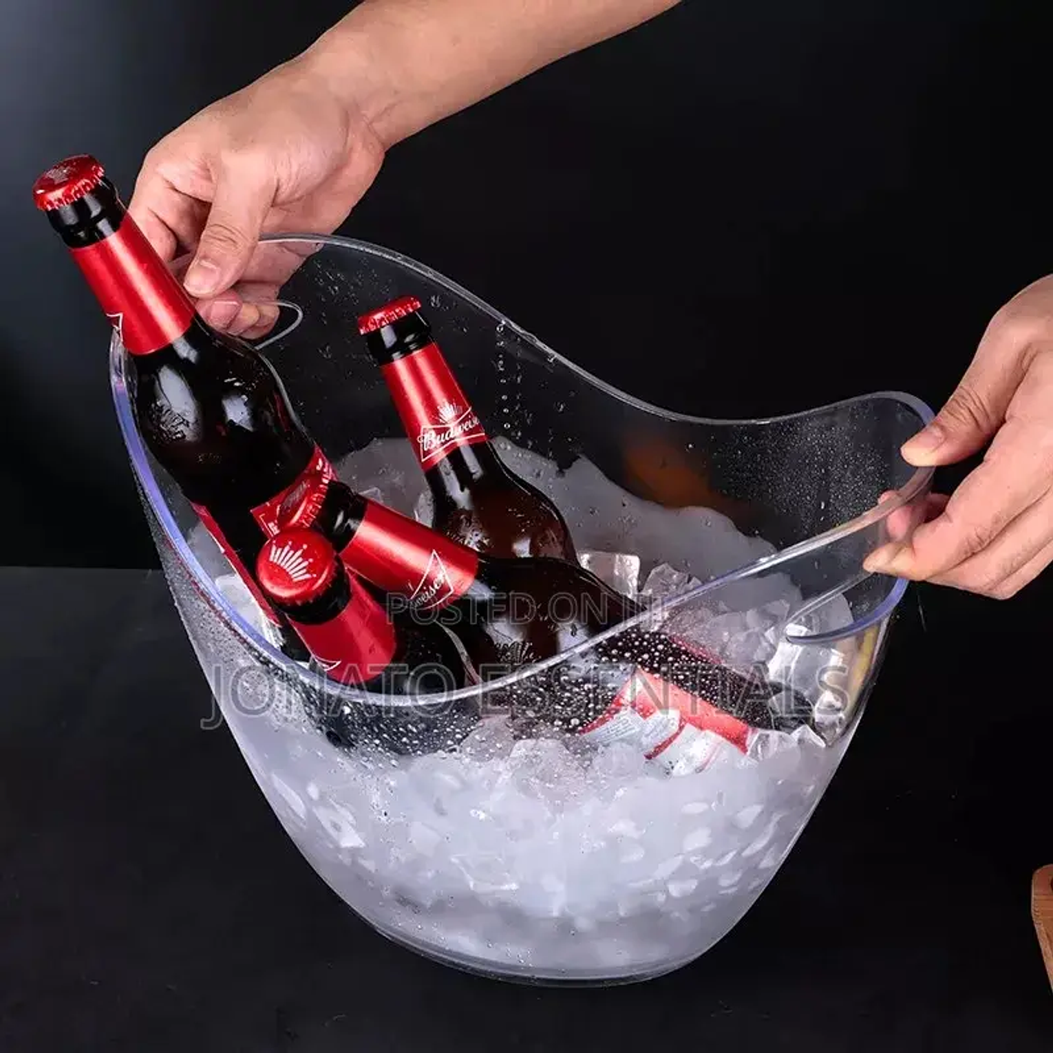 easy-to-use beverage bucket, perfect for holding 6 bottles of beer, 4 bottles of champagne, or other beverages such as cold juices. great ice bucket for parties to store drinks.