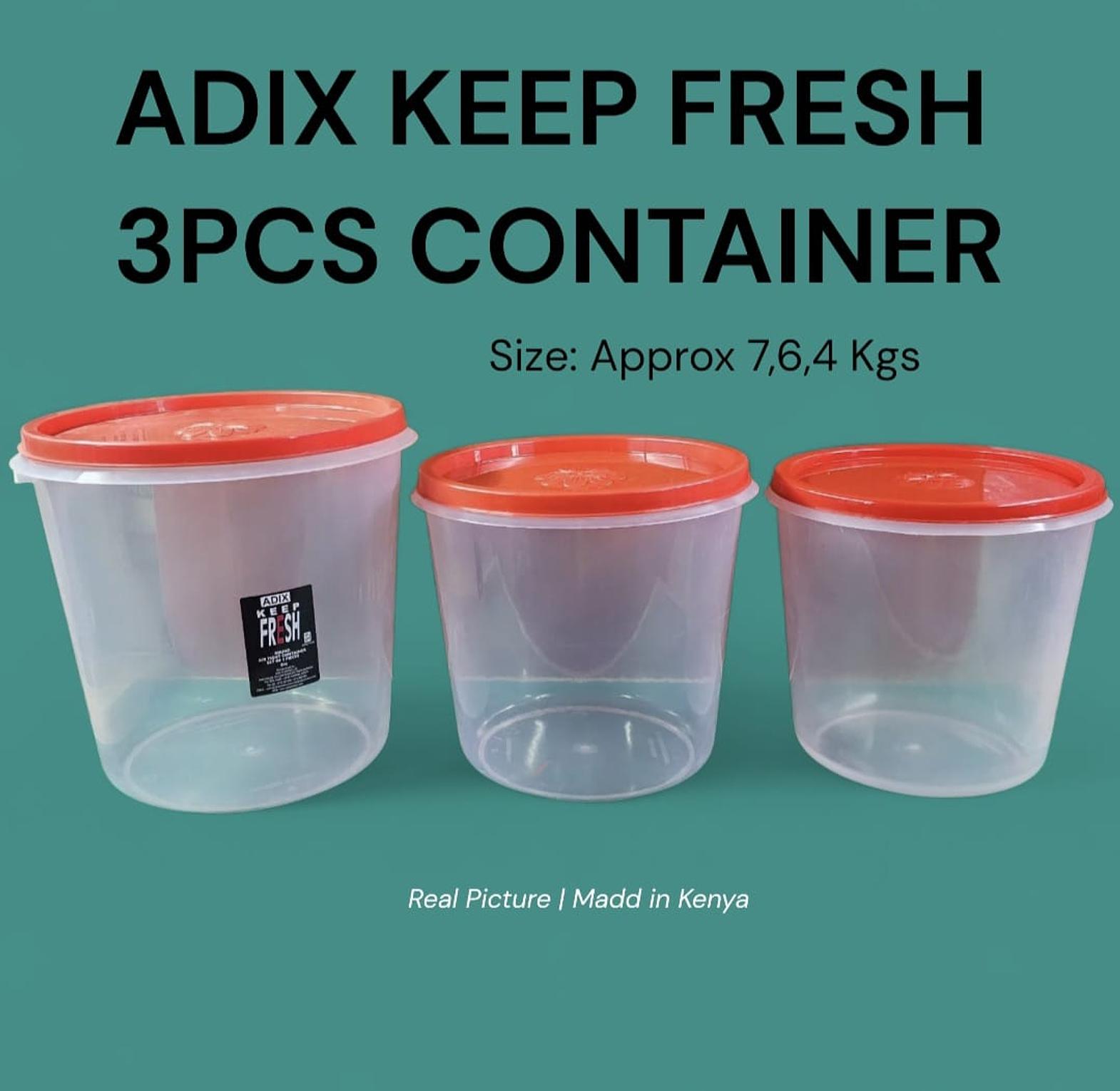 Upgrade your kitchen with the original Adix Keep Fresh 3pcs Container Set, essential food storage for every Kenyan home. This versatile set includes large, medium, and small containers, perfect for keeping maize flour, rice, sugar, and cereals fresh and safe from pests. Made from durable, food-grade plastic with secure bright orange lids, they ensure airtight storage to prevent food waste and keep your fridge or pantry neatly organized. Get this multipurpose kitchen organizer set at the best price today, available for fast delivery across Nairobi and Kenya.