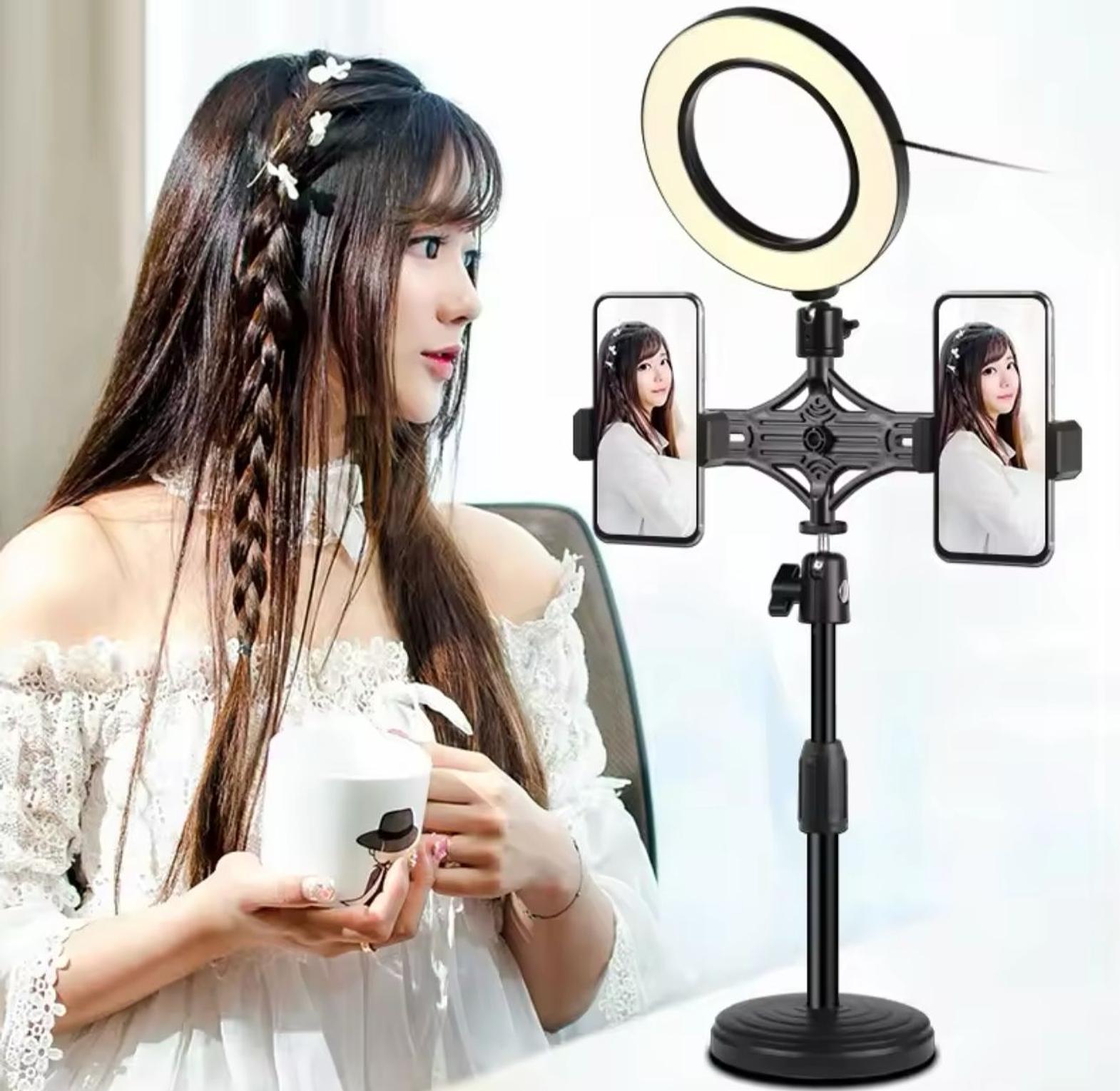 Adjustable ring light with dual phone holder & tripod stand ring light universal dual position mobile phone clip perfect for live streaming, video calls, and content creation upgrade your live streaming and content creation setup with this adjustable ring light with dual phone holder & tripod stand. designed for youtubers, tiktok creators, influencers, and online sellers, this versatile setup enhances your lighting while allowing you to record or broadcast from two phones simultaneously.