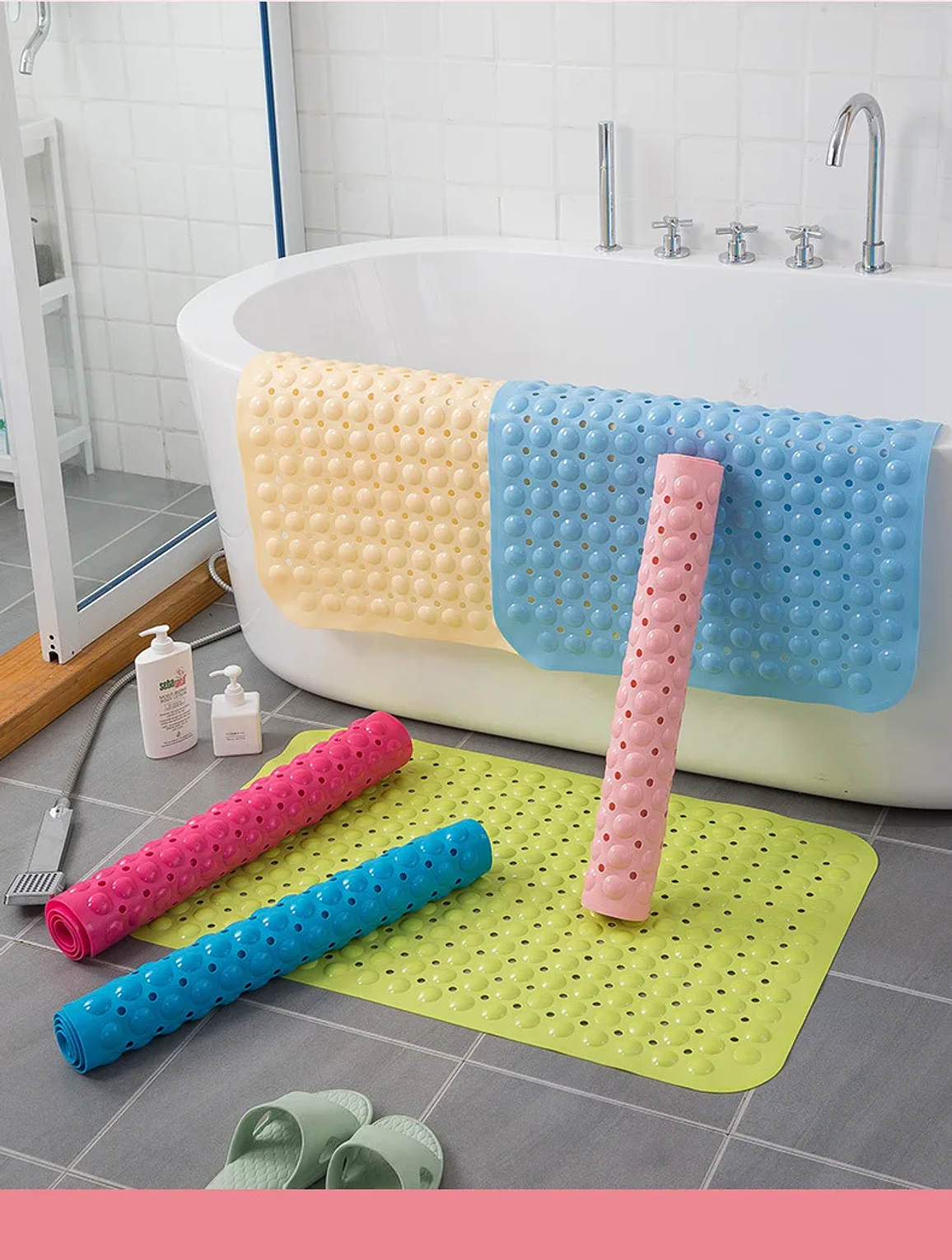 Antislip bathroom shower mat bathroom antislip mats size: 70cm by 40cm foot cleaning and massage, silica gel column, sole cleaning massage, relieve your fatigue. pvc environmental protection material, anti-skid to protect bathroom safety. feel free to bend, flexible and flexible, soft and safe, not easy to crack and deform. bathroom mat anti-slip sucker pvc bath mat with drain hole silicone bathing rugs foot massage pad bathtub soft shower mat.