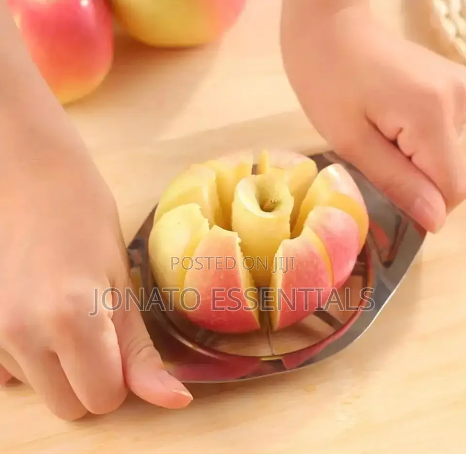 simplify your kitchen prep with our high-quality apple slicer, designed to deliver even, precise slices with minimal effort. made with durable stainless steel blades, this handy tool is perfect for slicing apples, pears, and other fruits quickly and safely.