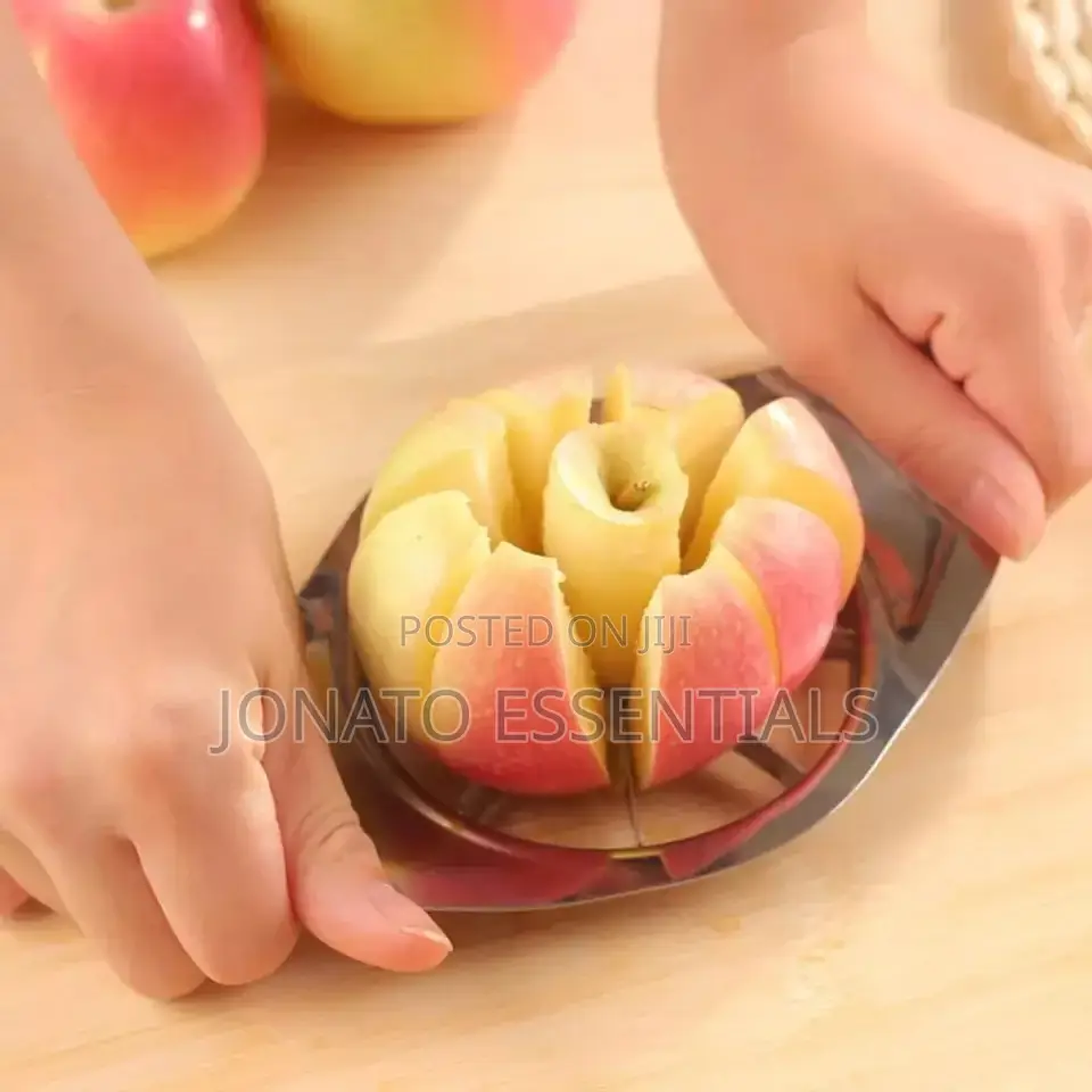 apple slicer, stainless steel apple slicer, fruit slicer, durable apple cutter, easy-to-use slicer, kitchen tools, ergonomic apple slicer, dishwasher-safe slicer, quick fruit slicer, apple corer and slicer, professional apple slicer, sharp blade slicer, fruit prep tools, multi-use slicer, compact apple cutter.