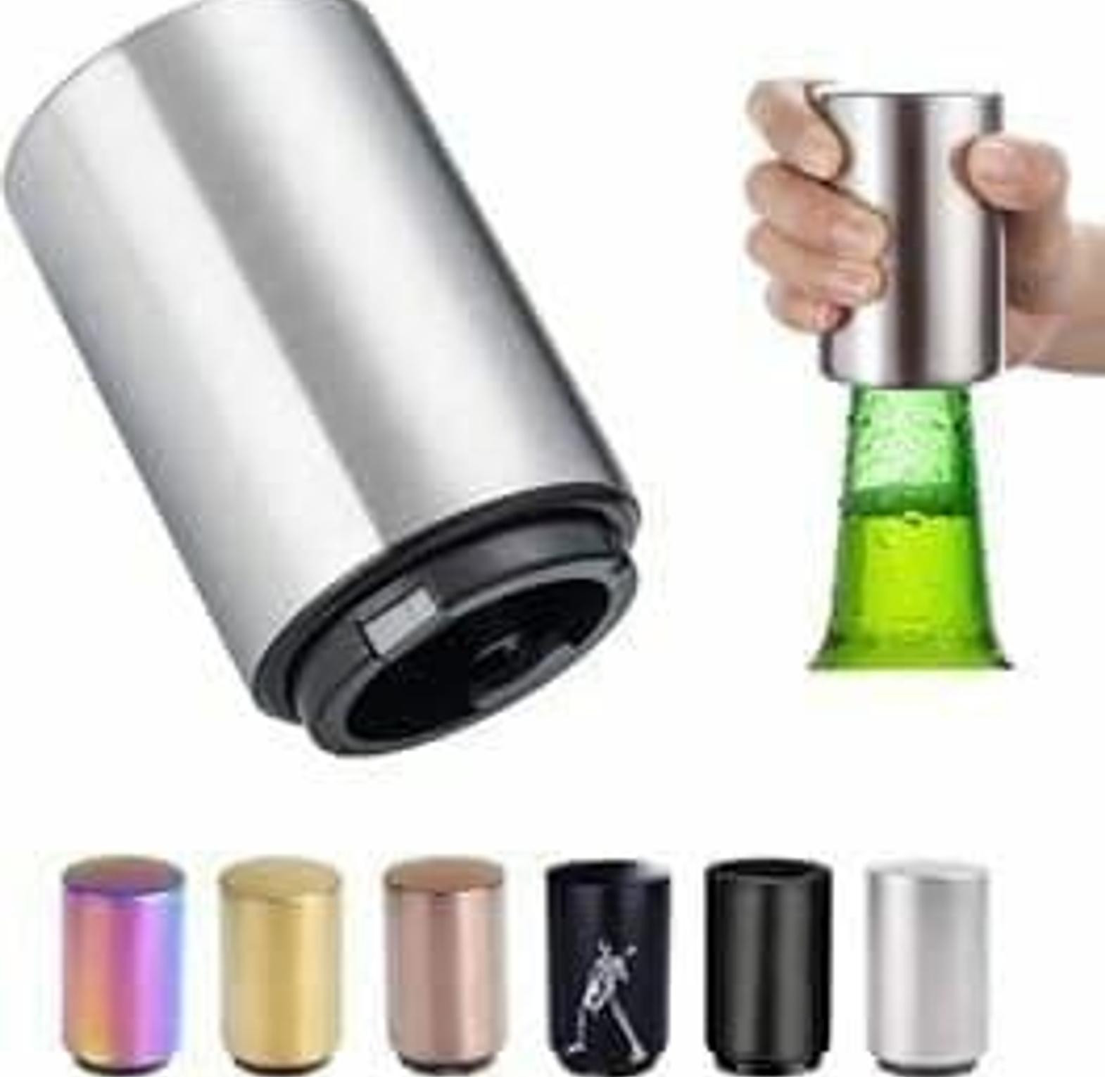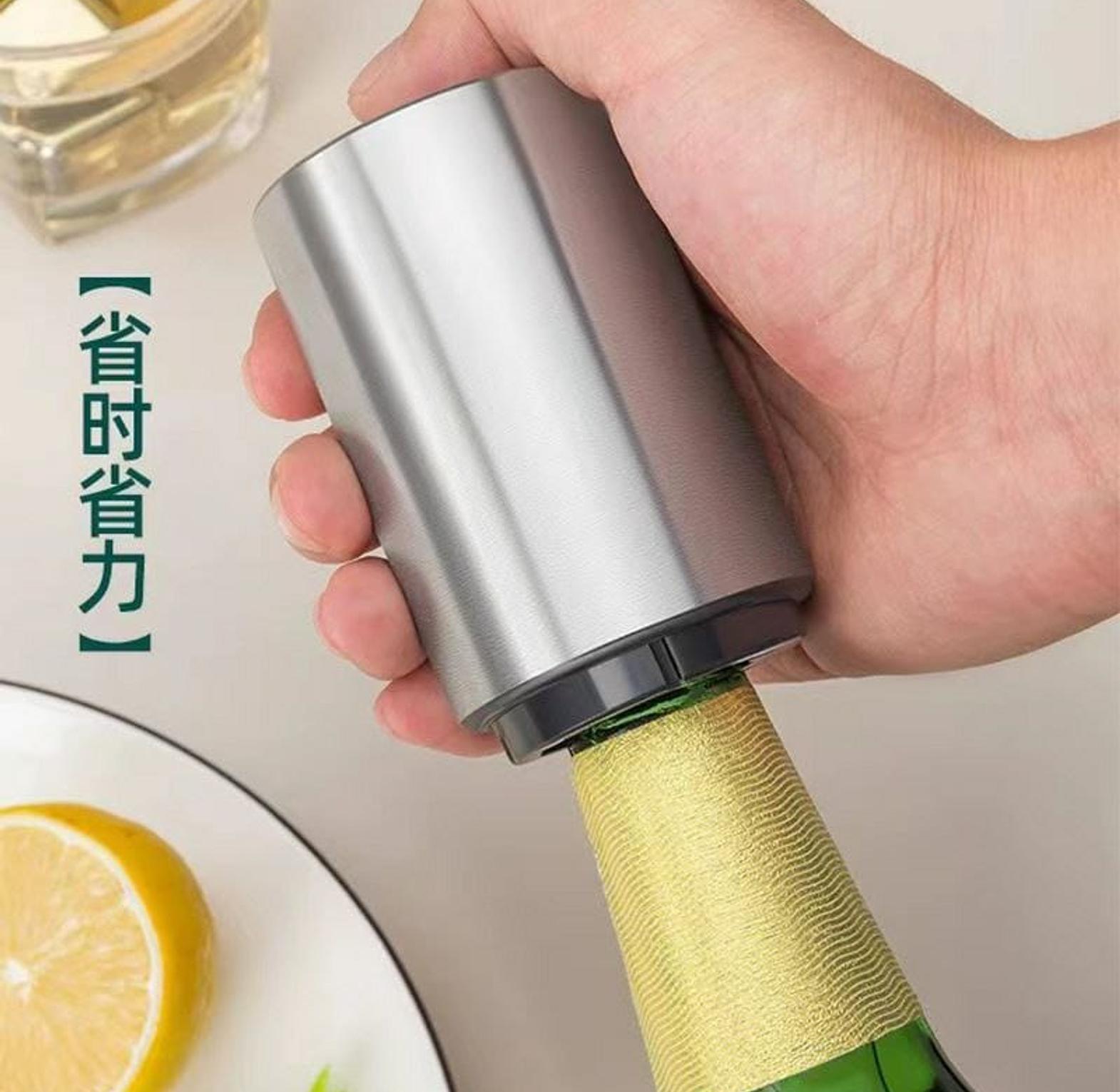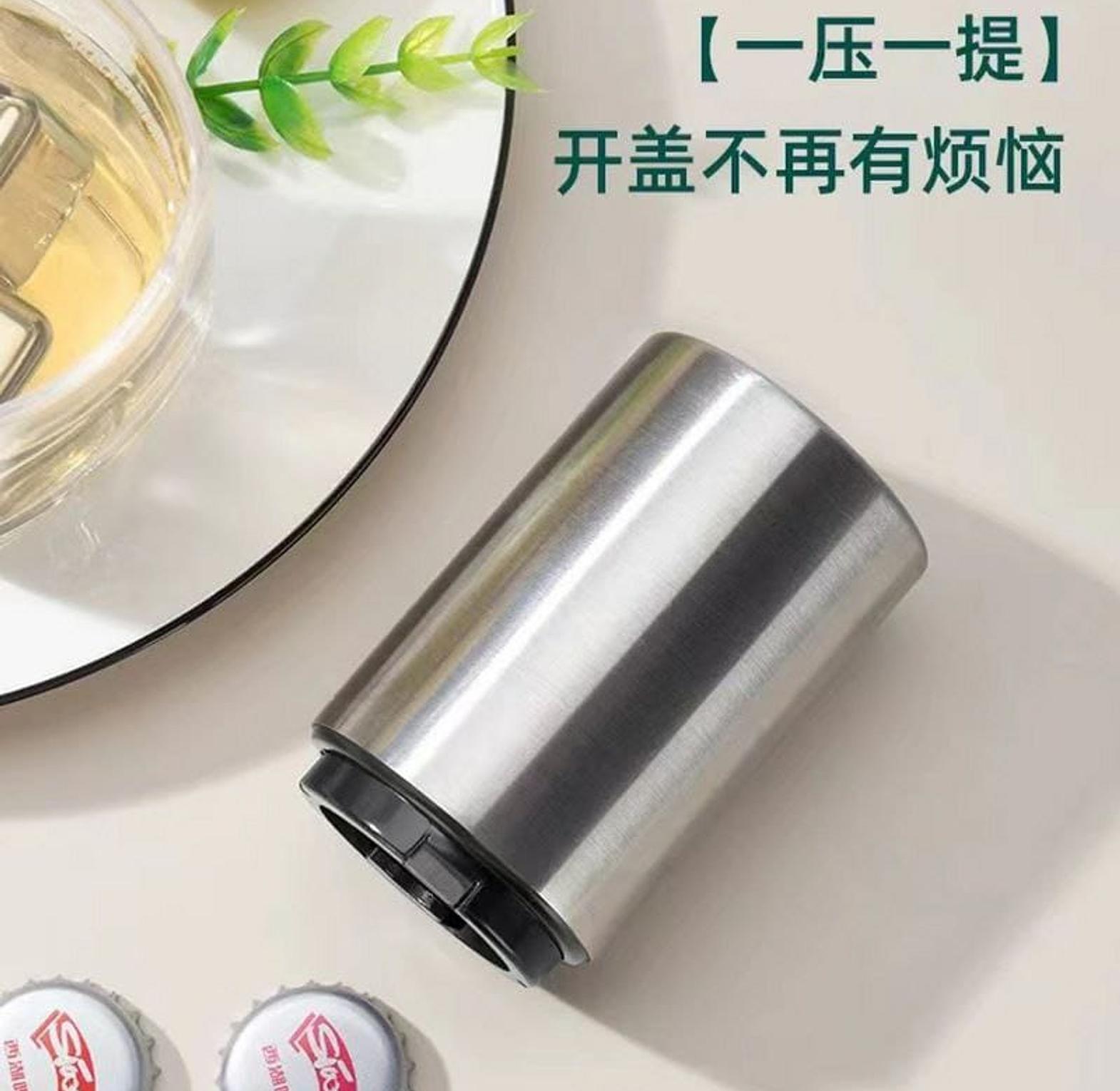 Automatic beer or soda opener opens beer bottles in less than a second which makes this a rather superb novelty gifts. one handed too making this a cool beer gadget. just place this automatic bottle opener on the bottle cap, press it down to the end, and then pop it off. the cap is easily removed from the bottle even with one hand ! perfect for removing the cap of beer, soda and glass bottle. stainless steel beer bottle opener kitchen creative magnetic automatic press lid opener tool portable bar gadget accessories.