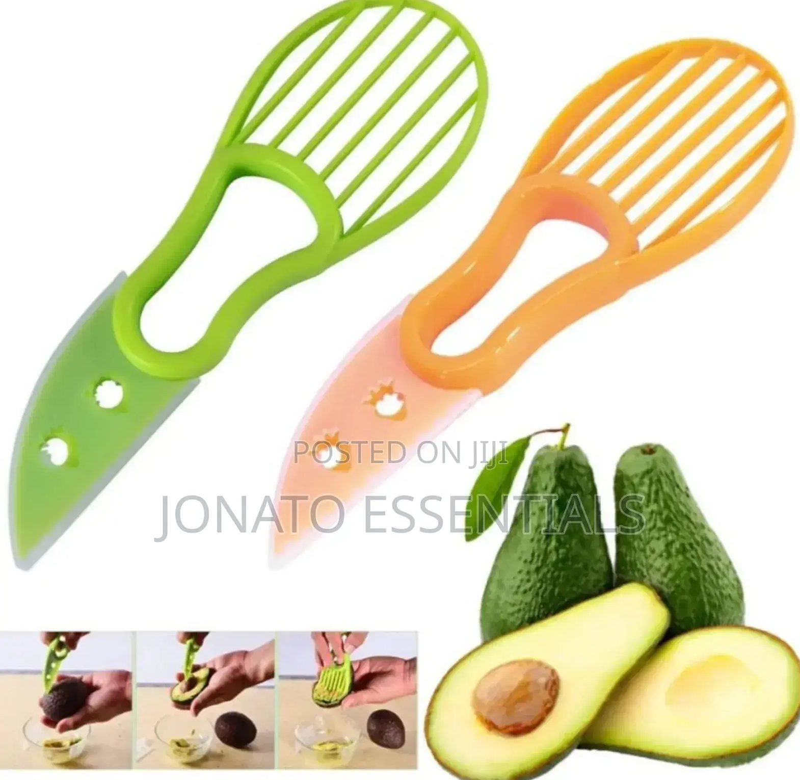 Avocado slicer, peeler and cutter ovacado slicer 1.easy to use, ergonomic handle makes the process of slicing, make cutter avocados very simple. 2.simple care, dishwasher safe, avocado gadget. 3.the cut flesh is the same uniformity. 4.you can add the healthy avocado meat to the salad or main course. 5.very suitable as a small gift to others. 3 in 1 avocado slicer shea corer butter fruit peeler cutter pulp separator plastic knife kitchen vegetable tools kitchen gadgets.