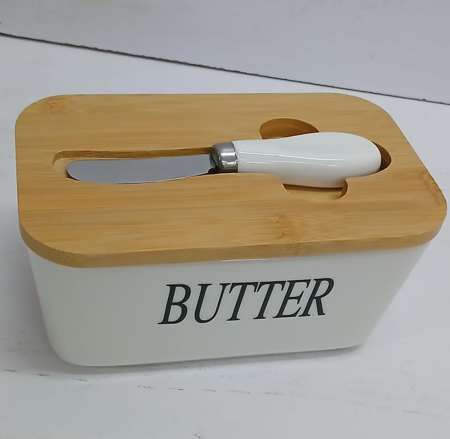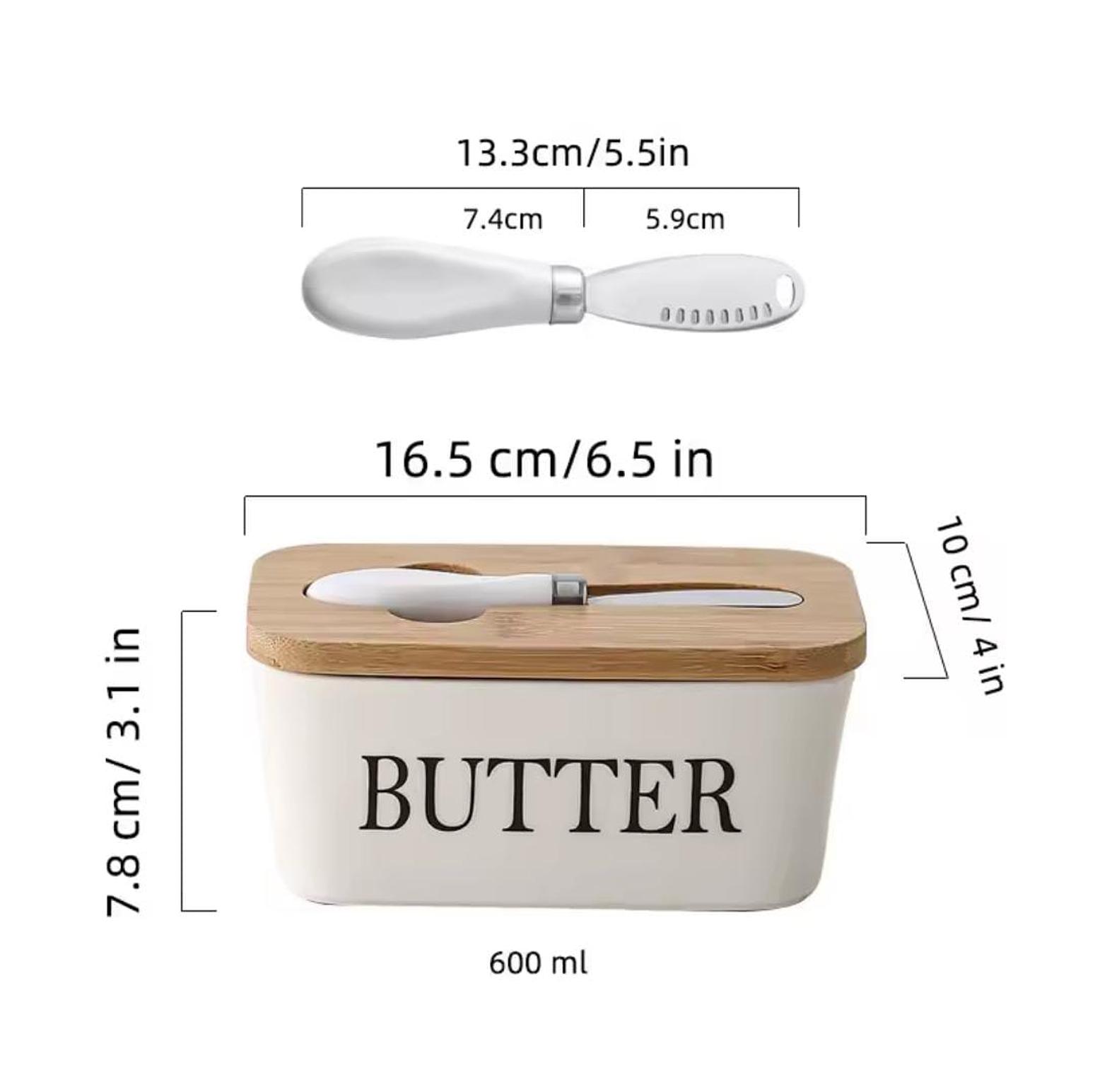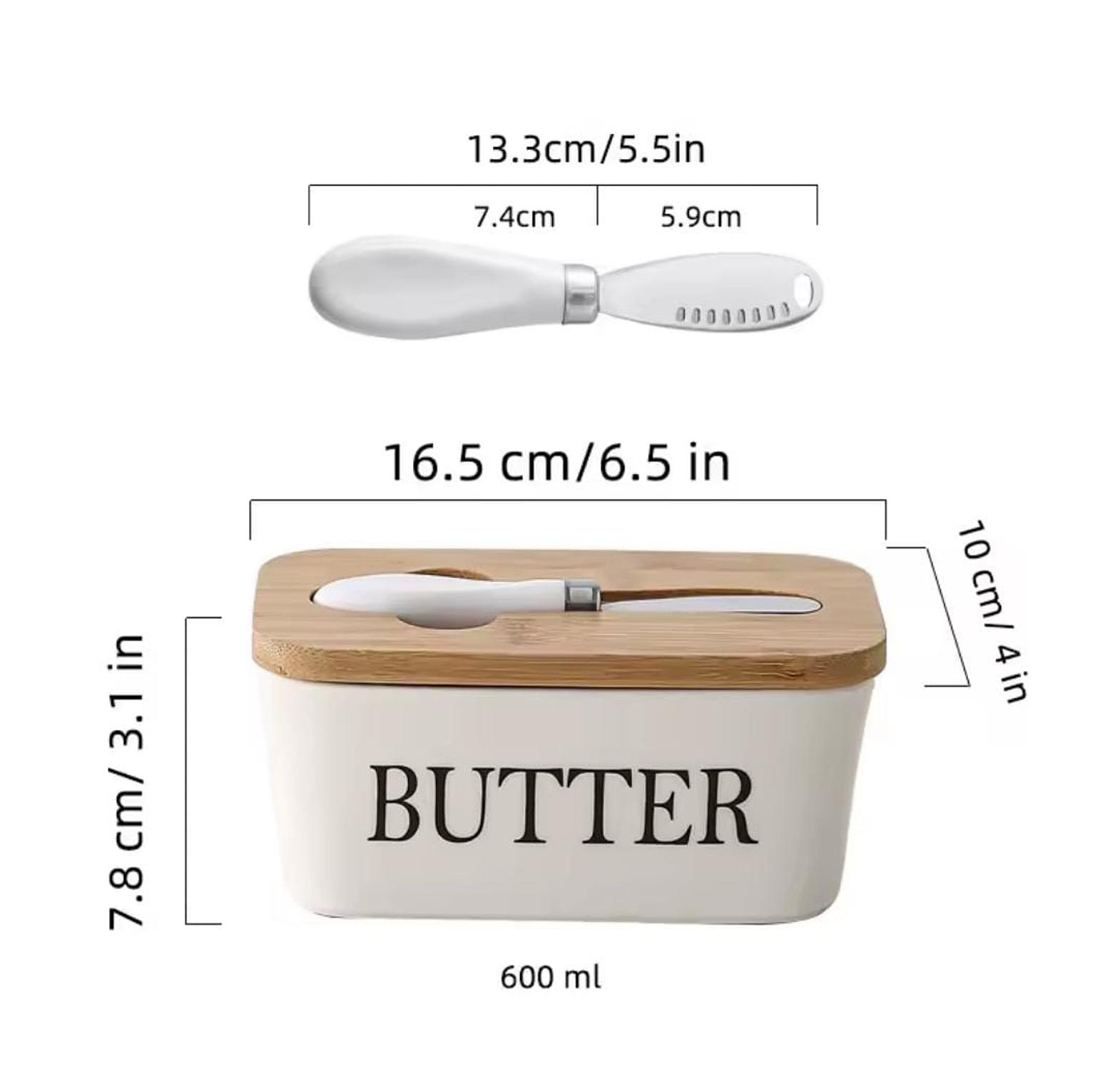 Butter dish and storage box with a butter knife butter spread kit ceramic container, airtight bamboo cover + spread knife. butter pan with knife and lid: this butter pan comes with a lid and a butter knife. when you need to cut butter or spread bread, you can immediately remove the groove of the butter knife for use. 2. unlike plastic materials, our ceramic butter containers use professional grade non stick ceramics, which are suitable for use in microwave ovens when butter needs to soften. and it is also easy to care for, just rinse with water or put in the dishwasher. ceramic butter container box restaurant seal storage boxes cheese box with knife bamboo lid butters slicer butter dish tableware.