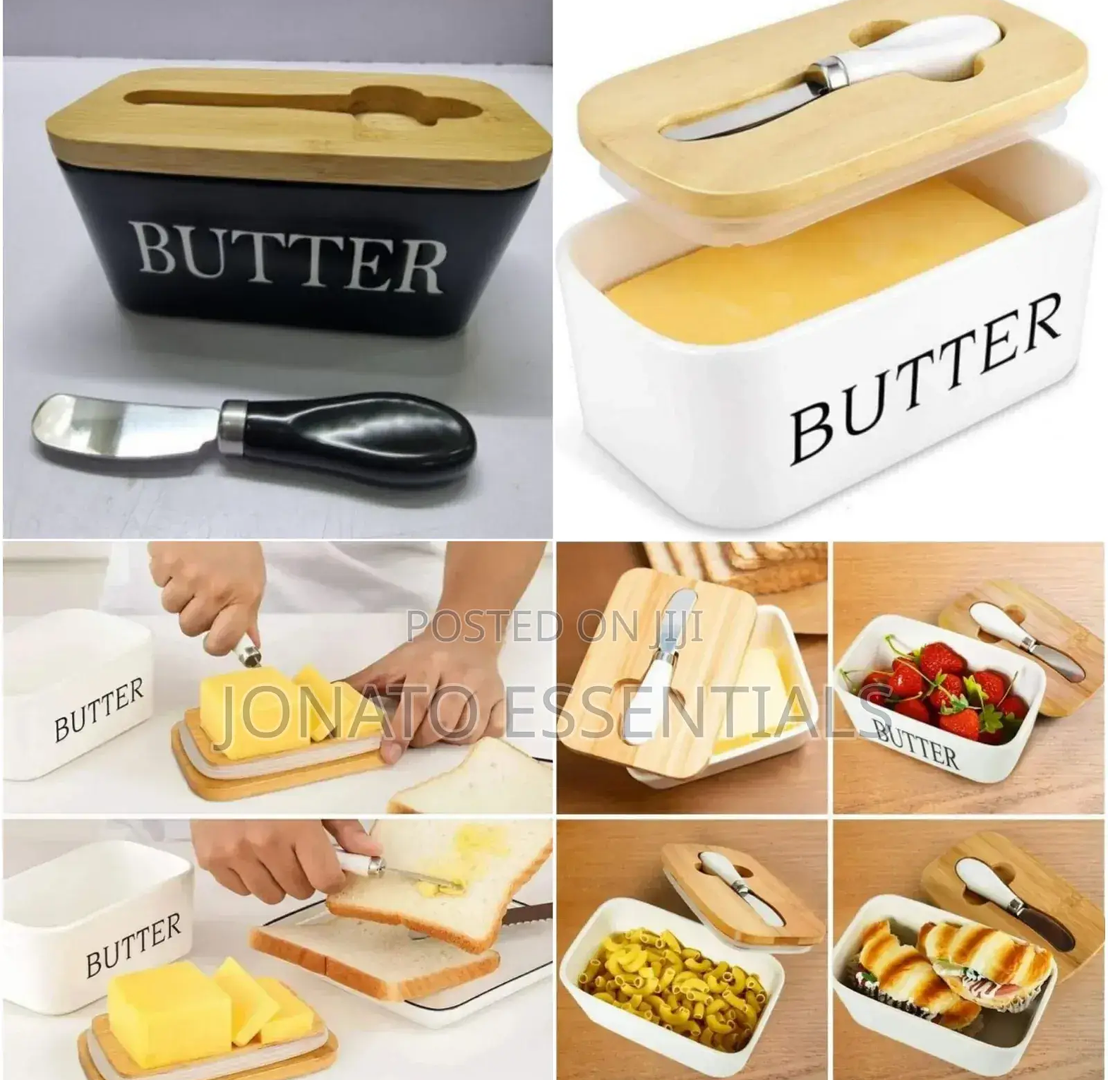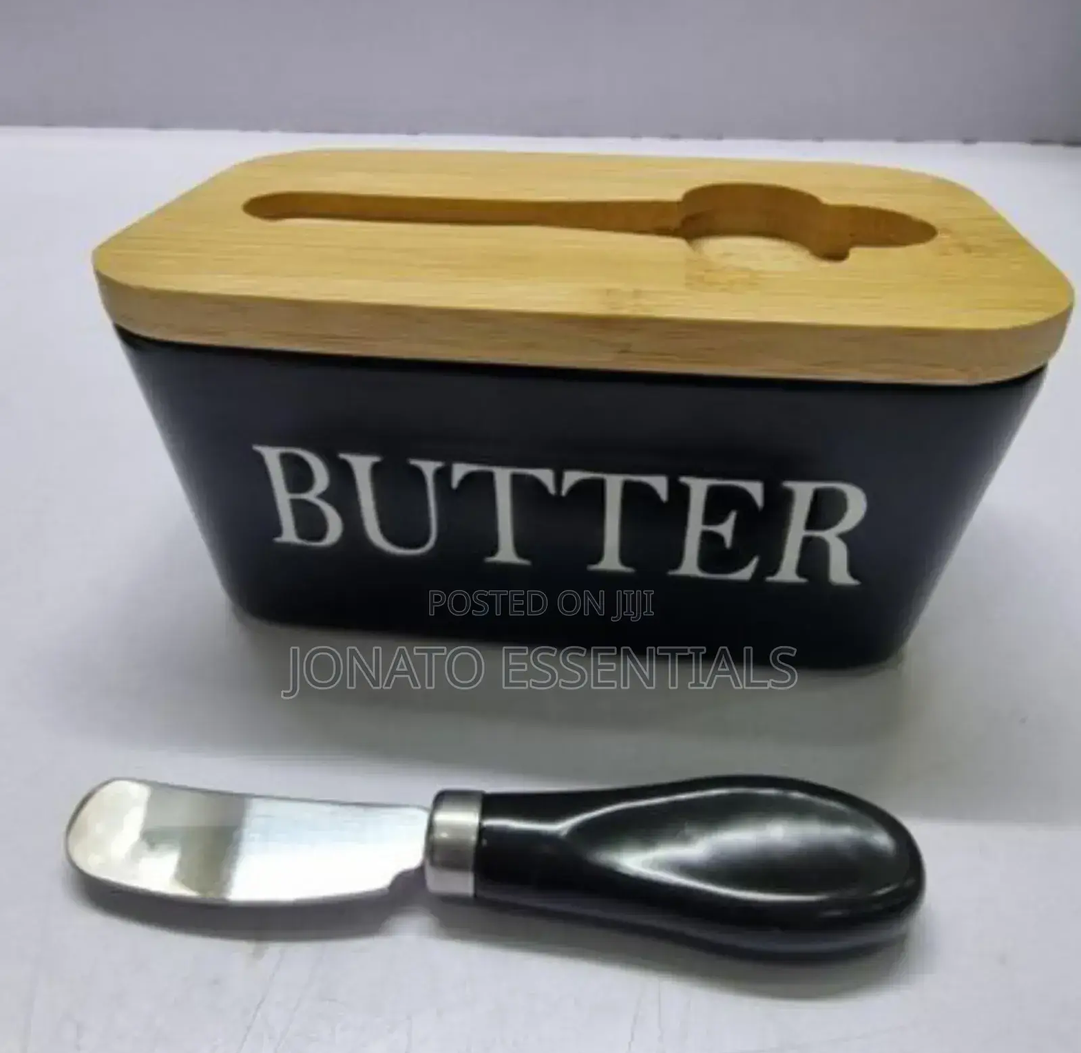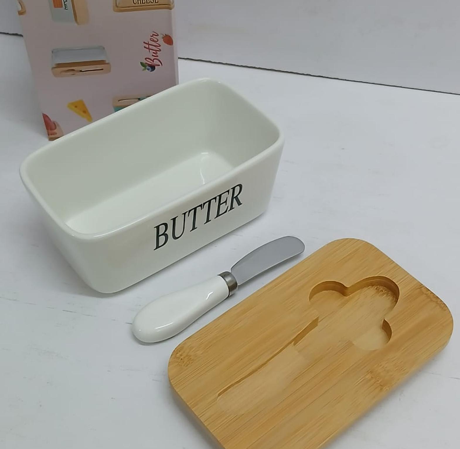 Butter dish and storage box with a butter knife butter spread kit ceramic container, airtight bamboo cover + spread knife. butter pan with knife and lid: this butter pan comes with a lid and a butter knife. when you need to cut butter or spread bread, you can immediately remove the groove of the butter knife for use. 2. unlike plastic materials, our ceramic butter containers use professional grade non stick ceramics, which are suitable for use in microwave ovens when butter needs to soften. and it is also easy to care for, just rinse with water or put in the dishwasher. ceramic butter container box restaurant seal storage boxes cheese box with knife bamboo lid butters slicer butter dish tableware.