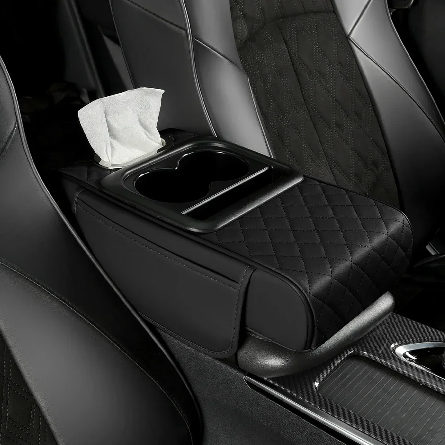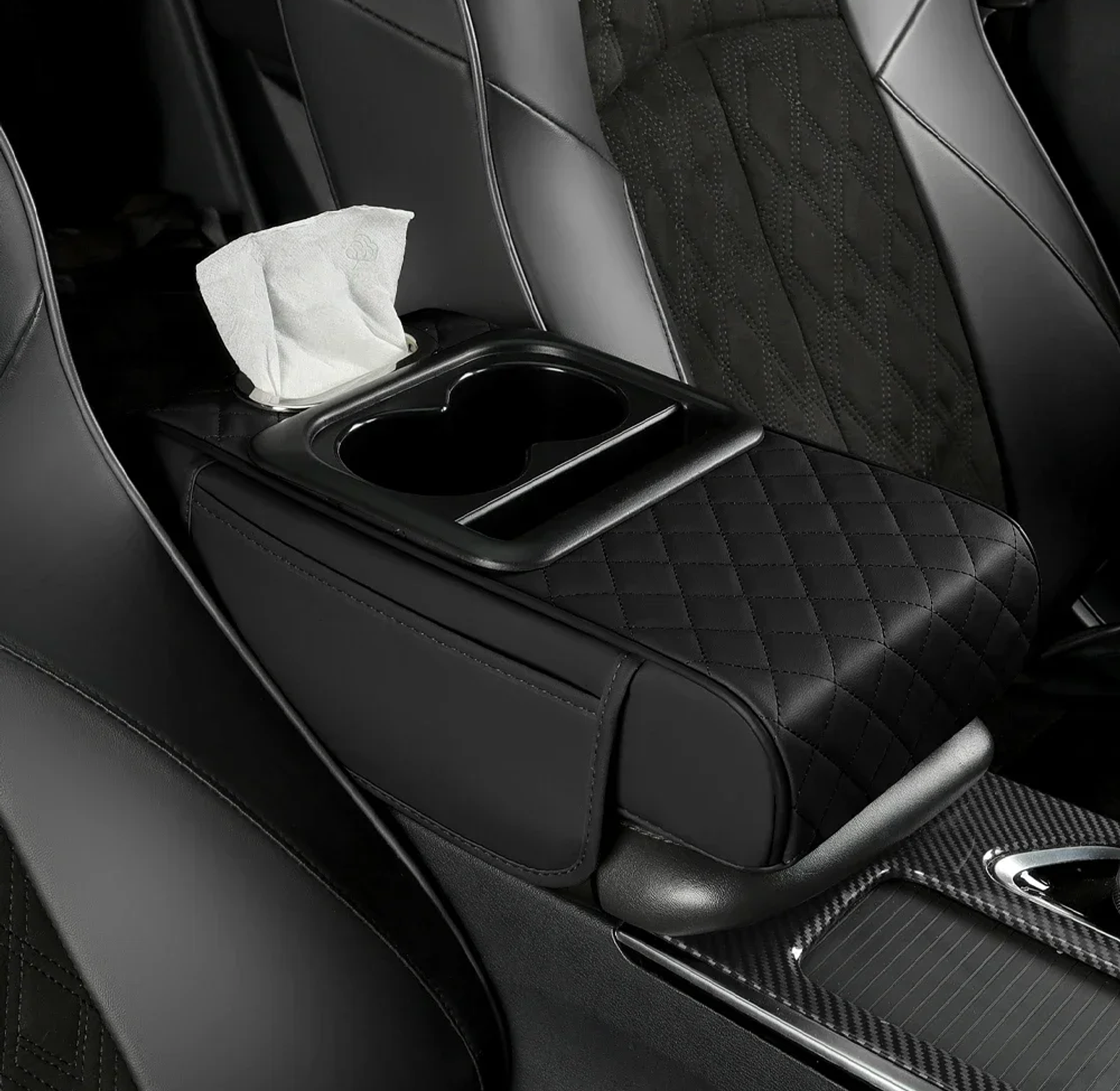 NEW Design Auto center console armrest cushion with 2 cups holder,tissue holder,side storage