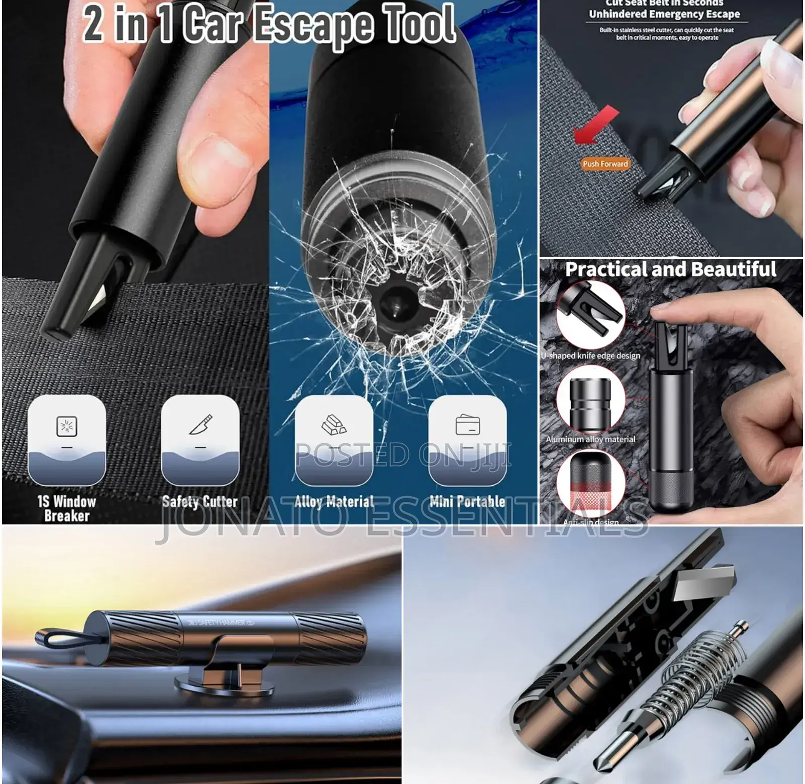 hidden design, built-in stainless steel cutter, can quickly cut seat belts in critical moments, u-shaped hidden knife edge design. fingers can not go deep, safe not to hurt hands, beware of scratches.