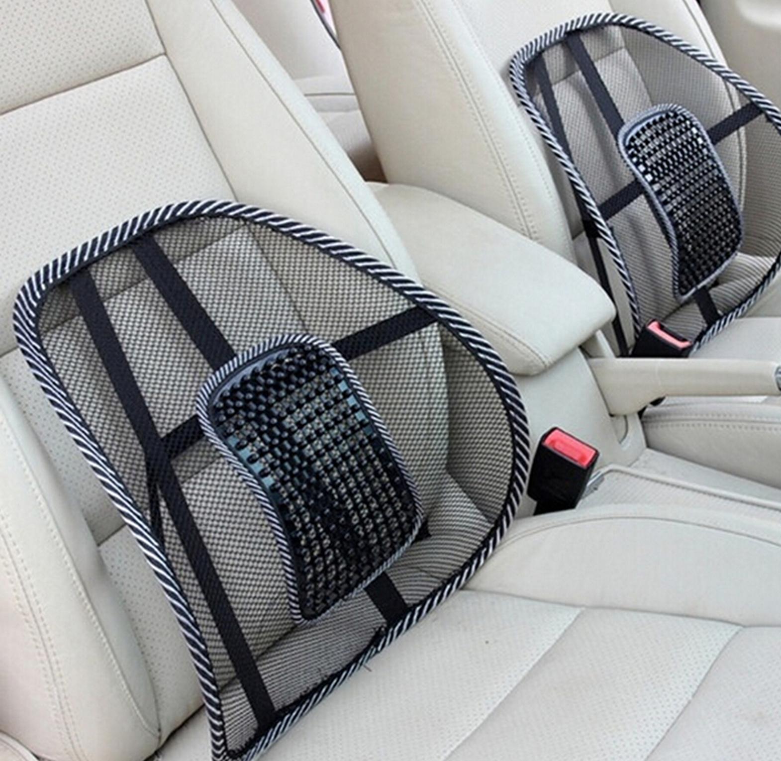 Car seat or office chair back support pillow mesh beads massages your back. mesh back lumbar support cushion pad relieve your driving and working pressure. many bead can massage you back muscle for relaxing. attached by elastic bands with enable pefect adjustments. using high elastic steel wire frame, elasticity, keep in shape great for car seats, office chairs, or home and truck chairs for your driver to remove fatigue, its mesh design, leak, cool mesh material improves excellent air circulation to keep you cool. made of unique mesh fabric that allows airflow for personal comfort. gently conforms to body contours for a uniform support for your lumbar vertebra,fit well match soft car seat chair cushion pad massage vent mesh lumbar lower back brace support seat