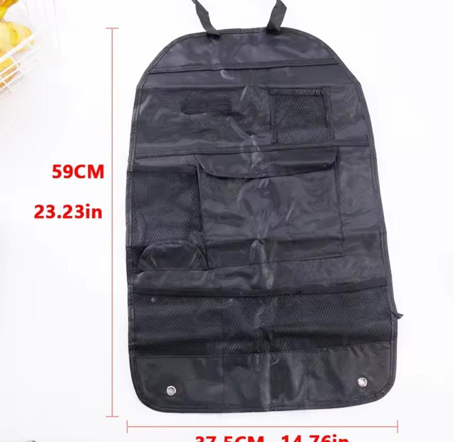 The back seat organiser is useful for tidying and creating space in the back seat of your vehicle. this organiser features various pockets which allow you to store items of multiple shapes and sizes including toys, maps, drinks, glasses and many more. great for the kids and storing all their toys and games attach easily to any car headrest and seat large mesh pocket to store your items 2 mesh pockets for water bottles size: height 57cm x width 26cm assorted pockets sizes waterproof material car back seat organiser multi storage anti-kick mats large capacity pocket storage travel kids toy tidy bag holder