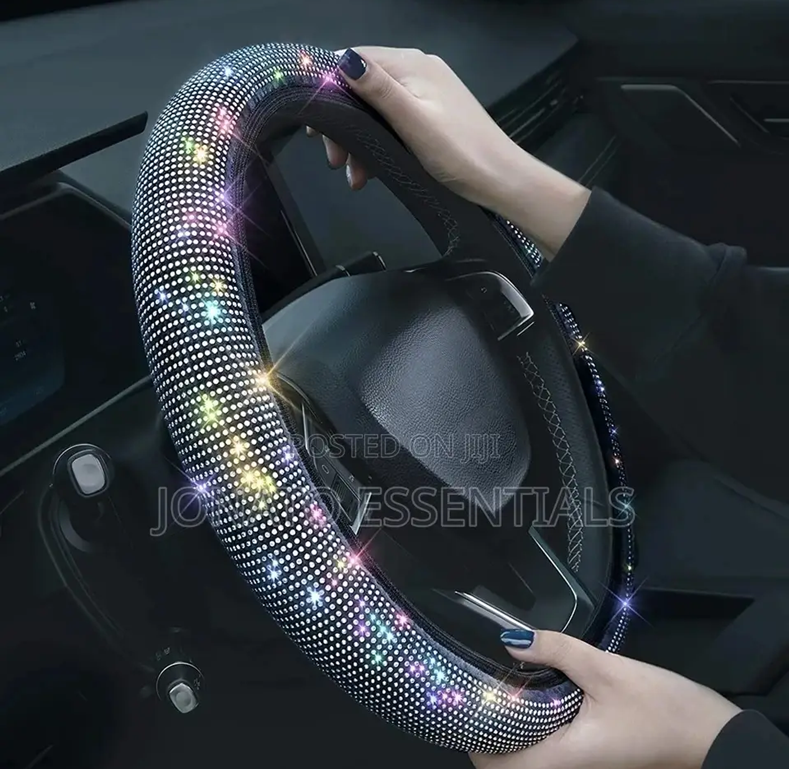 Car steering wheel cover fancy super stretching sparkling steering wheel cover crystal steering wheel cover it is a breathable antislip steering wheel cover that enables a driver if has sweaty or slippery hands to steer comfortably. it is also a decorative piece in the car. car steering wheel cover with crystal diamond sparkling car suv steering wheel protector vehicle auto decoration carbon fiber