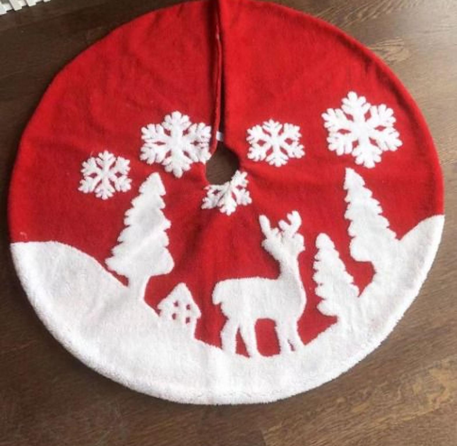 Luxury tree skirt, Reindeer print decor, Christmas mat, White plush tree skirt, Xmas tree base cover, Christmas tree skirt for sale Kenya, Red Christmas mat Nairobi, Best Christmas decor Kenya, Festive home accessories