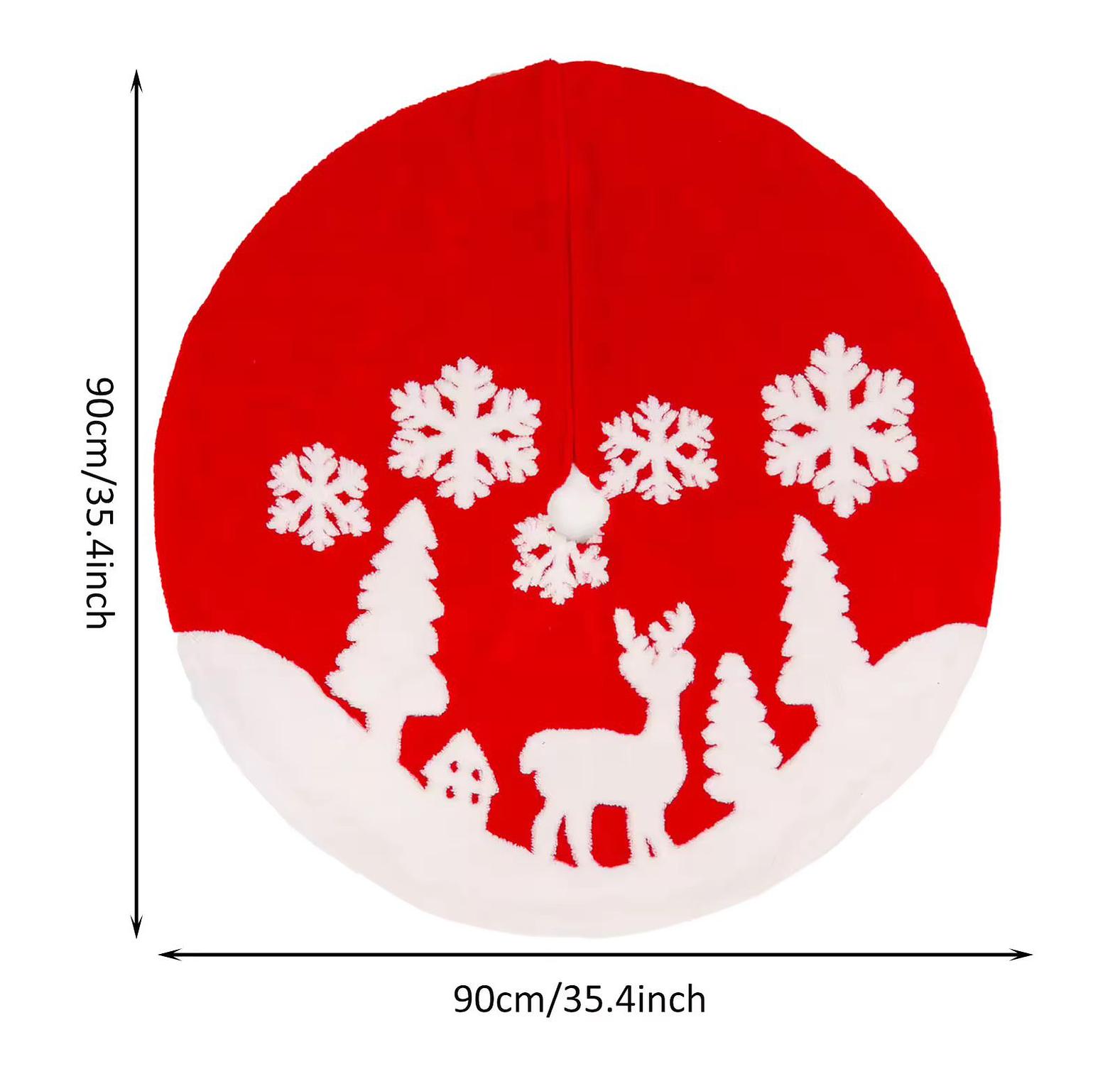 Christmas Tree Skirt, Red White Reindeer Snow Decor