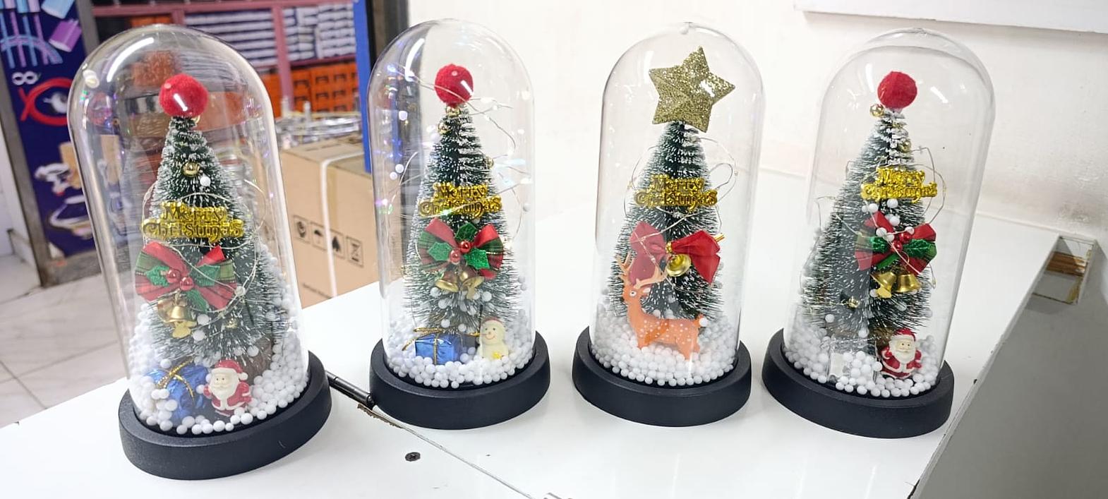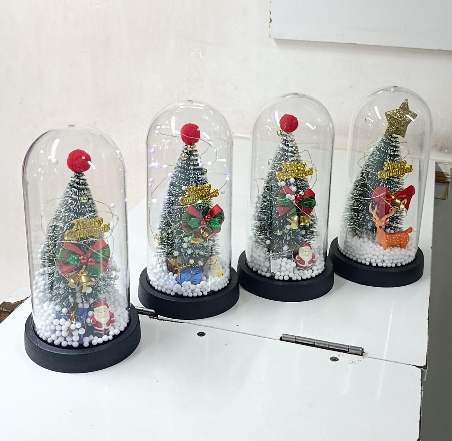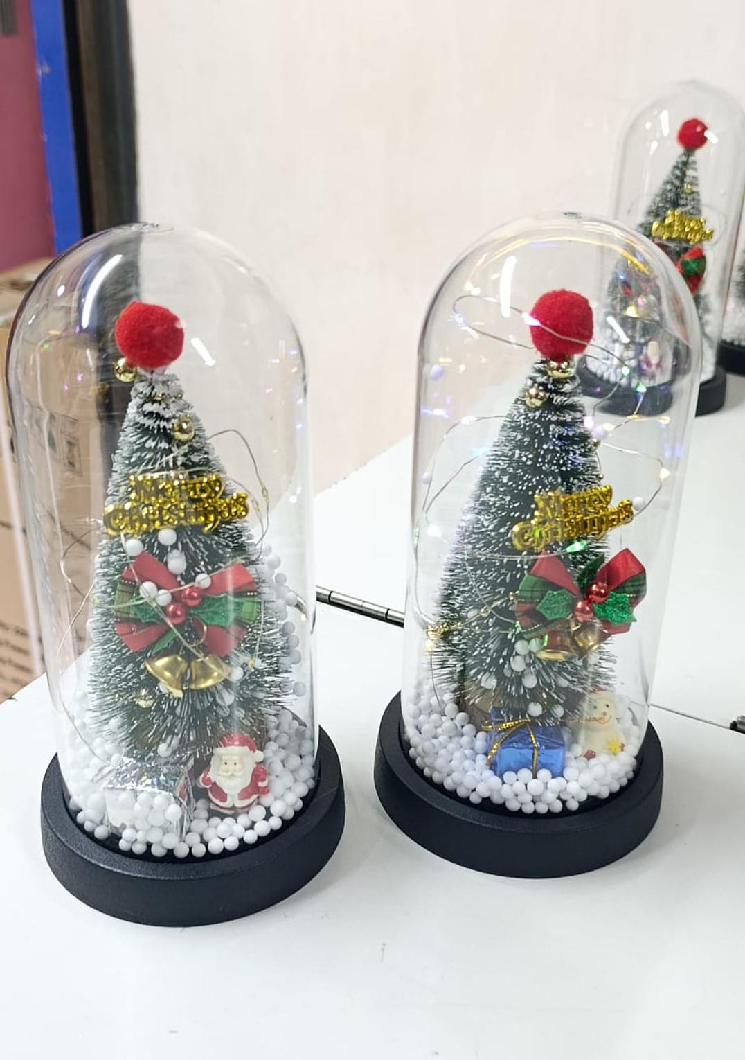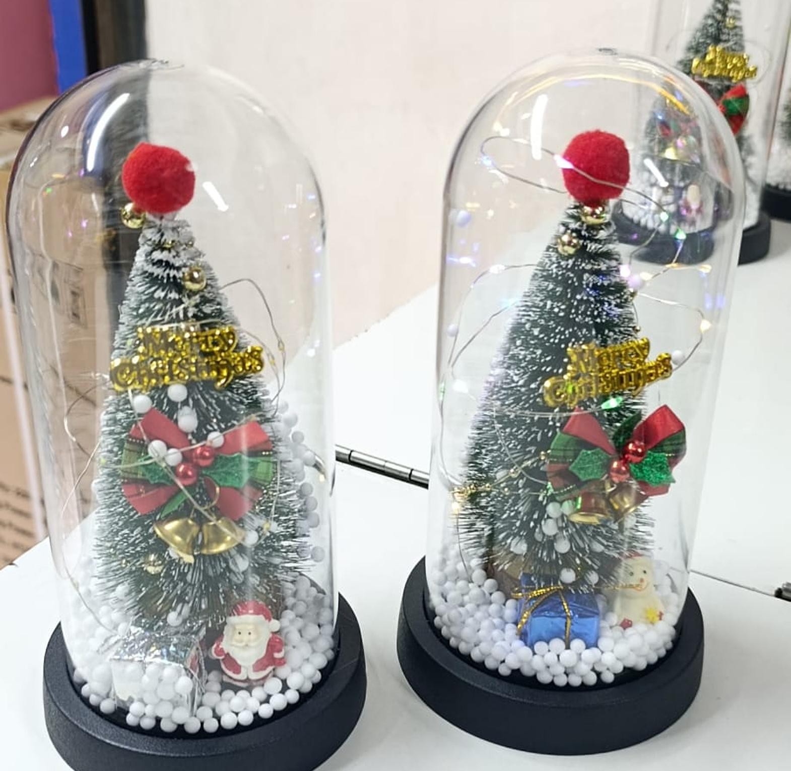 New Xmas Gift Tree in Glass Dome Christmas Decoration Led Lights Santa Claus Doll Decoration Ornaments Glass Dome.