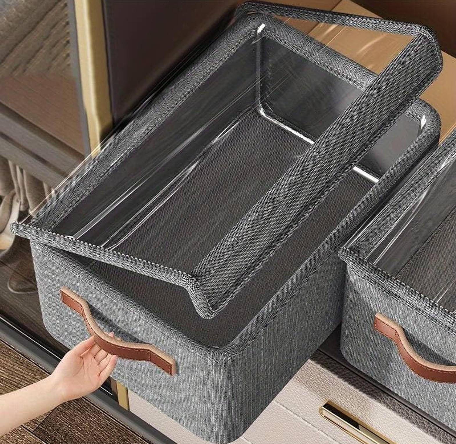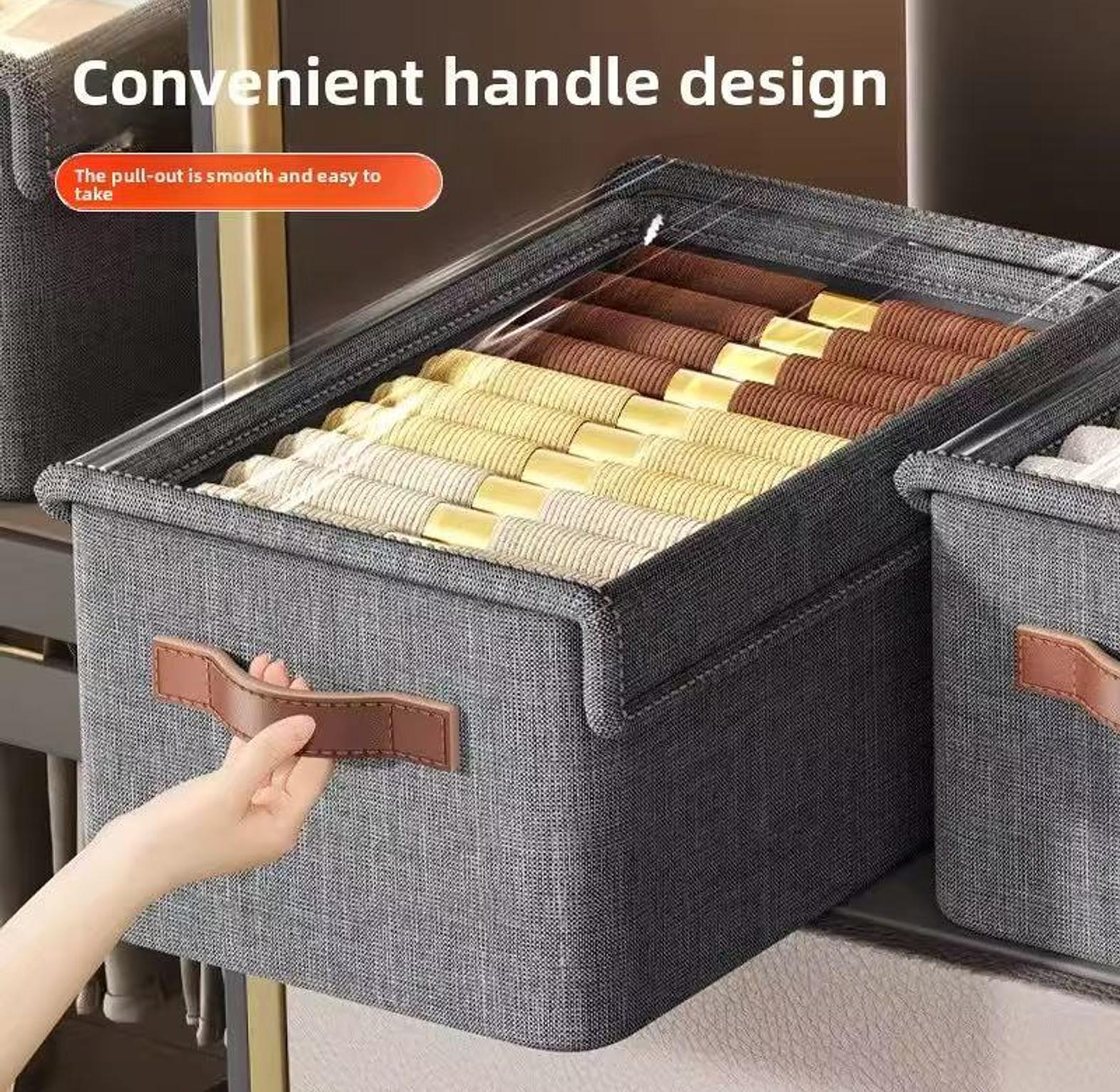 Clothes storage box, organizer foldable multipurpose organizer/ jeans organizer with cover. sturdy soft handles on both sides are convenient to retrieve from shelves. durable and stable the closet bins can contain clothes, bags, towels, blankets, books, toys, dolls, etc. utilize as closet organization bins, purse storage bin, clothes baskets, nursery /child / kid room toy and diaper storage, bathroom clean towel storage storage your panties, underwear, socks, t-shirts, ties, scarves, belts, leggings, etc. attractive decor stylish design space-saving. the odourless ventilation design can effectively reduce odours and keeping clothes fresh. it also can be washed by water. clothes storage box foldable cabinet storage bin for underwear socks pants sundries storage container home organizers.