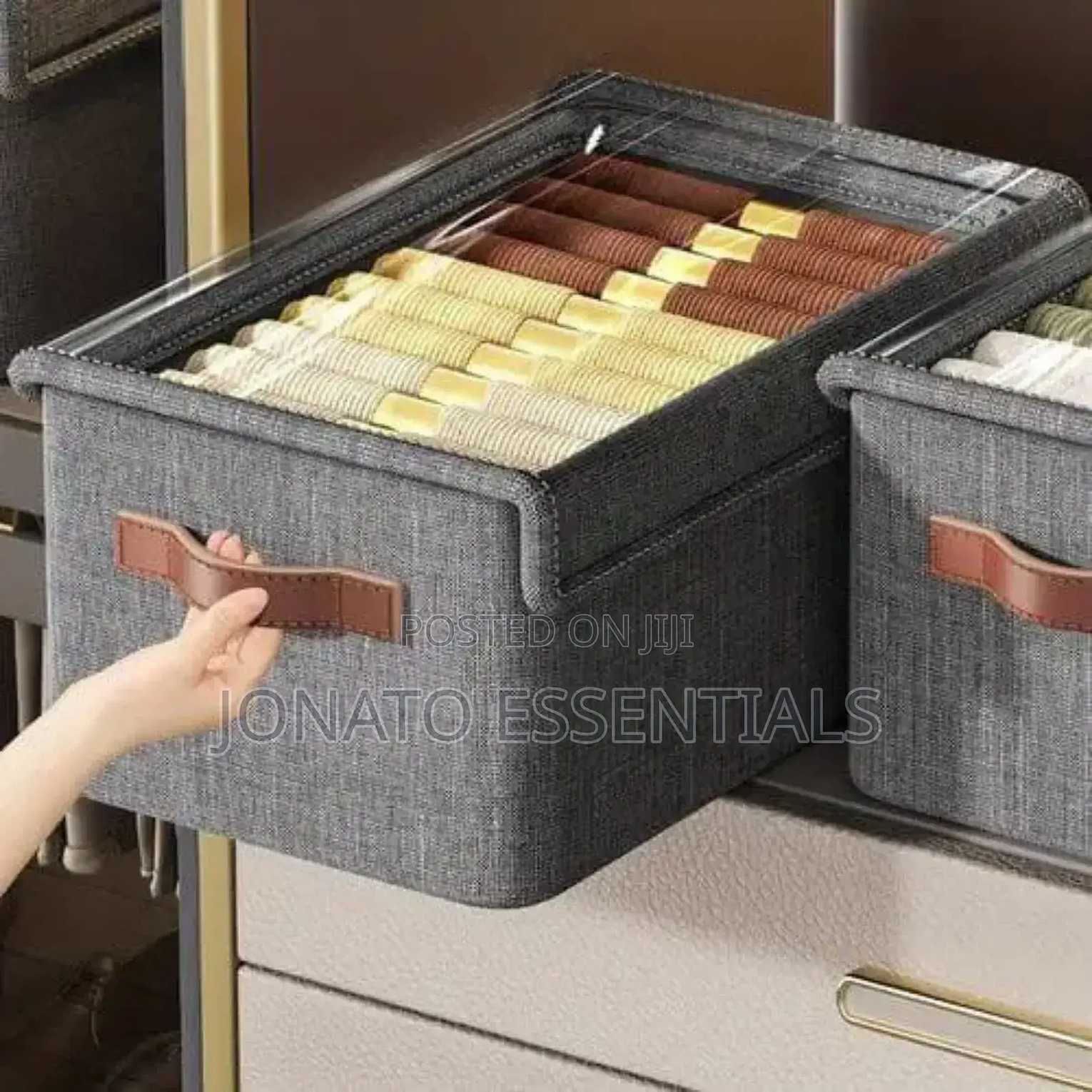 sturdy soft handles on both sides are convenient to retrieve from shelves.