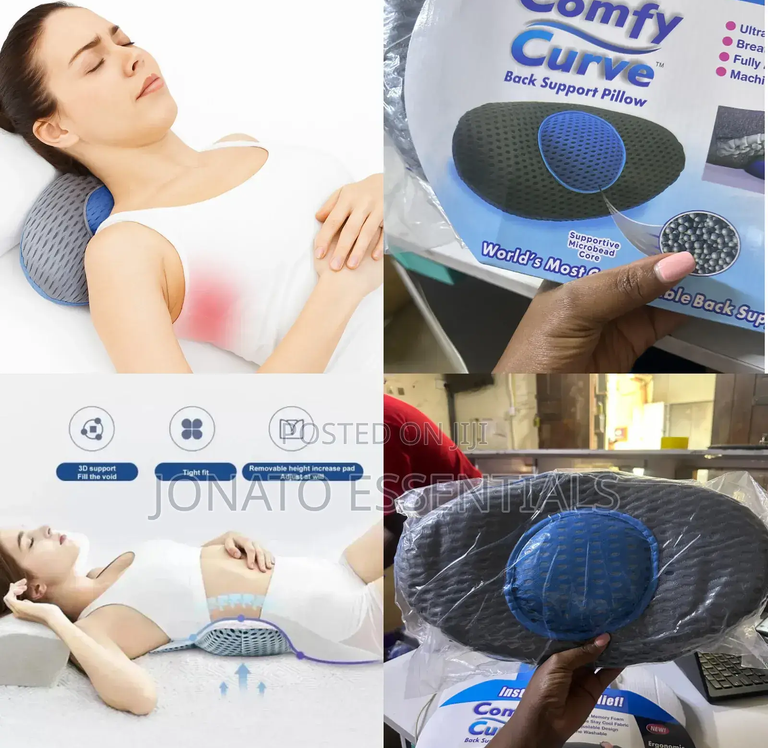 Comfy curve back support pillow, lumbar pain relief cushion comfy curve back support pillow say goodbye to back pain with the revolutionary comfy curve back support pillow, your ultimate solution for ergonomic comfort. this versatile pillow provides targeted lumbar support, promoting healthy posture whether you're sleeping, working, or driving. its unique design adapts to your body, filling the void in your lower back for instant relief and improved well-being. ideal for use in the office, car, or at home, this supportive cushion is a must-have for anyone seeking comfort and pain management. back support pillow, lumbar cushion, back pain relief, ergonomic pillow, posture corrector, lower back support, sleep support, office chair cushion, car seat support, comfortable pillow, back health, pain management, kenya back pain.