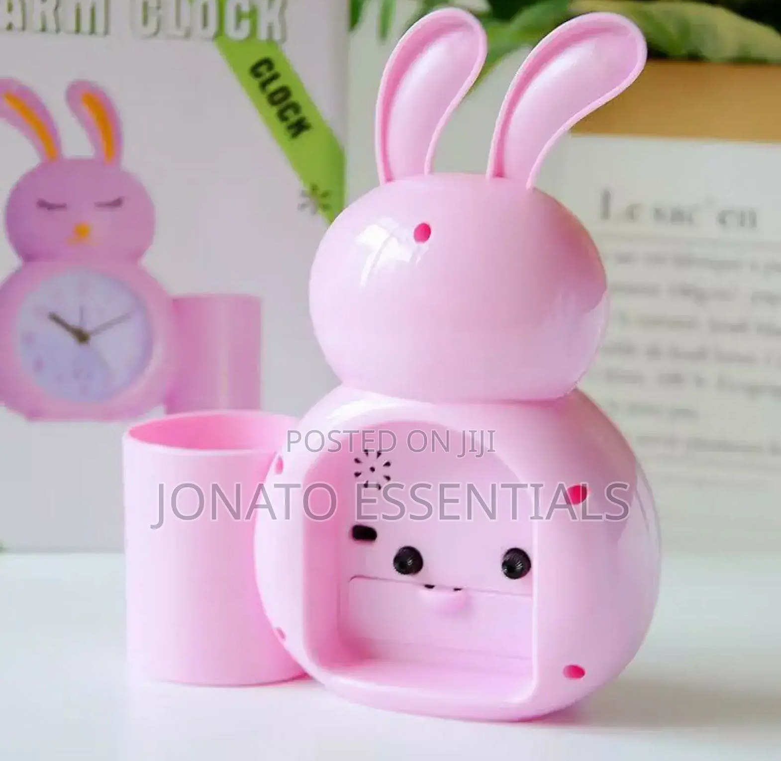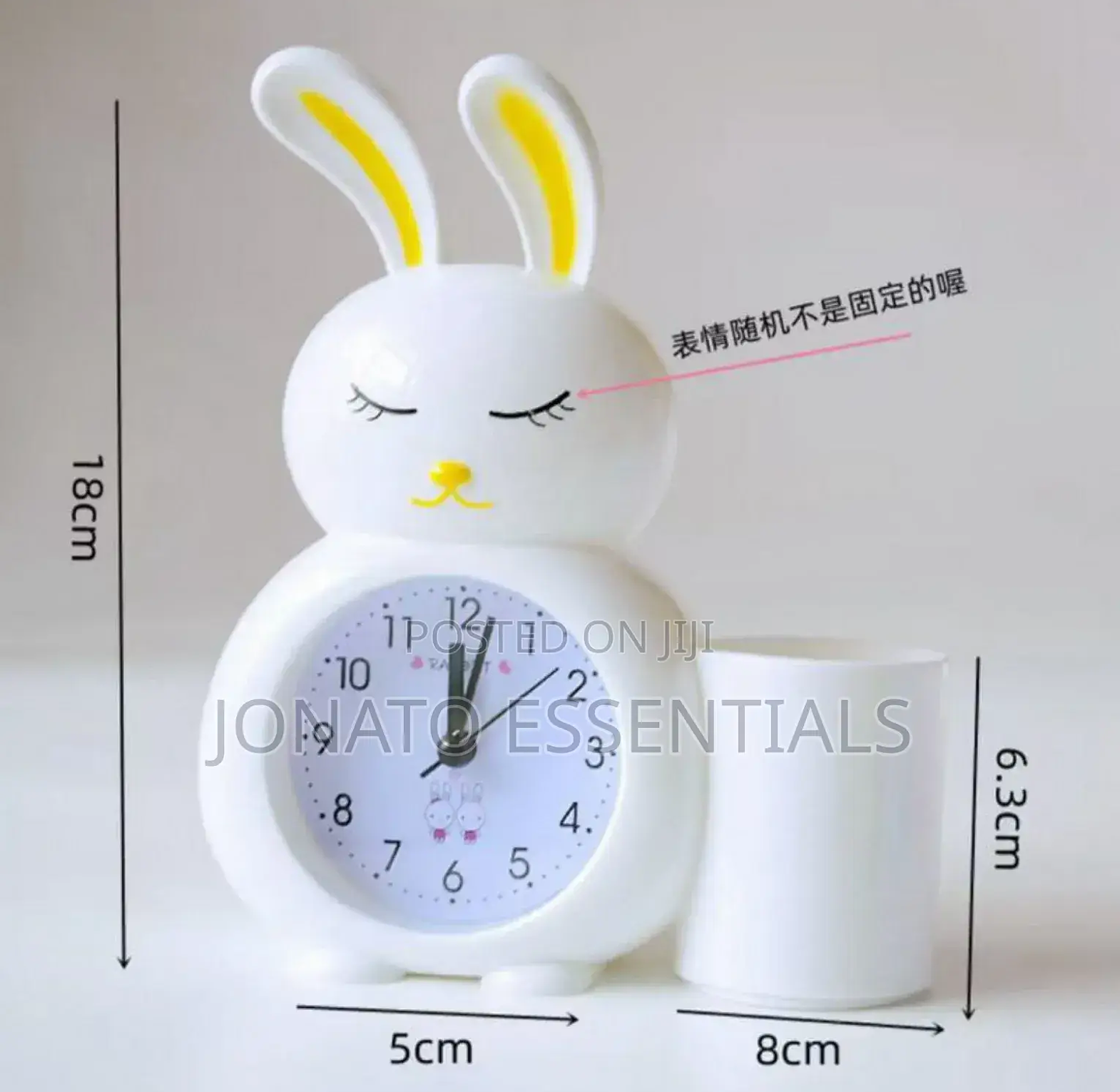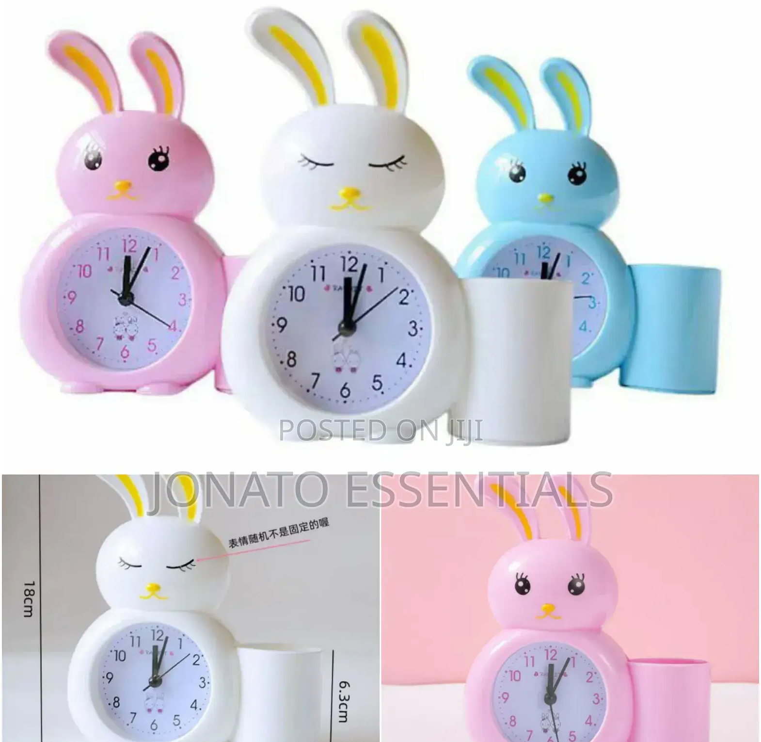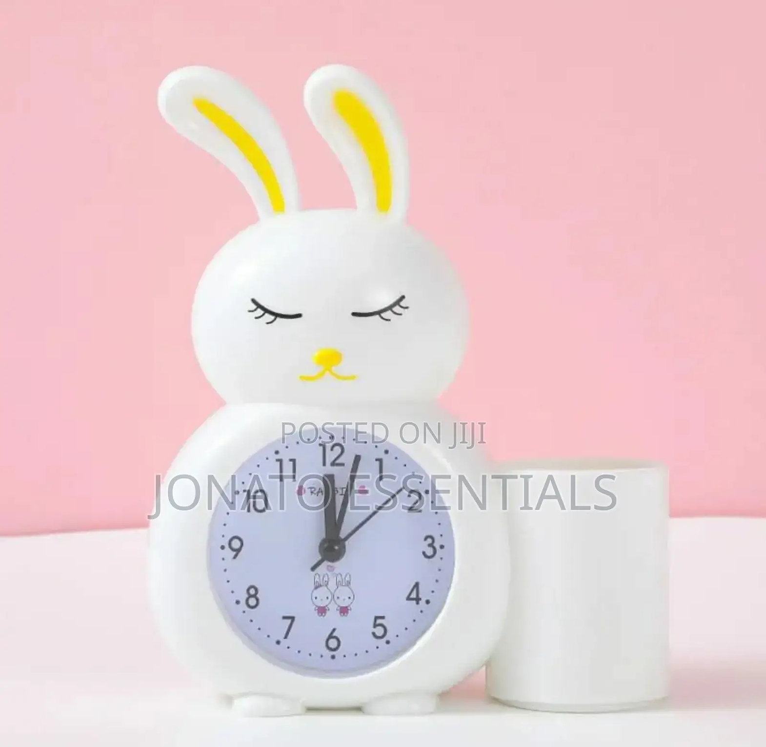 wake up happy with this adorable cute rabbit alarm clock! this charming bunny clock is perfect for kids' rooms, adding a touch of fun and functionality. available in delightful pink, white, and blue, this battery-operated clock features an easy-to-read analog display with clear numbers. the silent, non-ticking movement ensures a peaceful sleep environment. beyond telling time, some models include a convenient pen holder to keep desks tidy. its cute cartoon design makes it a wonderful decorative piece and a thoughtful gift for children.