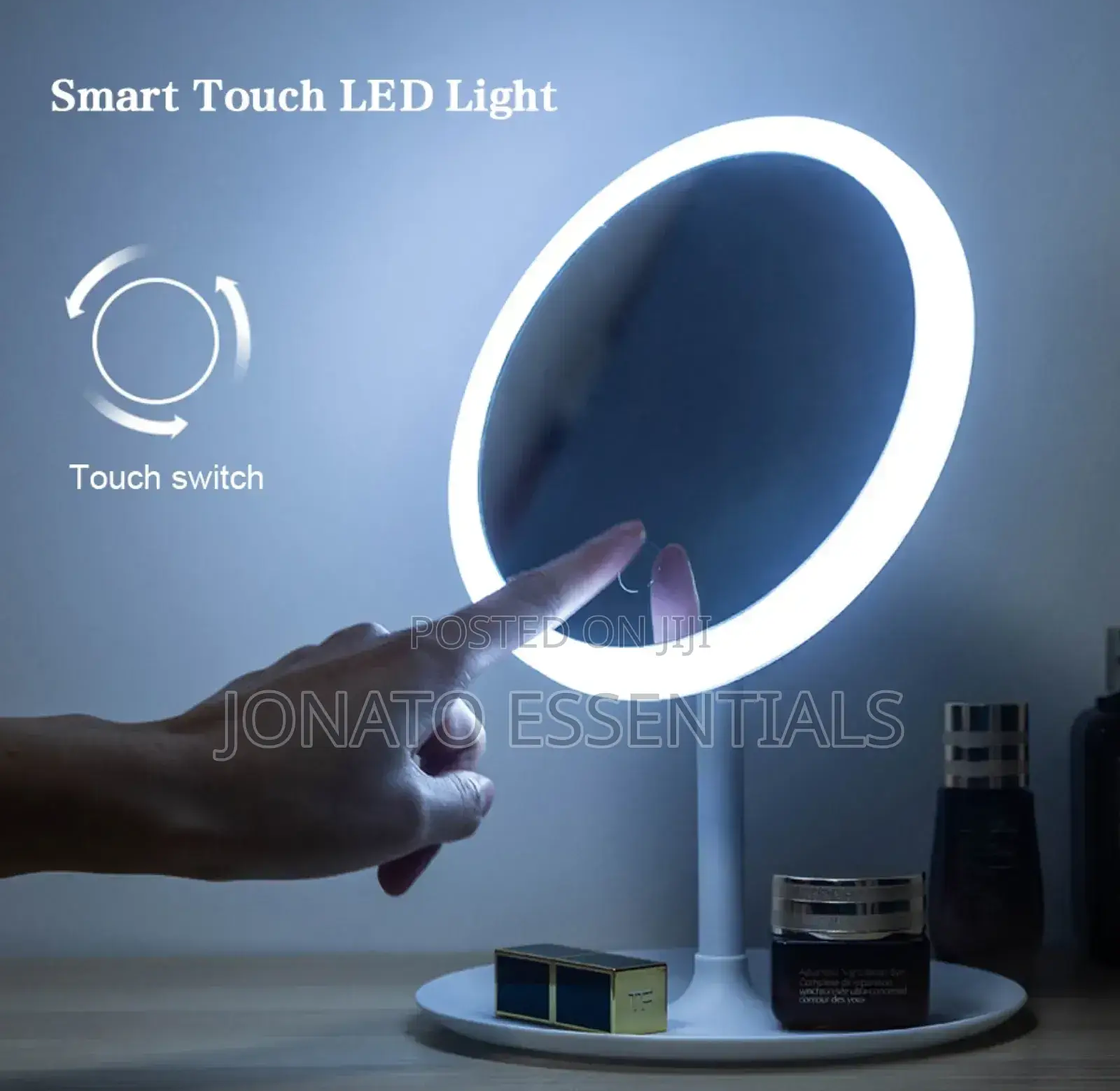 Desktop led makeup mirror smart touch led light portable mirror led light makeup mirror: the light can clearly check the state of the skin, which can make the makeup more delicate and natural. storage chassis: the round chassis can place items, cleverly store it, and tidy the desktop. multi-angle rotation: the mirror surface can adjust the appropriate angle according to your own needs. led makeup mirror 3 color light adjustment light up at a touch ultra long endurance tray storage table vanity mirror.