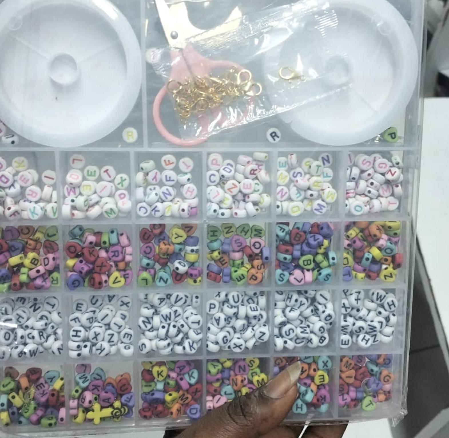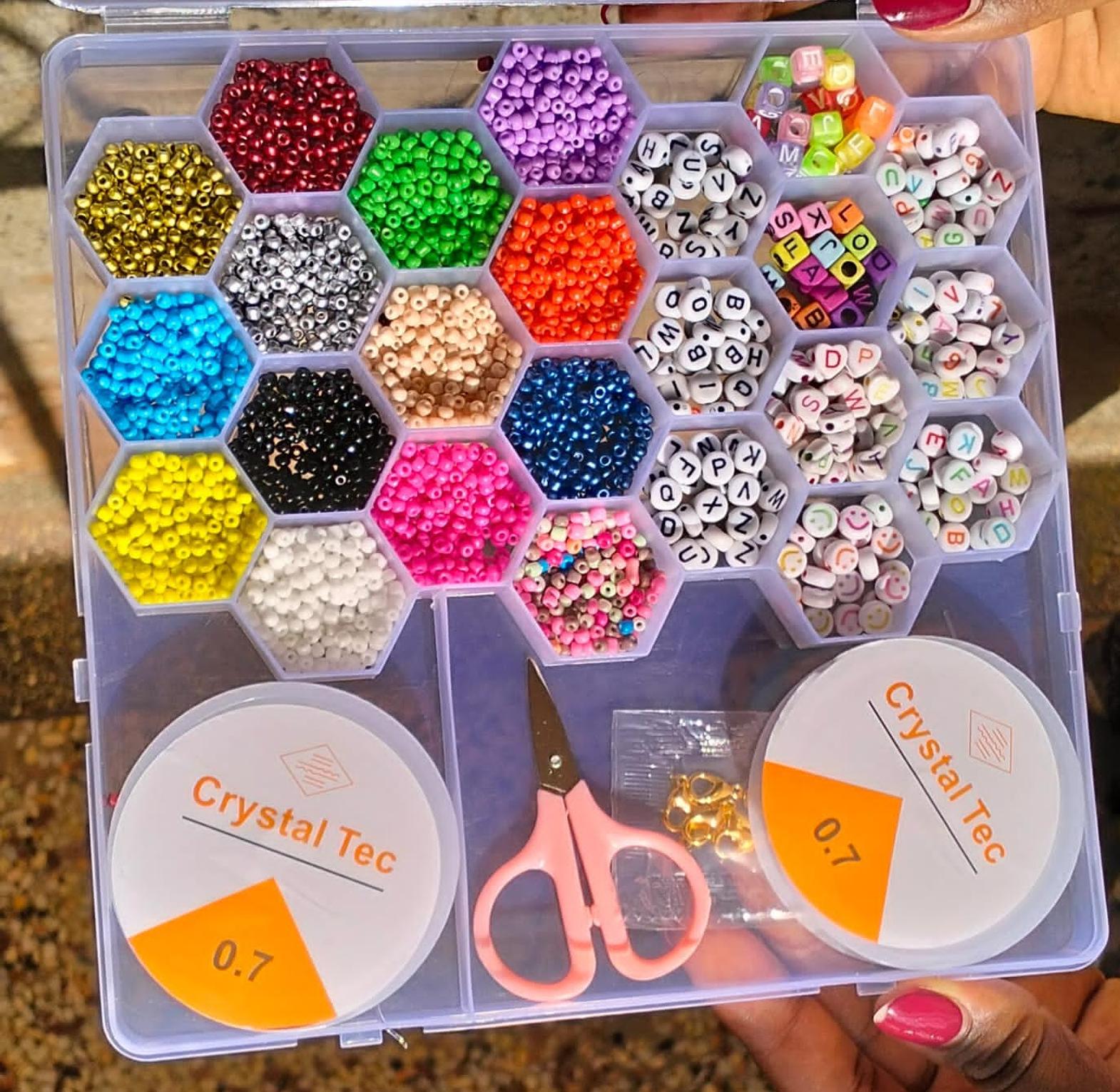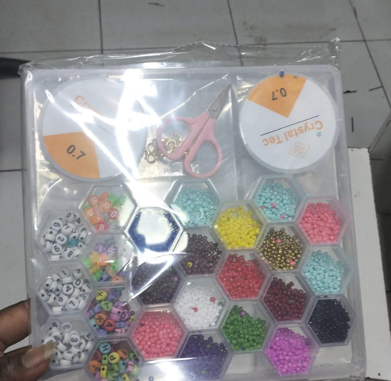 Diy beads jewelry kit for kids and adults, craft maker set clay beads different color kit spark creativity with this vibrant diy beads jewelry kit, perfect for kids, teens and adults. this set features colorful seed beads, letter beads, and all-in-one accessories for making bracelets, necklaces and custom jewelry. ideal for home businesses, gifts, parties, and fun learning, the kit includes strong crystal tec string, handy scissors, and assorted beads for endless ideas. great for artisans, crafters, and kenyan families looking for quality time, skill building, or to start a beading business. suitable for schools, holiday camps. beading kit kenya, jewelry making kit, diy craft beads, kids beading set, artisan supplies, bracelet making kit, gifts for girls, school holiday activities, craft business kenya, alphabet beads, crystal tec string