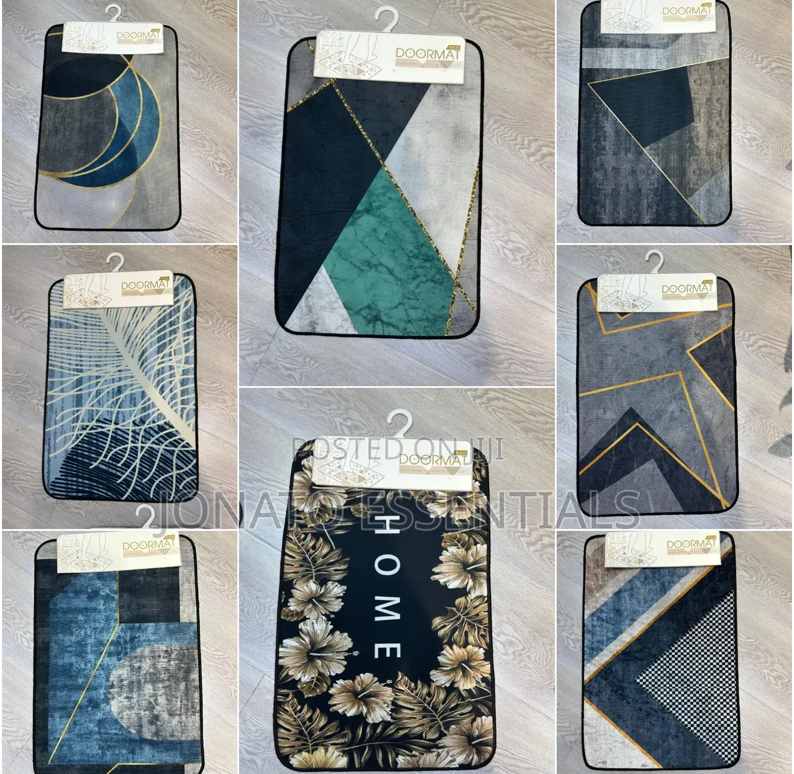 doormat, entryway mat, floor mat, welcome mat, indoor doormat, outdoor doormat, geometric design, modern style, gold accents, non-slip, absorbent, durable, easy clean, home decor, stylish doormat, contemporary mat, door mat.