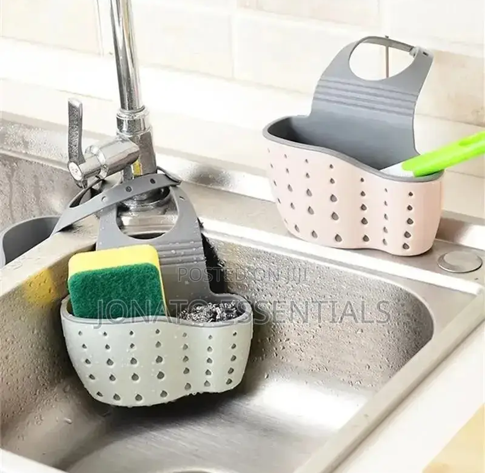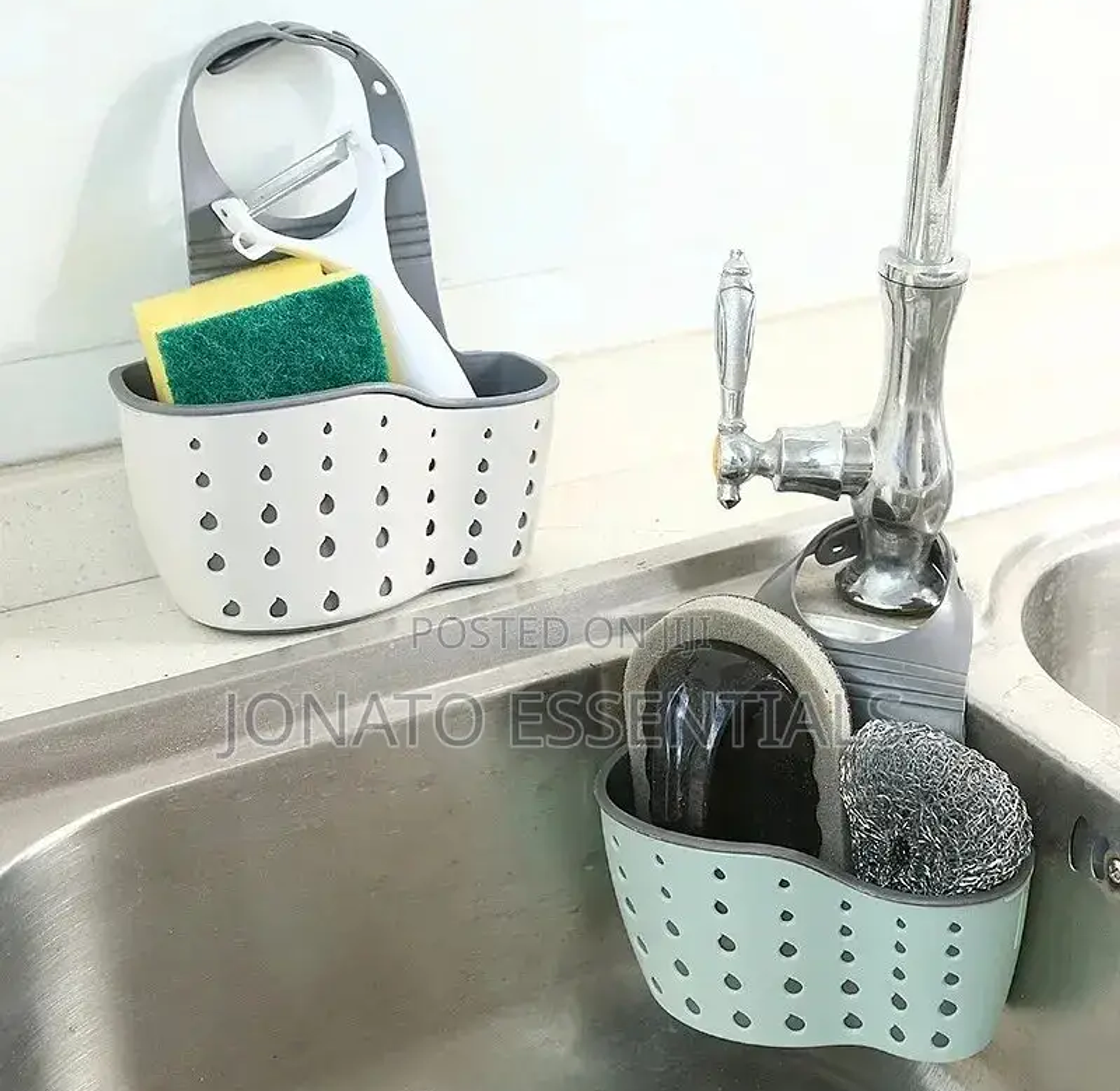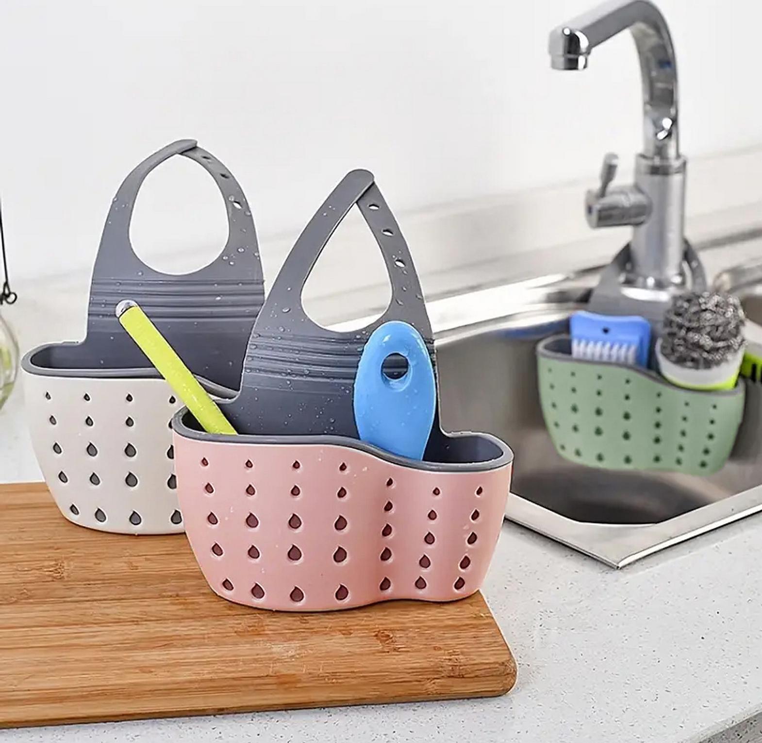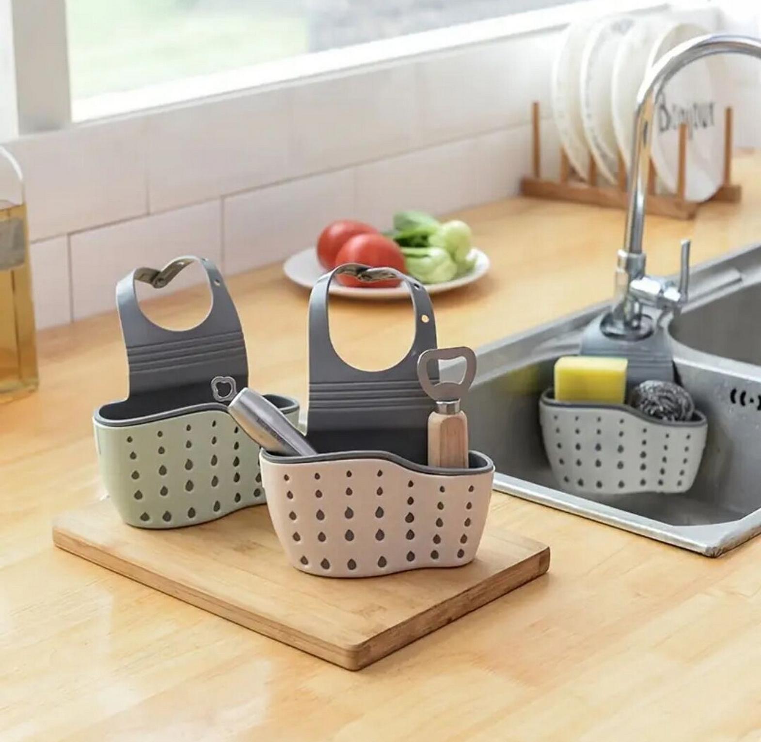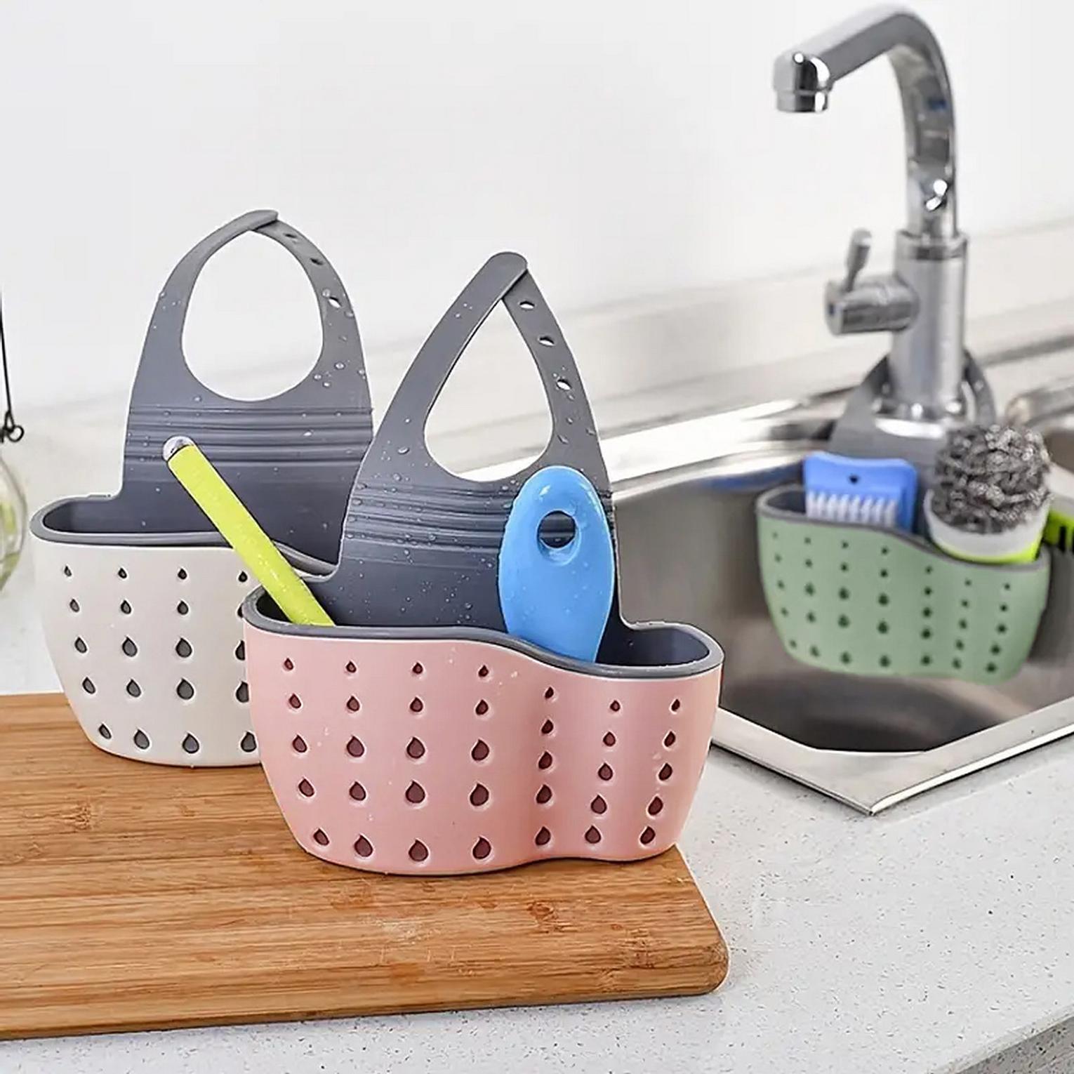 Double sided sink sider, sink organizer material: tpr+abs size: 22*12cm for soap, sponge, toothbrush, etc kitchen double layer sink hanging bag sponge steel wire ball storage hanging basket sink draining basket faucet water pool bag.