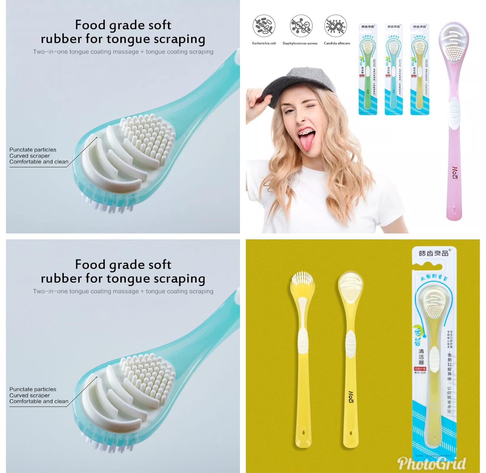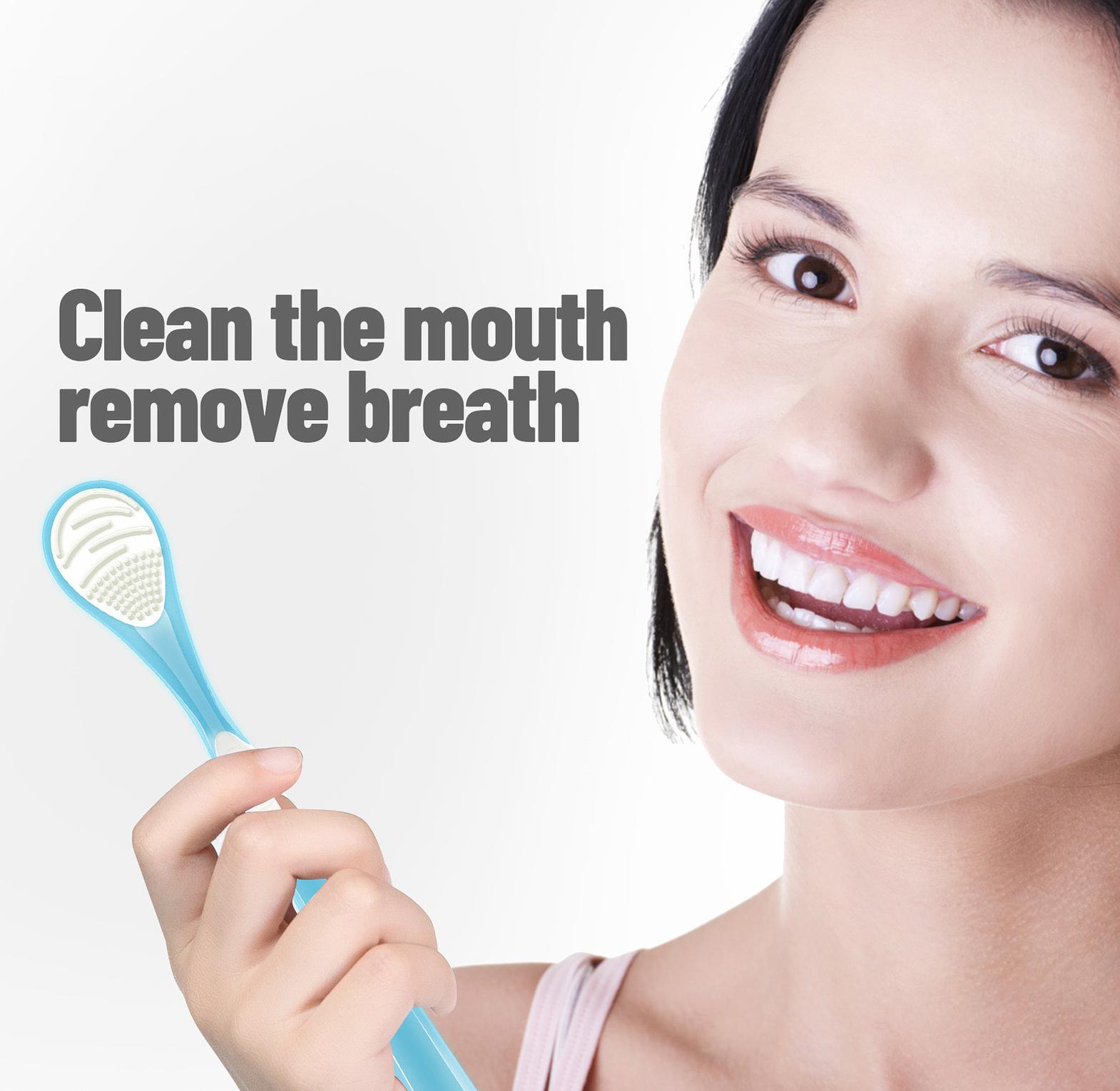 Double sided tongue cleaner and scrapper steps for usage: 1. moisten the tongue coating with clean water, and deepen the tongue. use the side with the tongue brush to clean the tongue from the inside to the outside several times. 2. rinse tongue and mouth with water after scraping double side tongue cleaner brush for tongue cleaning care tool silicone tongue scraper toothbrush breath.