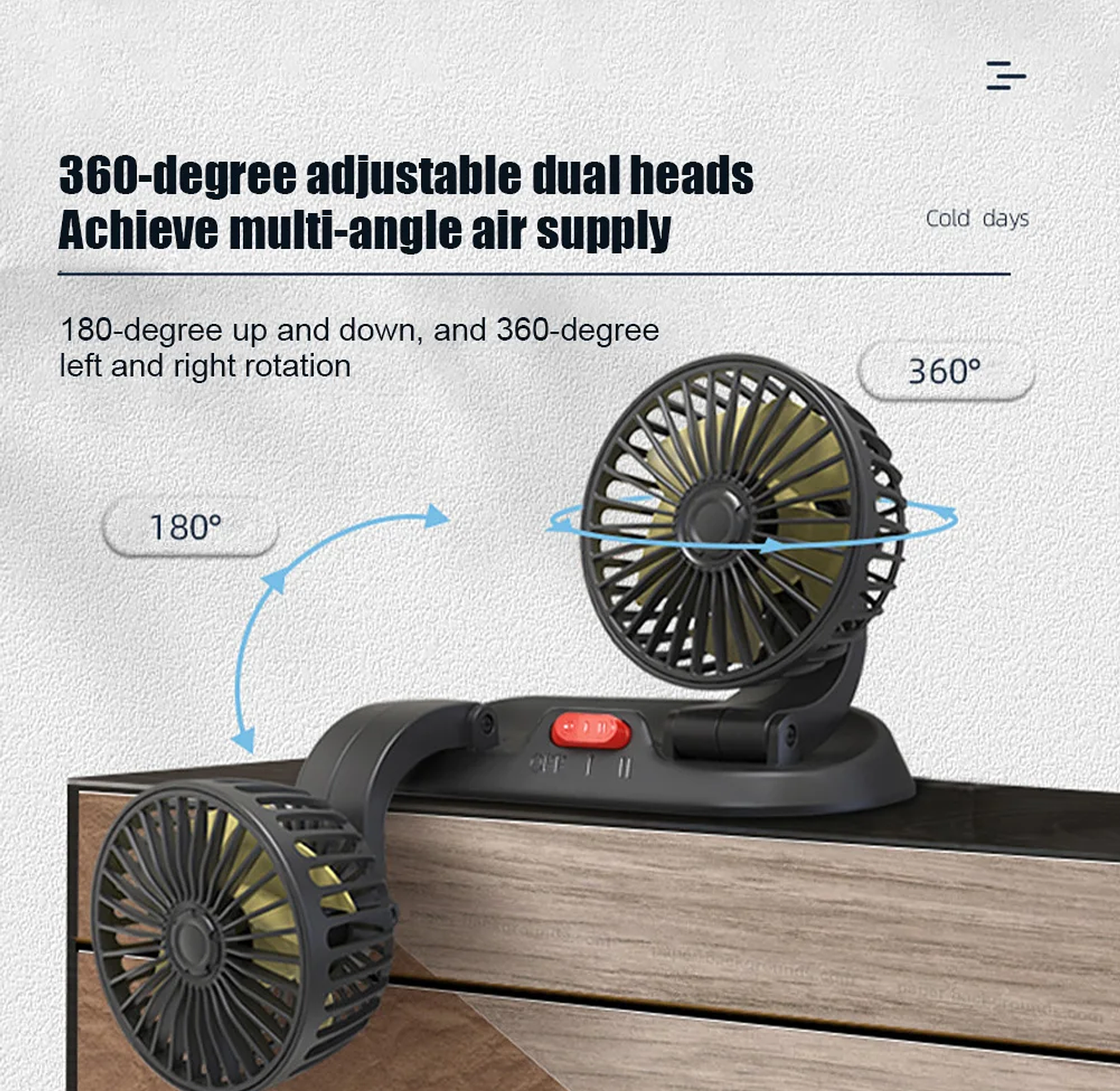 Dual-Head Efficiency: Two independent fans mean both the driver and the passenger get personalized airflow.