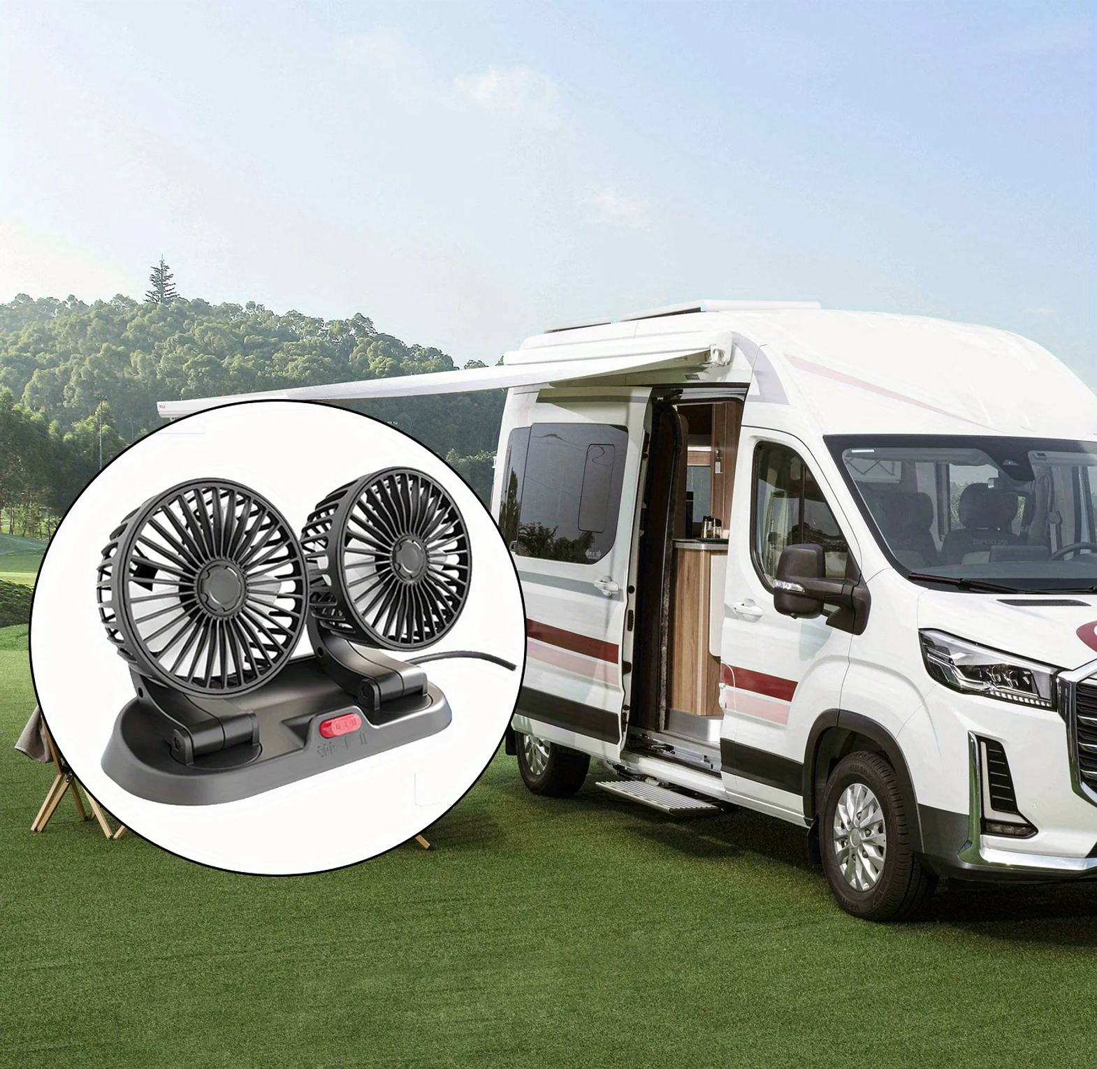 Dual-Head 360° Adjustable Car Cooling Fan - Powerful 12V/24V Nairobi