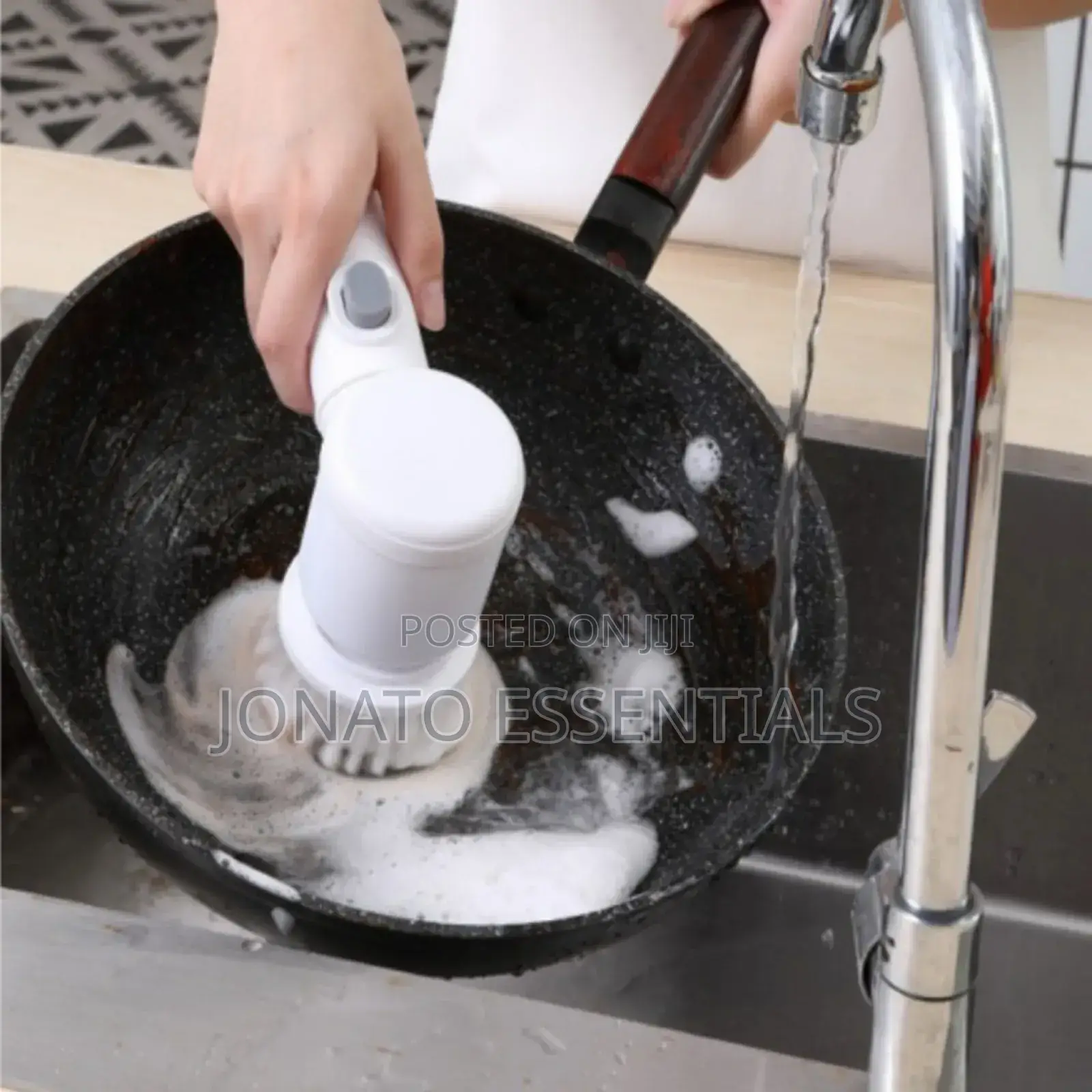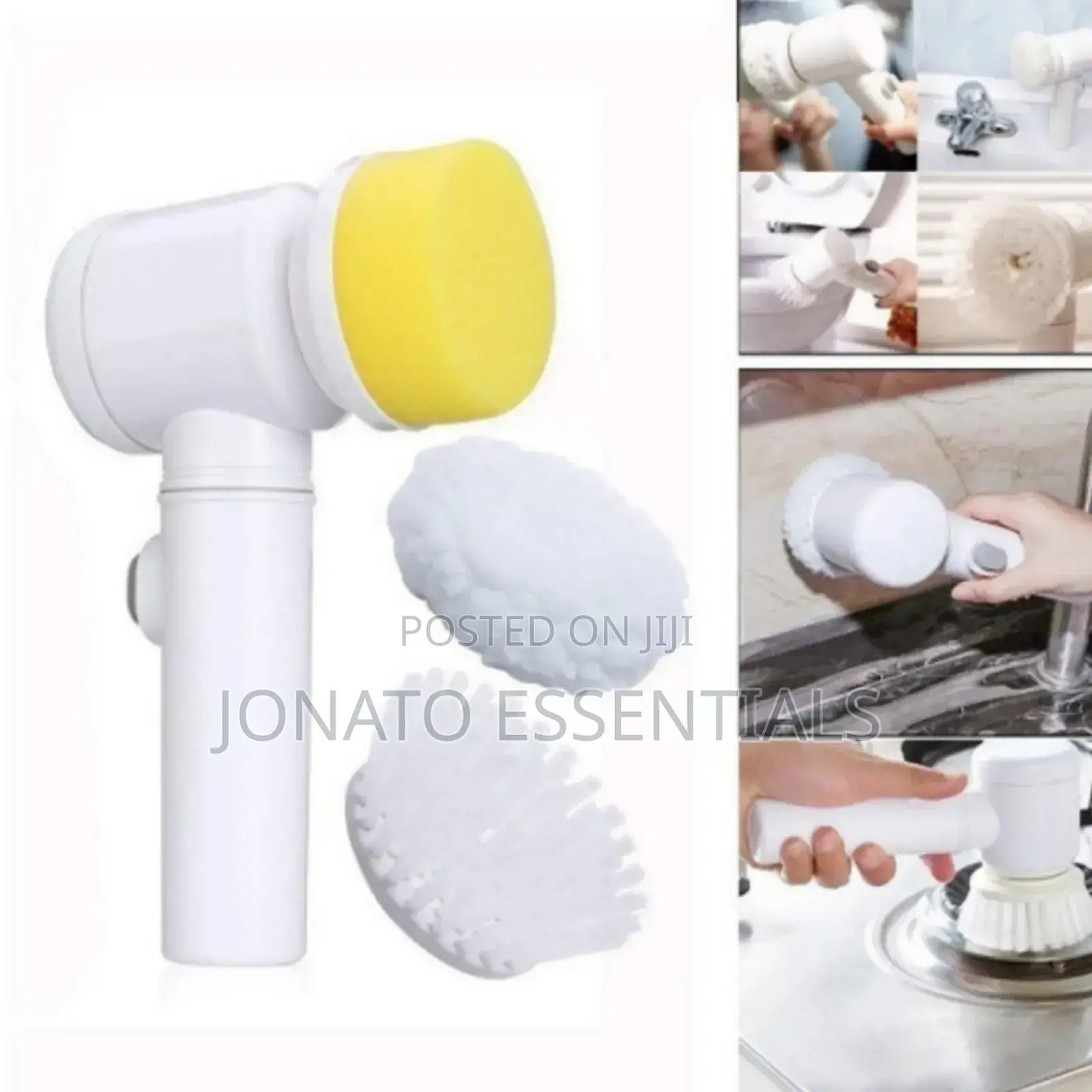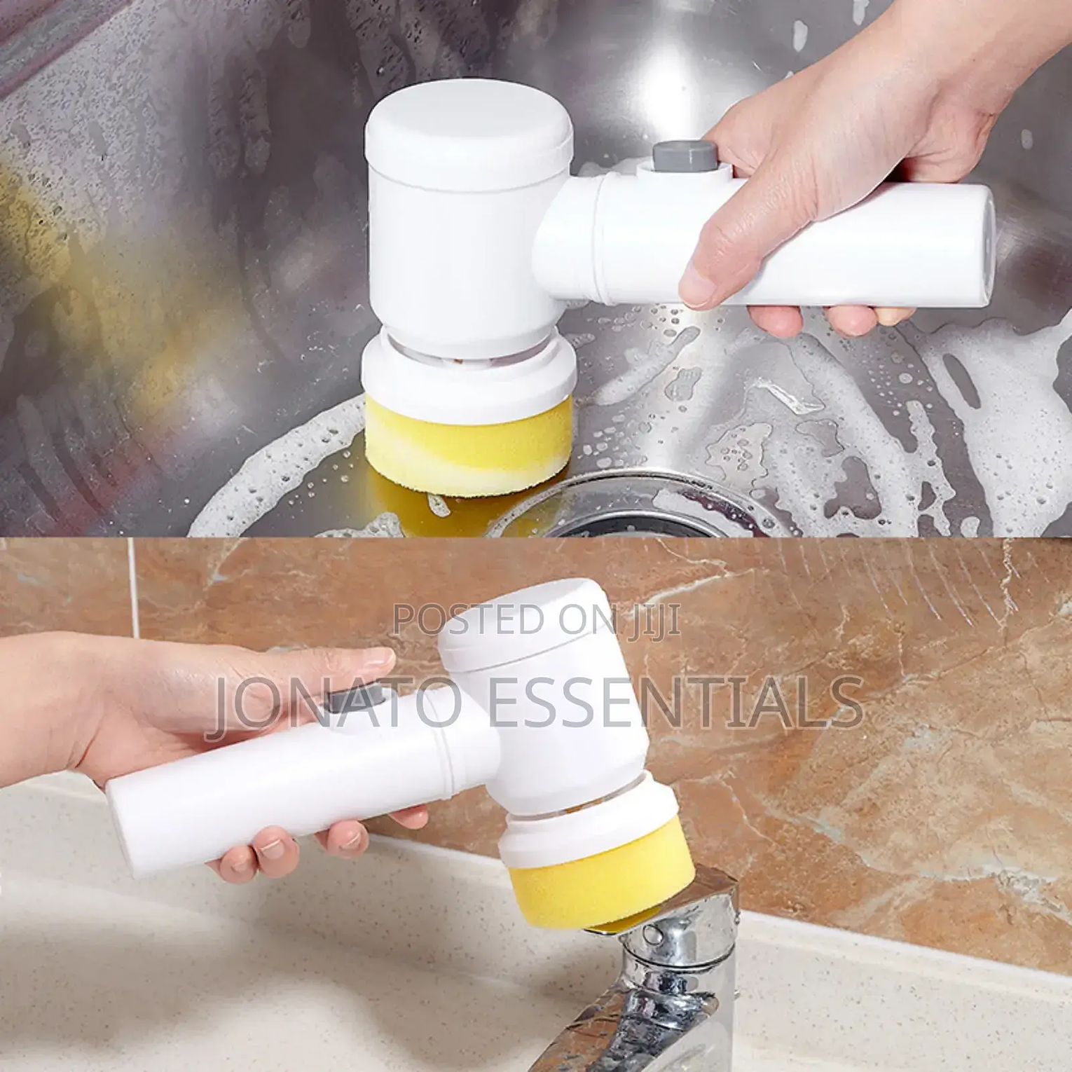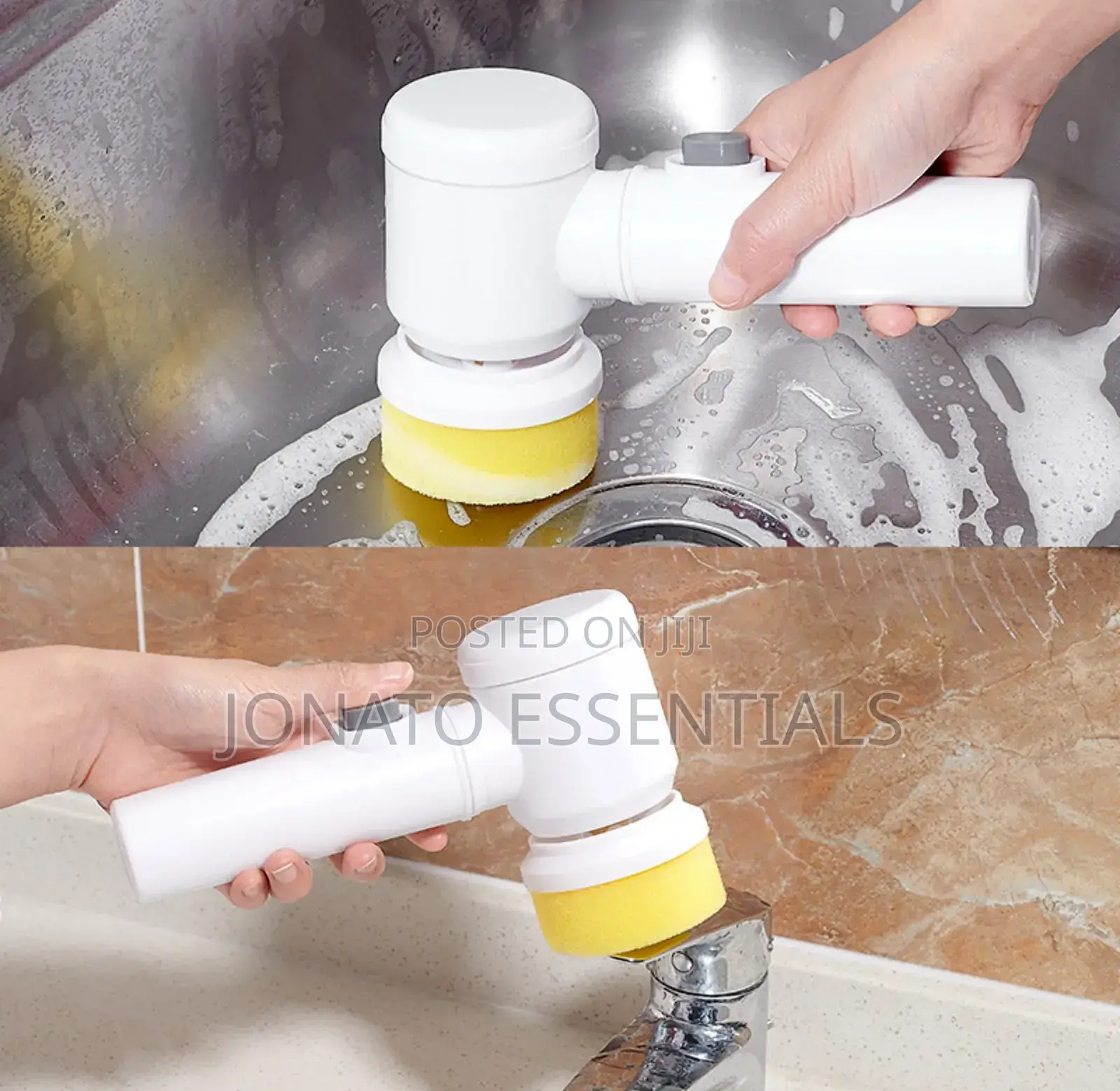 electric spin scrubber with 5 replaceable brush head dishwashing brush multifunctional for cleaning bathroom tub tile floor car.