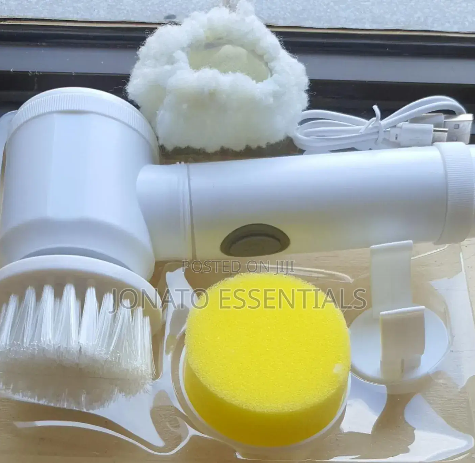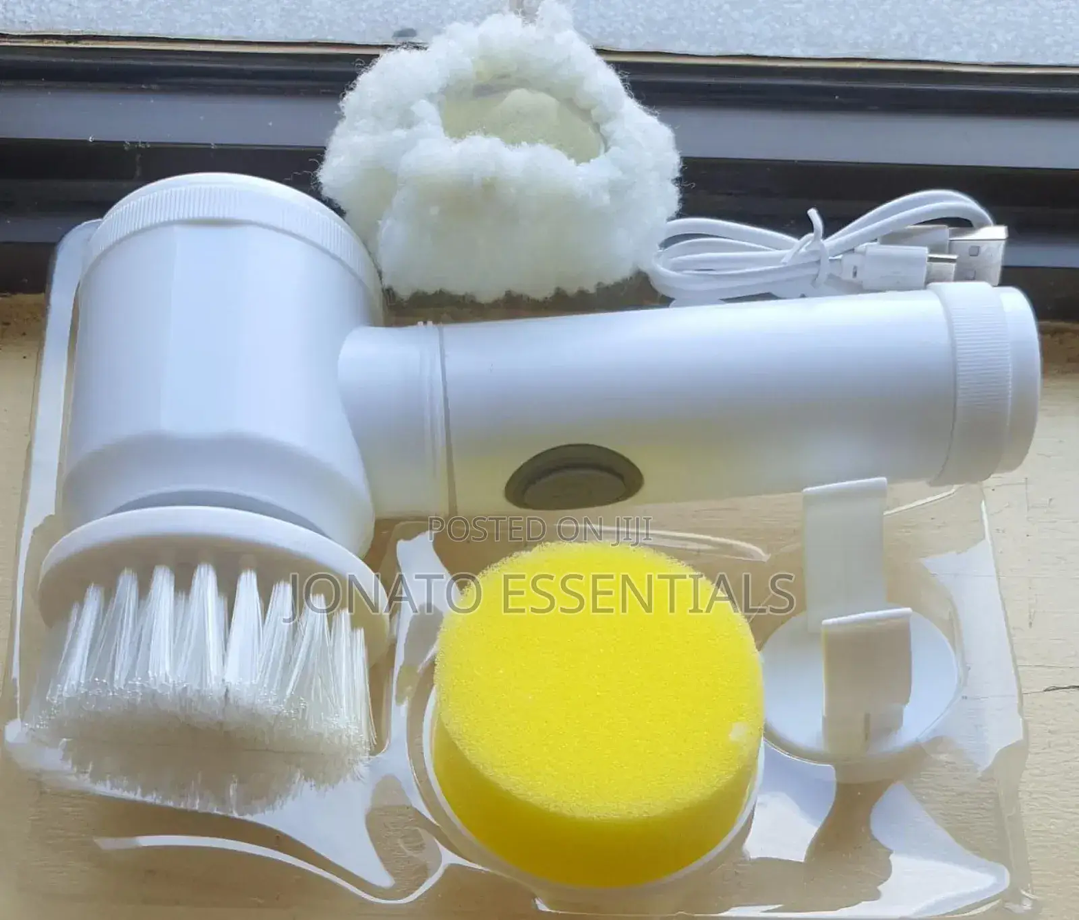 usb rechargable magic brush with 3 option (brush, sponge & polisher) plus adhesive storage hook