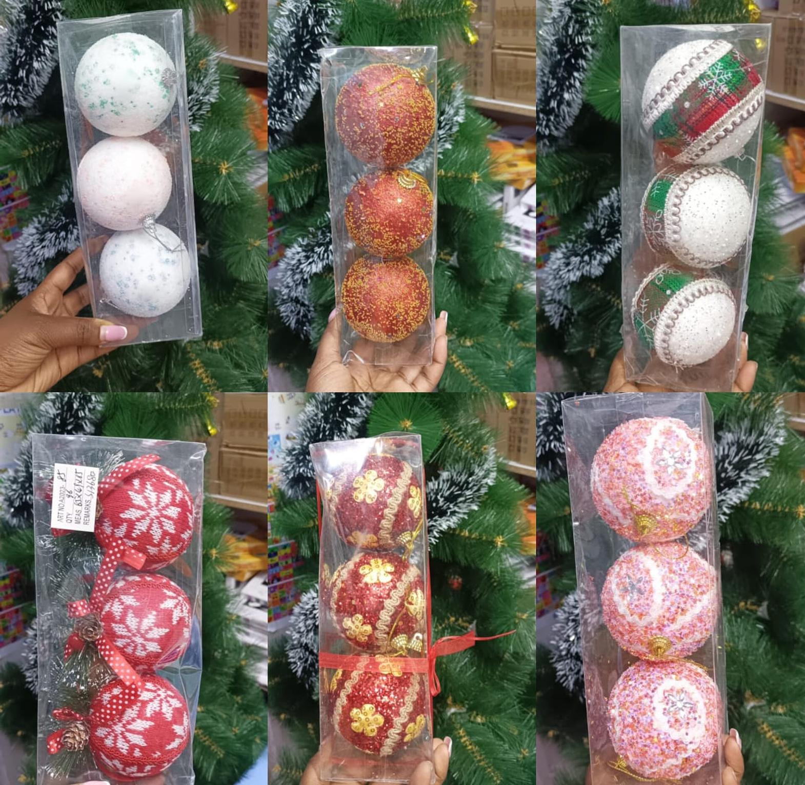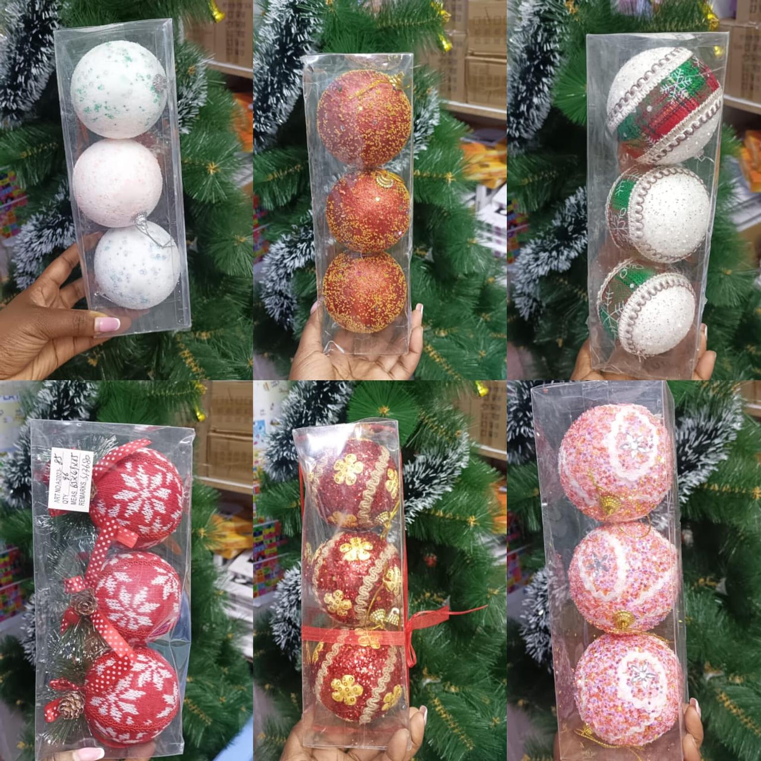 Christmas baubles Kenya, festive ornaments Nairobi, holiday tree decorations, glitter Christmas balls, affordable Yuletide decor, 3 piece bauble set, sparkling holiday ornaments, Kenyan Christmas gifts, tree hanging balls, shimmer baubles cheap.