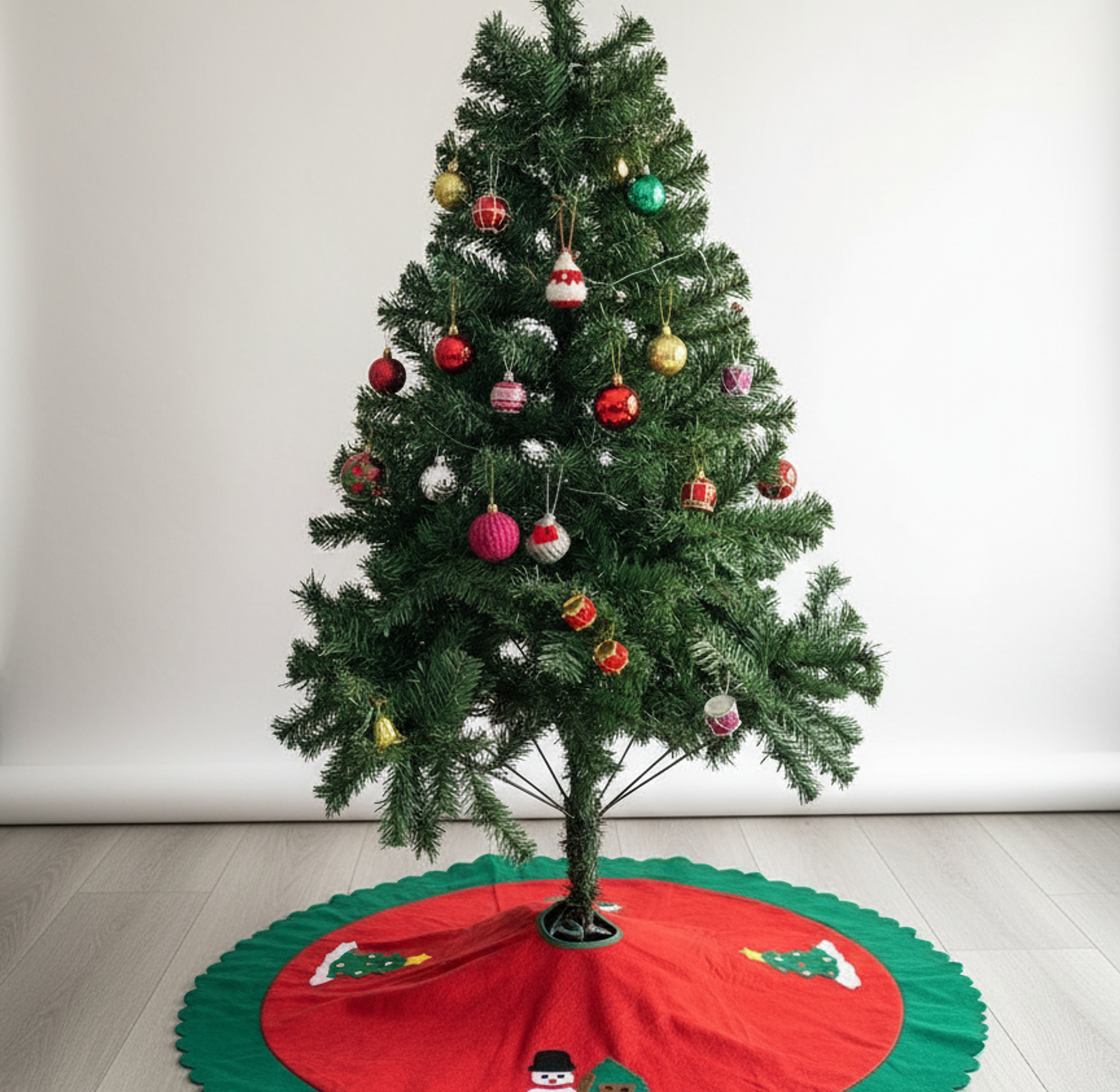 Christmas tree skirt Kenya, tree stand cover, festive floor mat, Christmas decoration items, holiday home decor, Xmas tree skirt for sale, red and green tree decor.