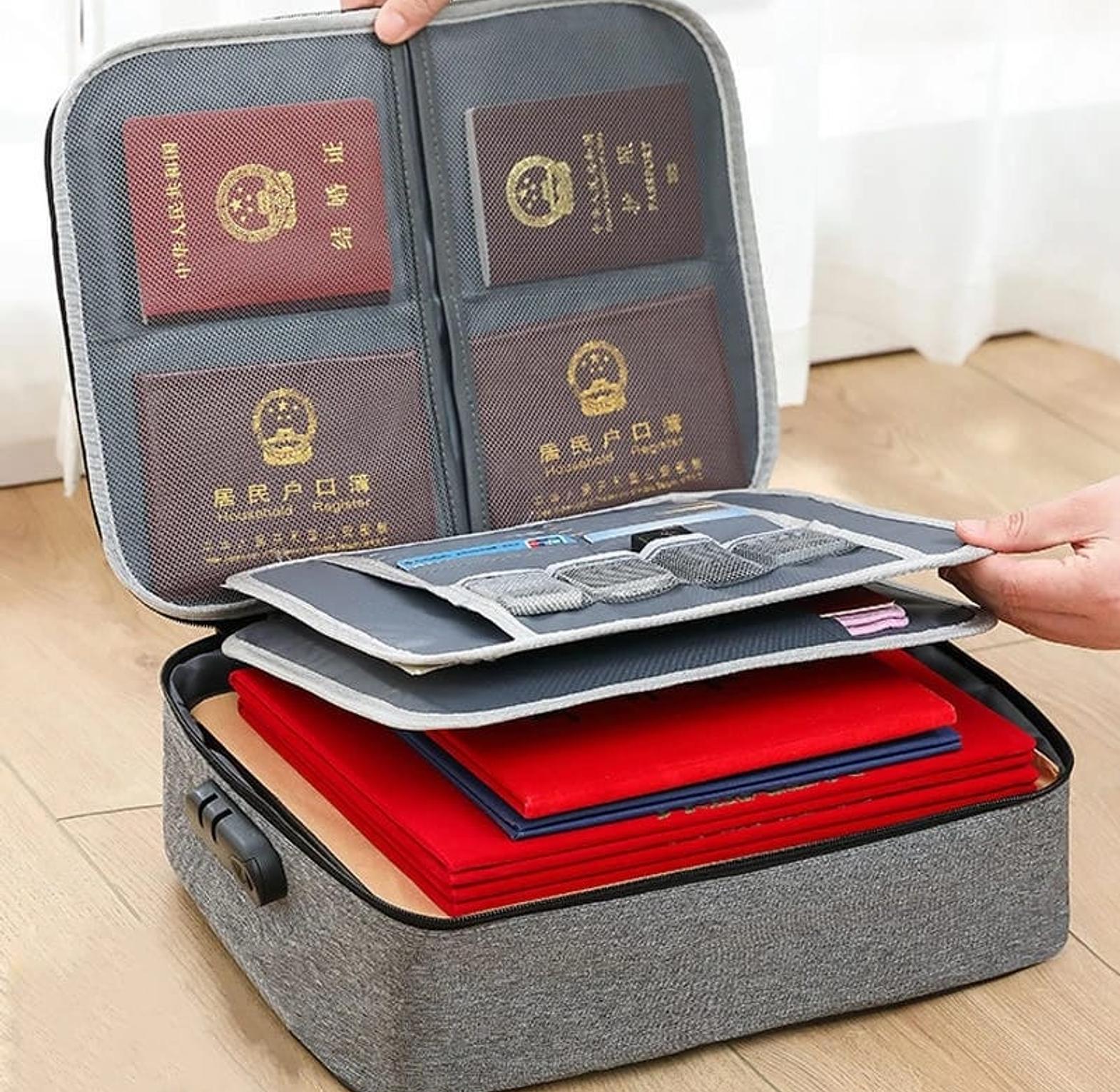 Fireproof & waterproof document bag with lock, fire safe large capacity document bag multifunctional waterproof three-layer travel organizer holder for school files, folders, supplies etc measurements: 37 × 10.5 × 27cm protect your most important items with this fireproof and waterproof document bag. made with fire-resistant silicone, it keeps your cash, documents, laptops, and passports safe from extreme heat and water damage. this bag features a secure combination lock for added security and has multiple interior pockets for organization. a must-have for every home, office, and travel, giving you peace of mind knowing your valuables are protected. fireproof document bag kenya waterproof safe bag kenya fire resistant pouch for documents portable fireproof safe with lock document storage bag kenya security bag for valuables