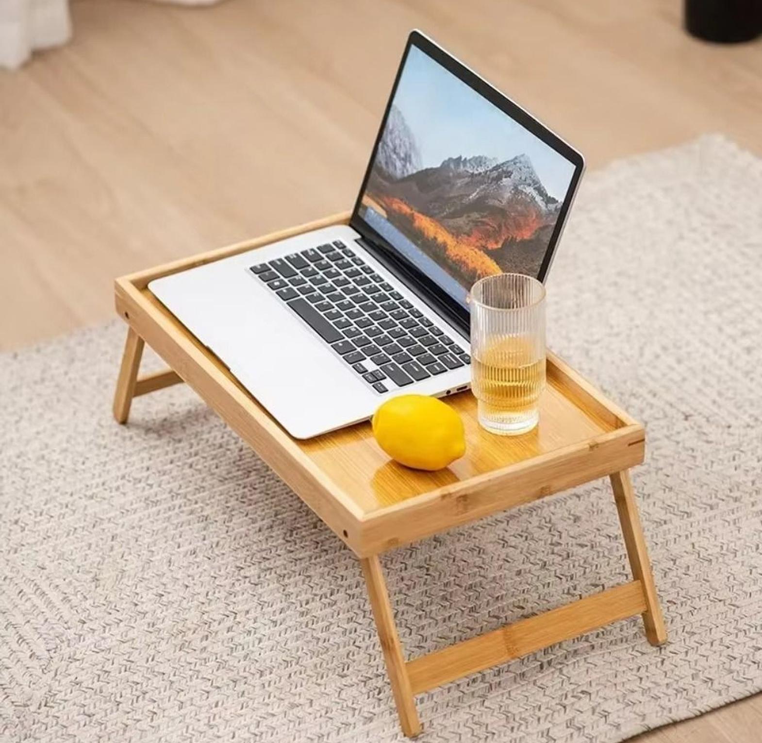 Foldable bamboo breakfast and laptop table breakfast in bed foldable bamboo tray less messy breakfast in bed do you love to have breakfast in bed on saturdays no more dirty couches or sheets by eating in front of the tv. the size of the breakfast in bed tray, tv tray, lap tray, lap desks for adults and kids is perfect and there is enough room to put your legs without bumping the tray top. surface of tray table is also large enough to hold an entire meal and it cleans super easily. work from your bed or recliner are you looking for a laptop table for bed when working, so you can do it as good without getting up from couch or bed great temporary serving trays for kids to eat or to work on homework. portable bamboo wood bed tray breakfast home folding laptop desk tea food serving table folding leg laptop desk on the bed.