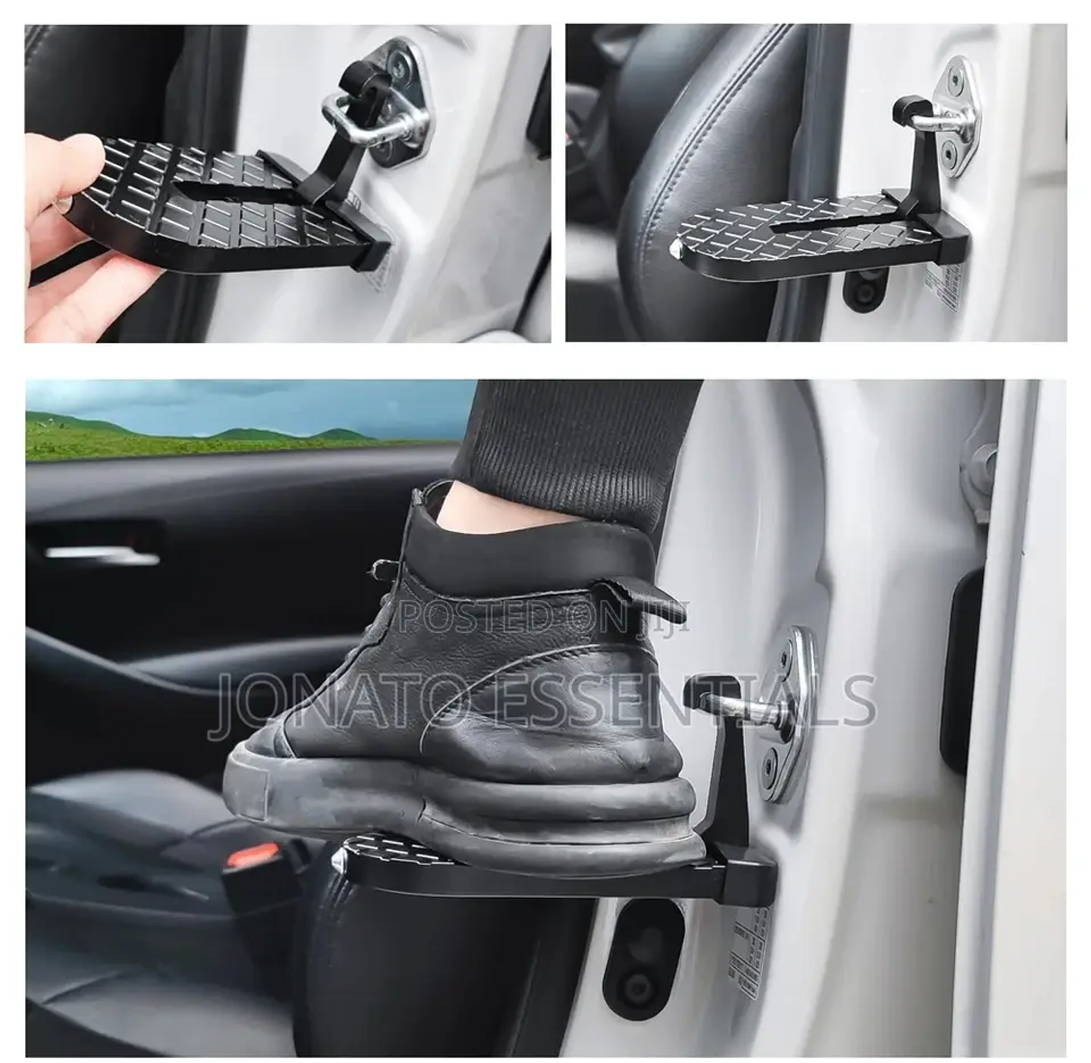 Foldable car door step, roof rack step foldable car roof rack step car door step this step is used to step on so as to access the roof of the car it is made of quality material making it impossible to break. it can also be used as a safety hammer incase you want to break the window car door step multifunction universal latch hook auxiliary foot pedal aluminium alloy safety hammer multifunction universal latch hook auxiliary foot pedal aluminium alloy safety hammer