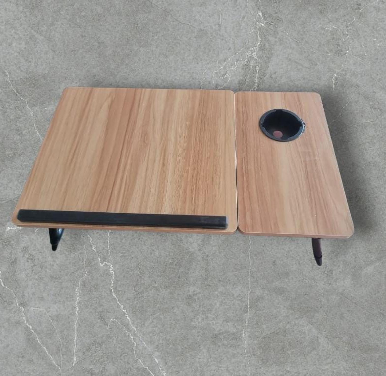 Wooden profile 5 levels Adjustable angle foldable study table or laptop table with cup slot.