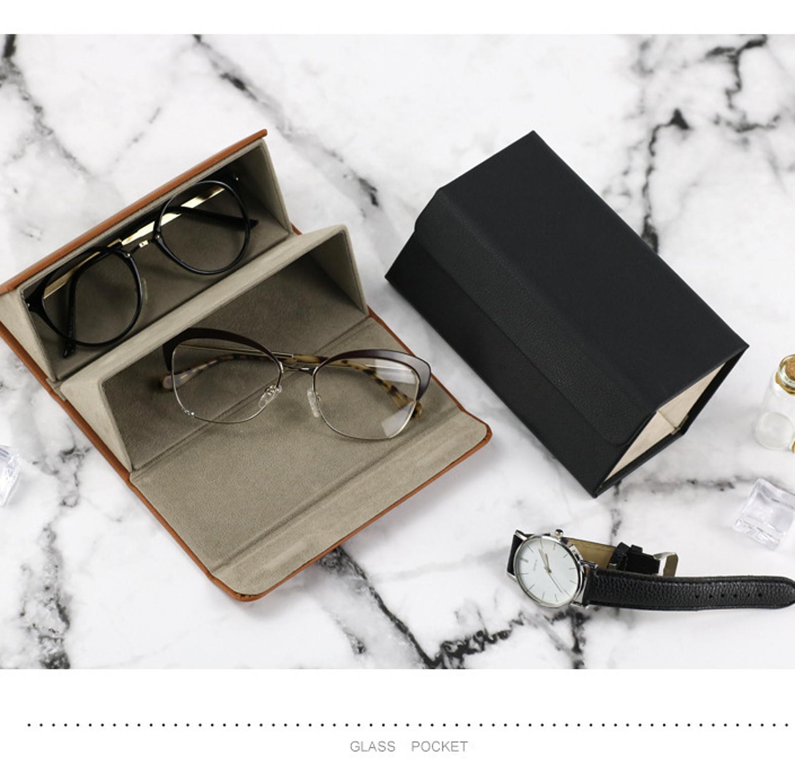 Leather sunglasses organizer sunglasses organizer box folding portable glasses travel pu leather case home storage used to store or arrange eyeglasses or sunglasses. it is foldable and can be hanged. made of leather. leather eyeglasses or spectacles storage folding portable glasses travel pu leather case home storage.