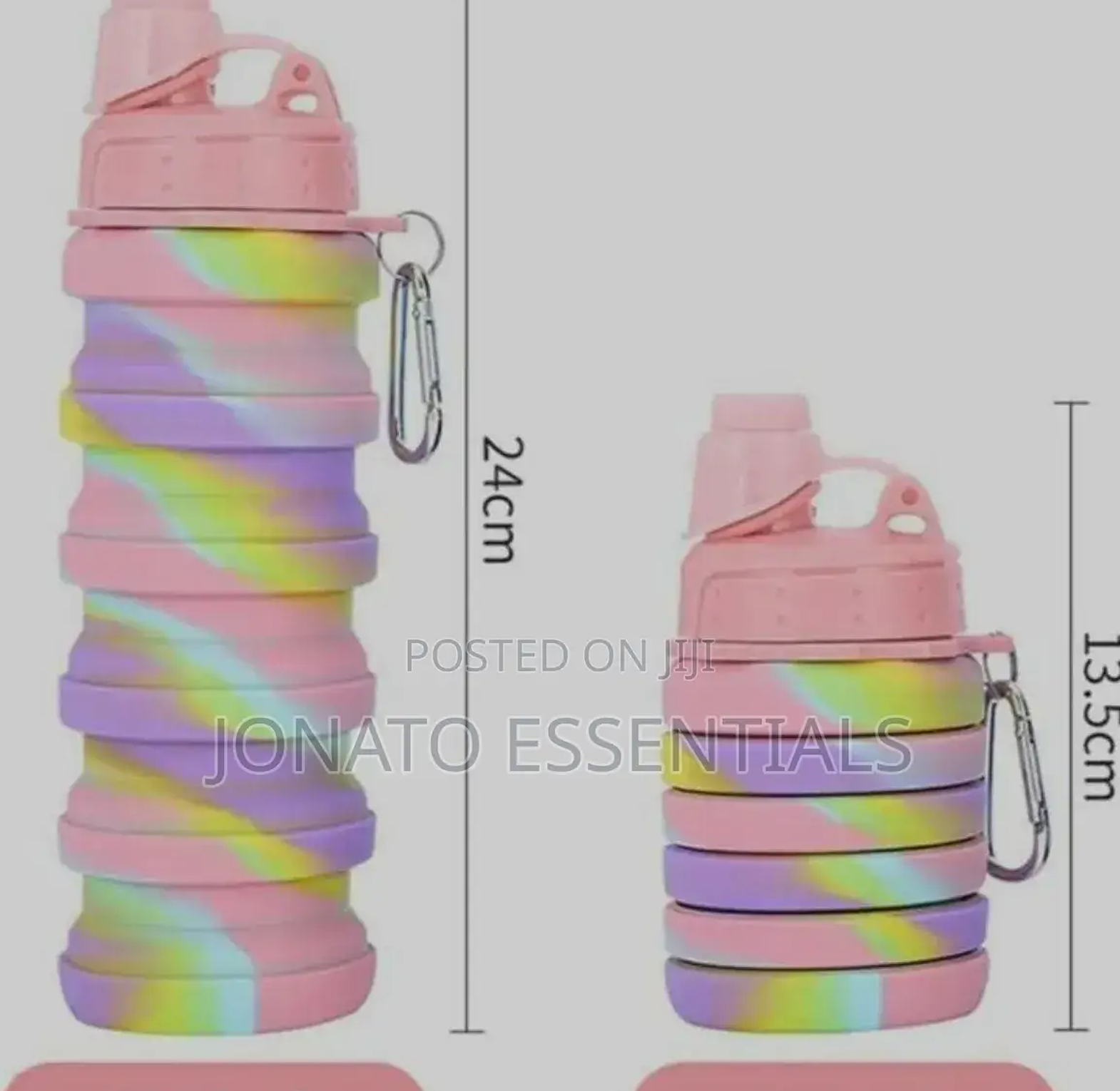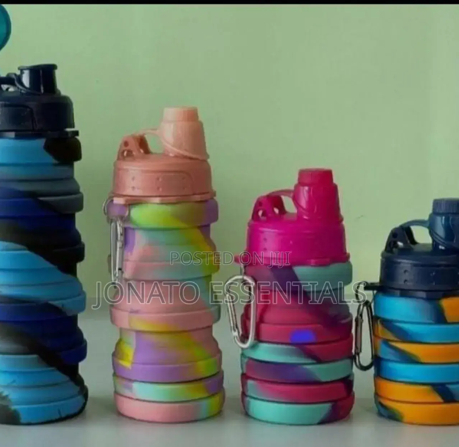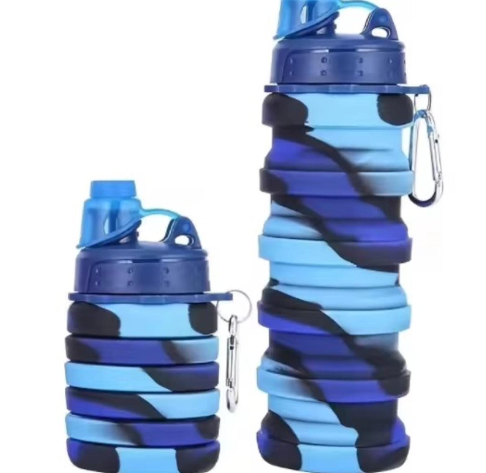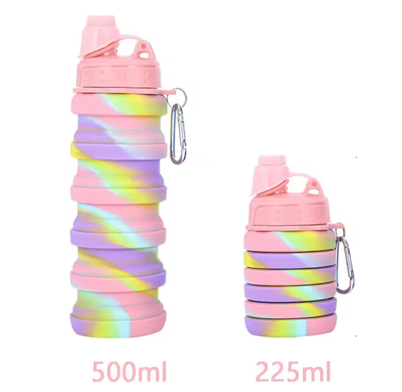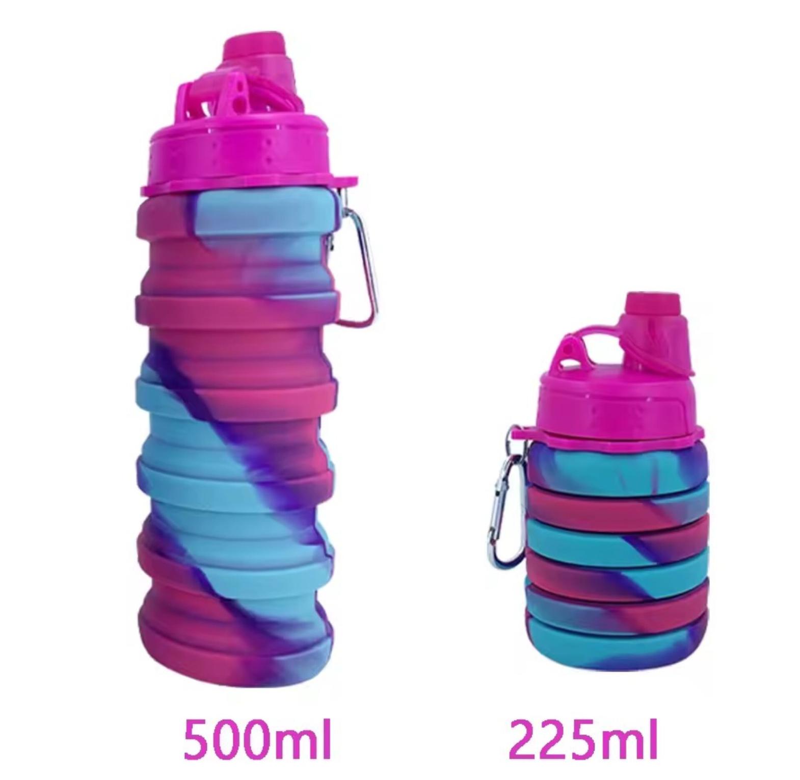 Foldable silicone water bottle collapsible water bottles capacity:500ml material: silicone reusable and eco-friendly :made of bpa-free silicone, this water bottle is reusable and reduces plastic waste, making it an eco-friendly choice. portable and perfect for on-the-go use :the foldable design and lightweight material make this water bottle perfect for carrying around, whether you're at work, school, or traveling. silicone retractable kettle foldable water cup outdoor sports portable kettle colorful cup with carabiner with handle.