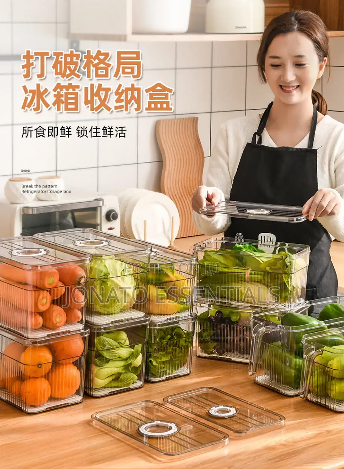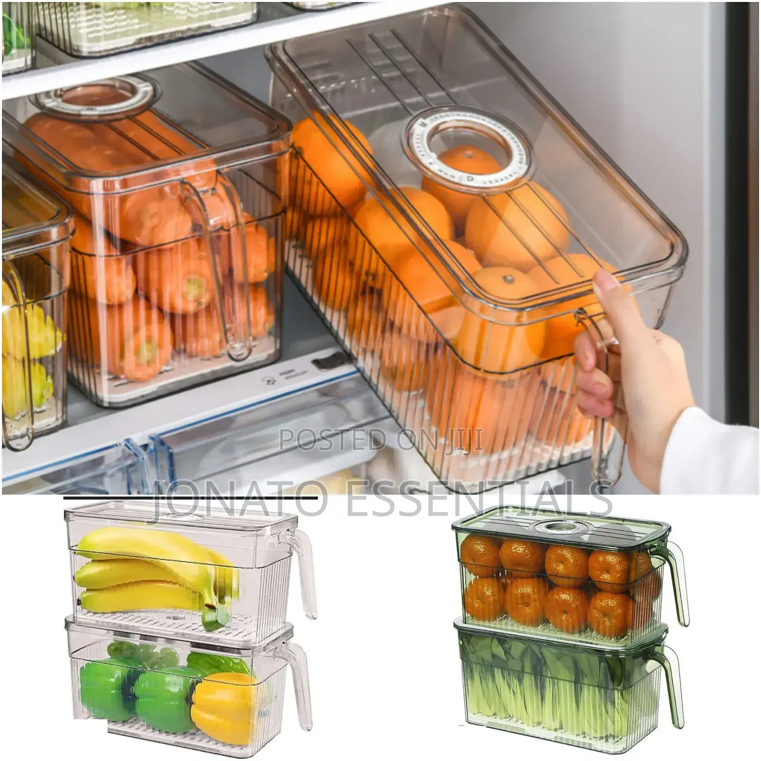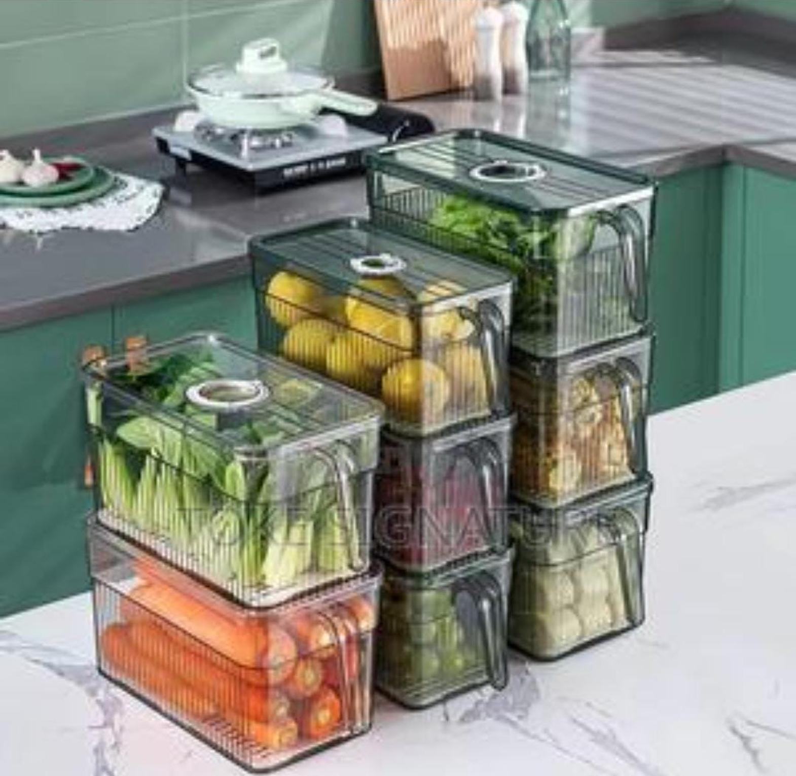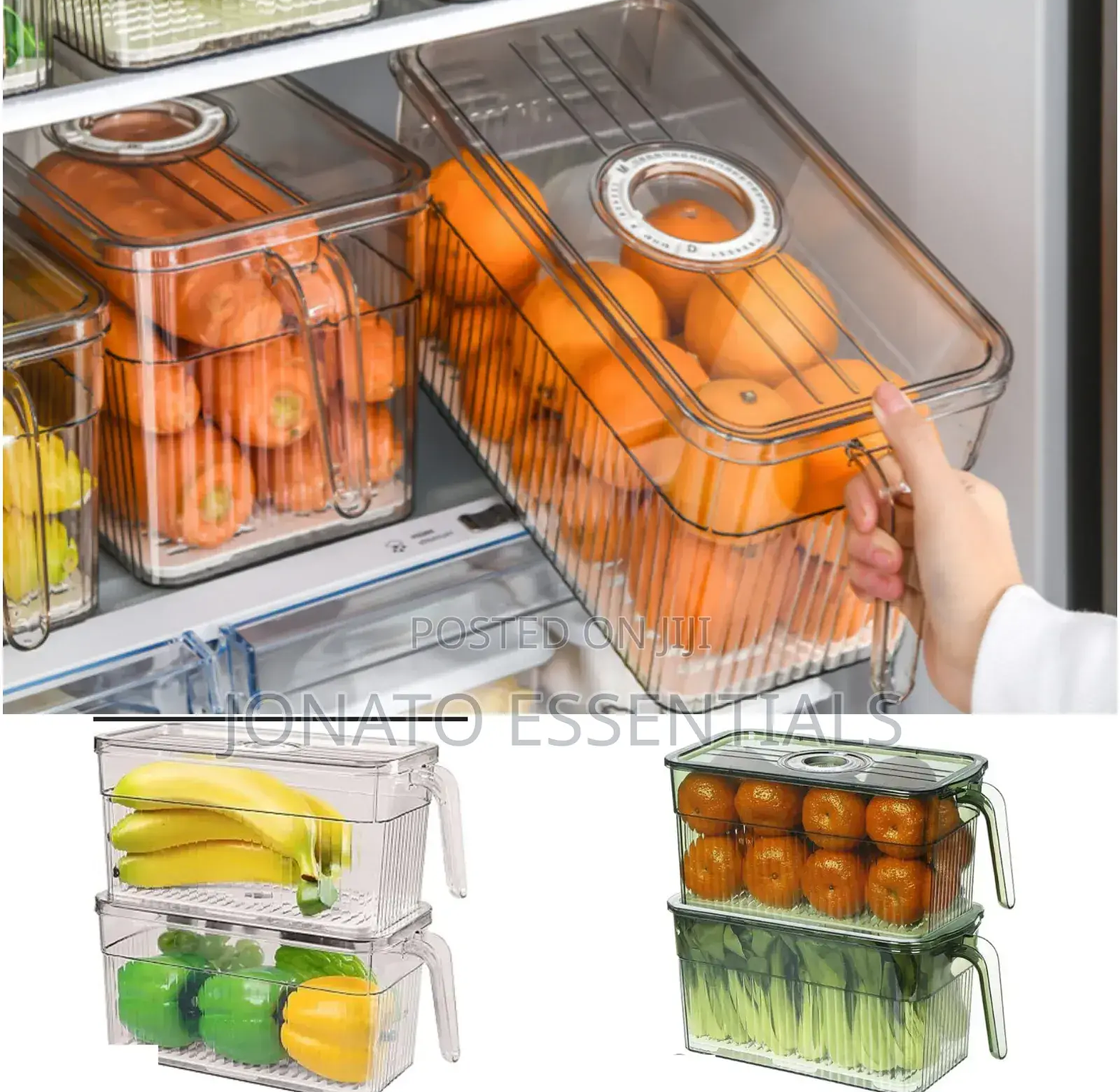 Fridge acrylic storage containers fridge storage containers capacity 3ltrs material eco friendly material and non toxic (acrylic) with handle design built in draining board to prevent food items from rotting. stackable refrigerator storage box with lid food fresh keeping vegetable fruit boxes basket storage containers time keepers box