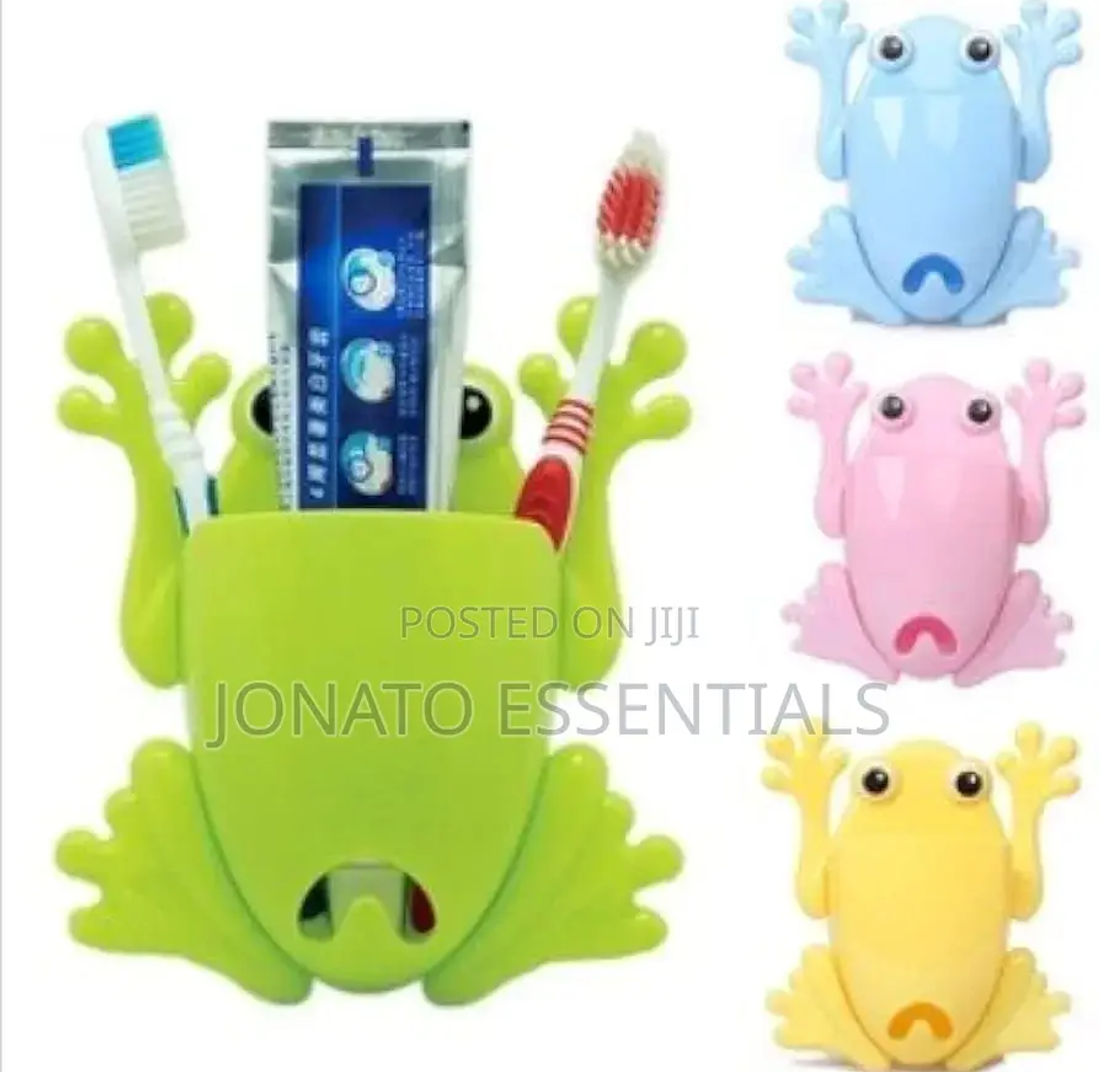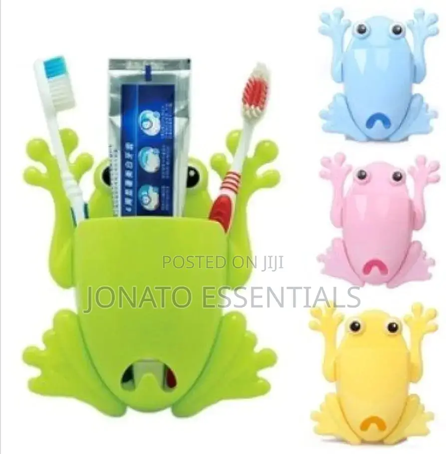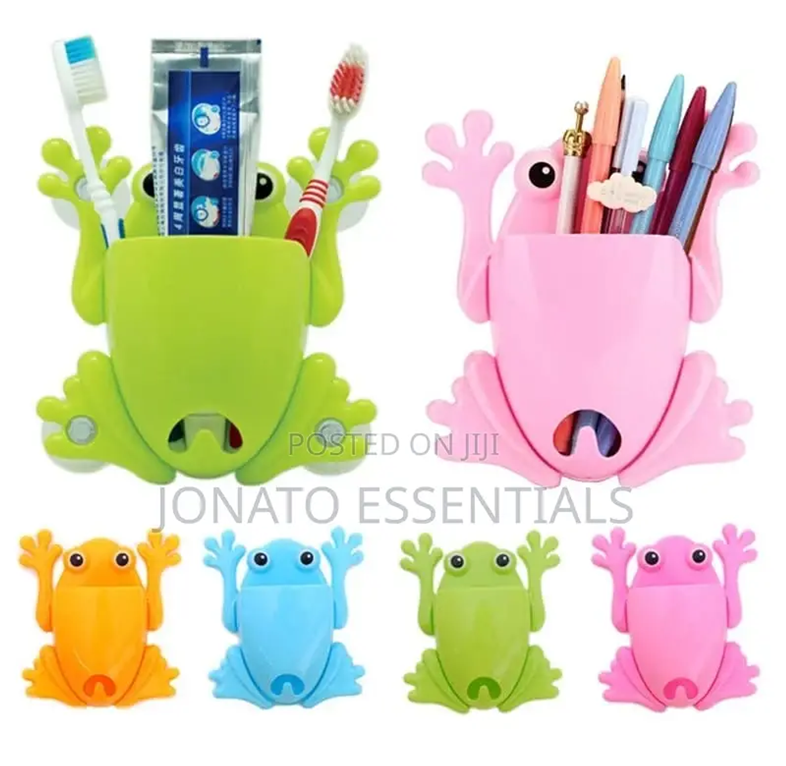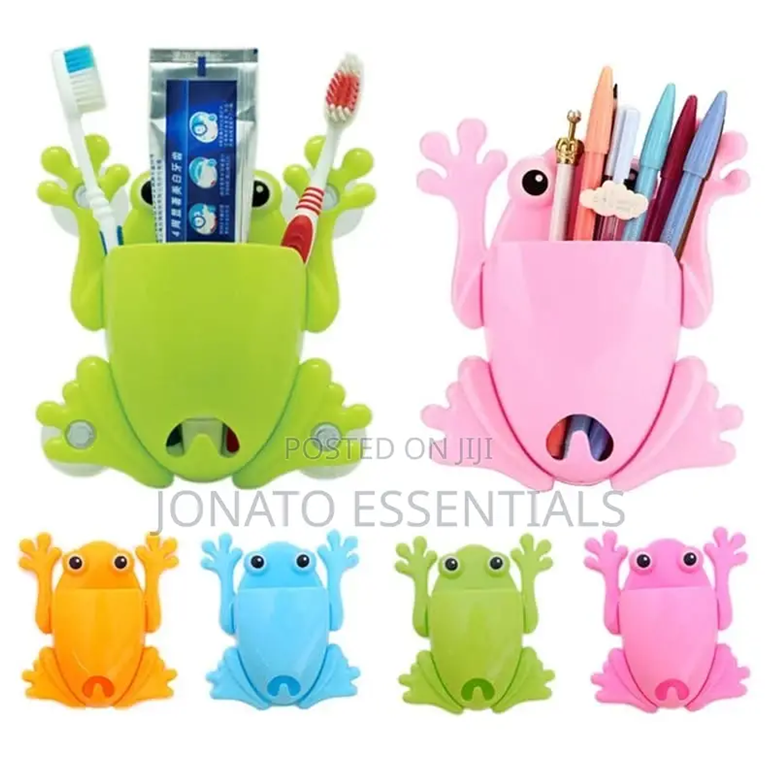 Frog shaped toothbrush and toothpaste holder frog cartoon multipurpose organiser perfect to store toothbrushes, spoons, chopsticks, mobile phones and all other objects of similar size. 4 suction cups on back for attaching vertical on tile, mirror or other smooth surface. toothbrush holder children frog cute cartoon household bathroom toothbrush holder wall-mounted suction cup toothpaste storage