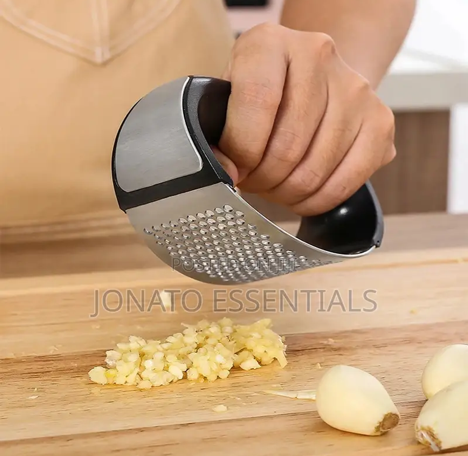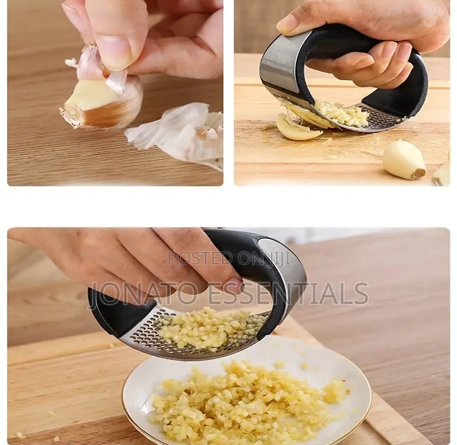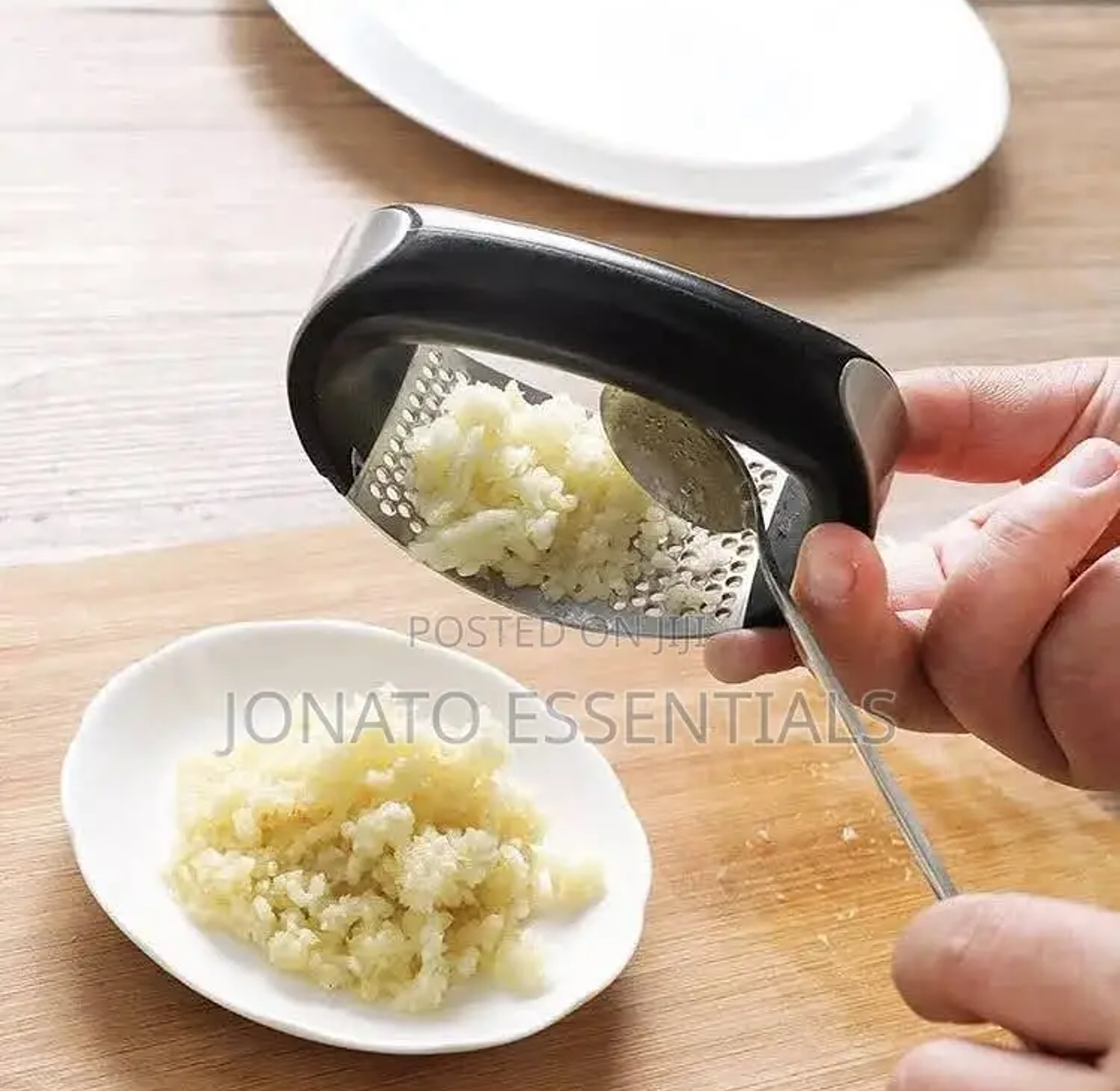 Garlic press and squeezer arched design is easy to use, gently press out the second garlic the holes are good and the garlic is delicate. the handle is non-slip and comfortable made of hard stainless steel material. stainless garlic press household press squeezer manual gralic press device handheld ginger garlic tools kitchen accessories.