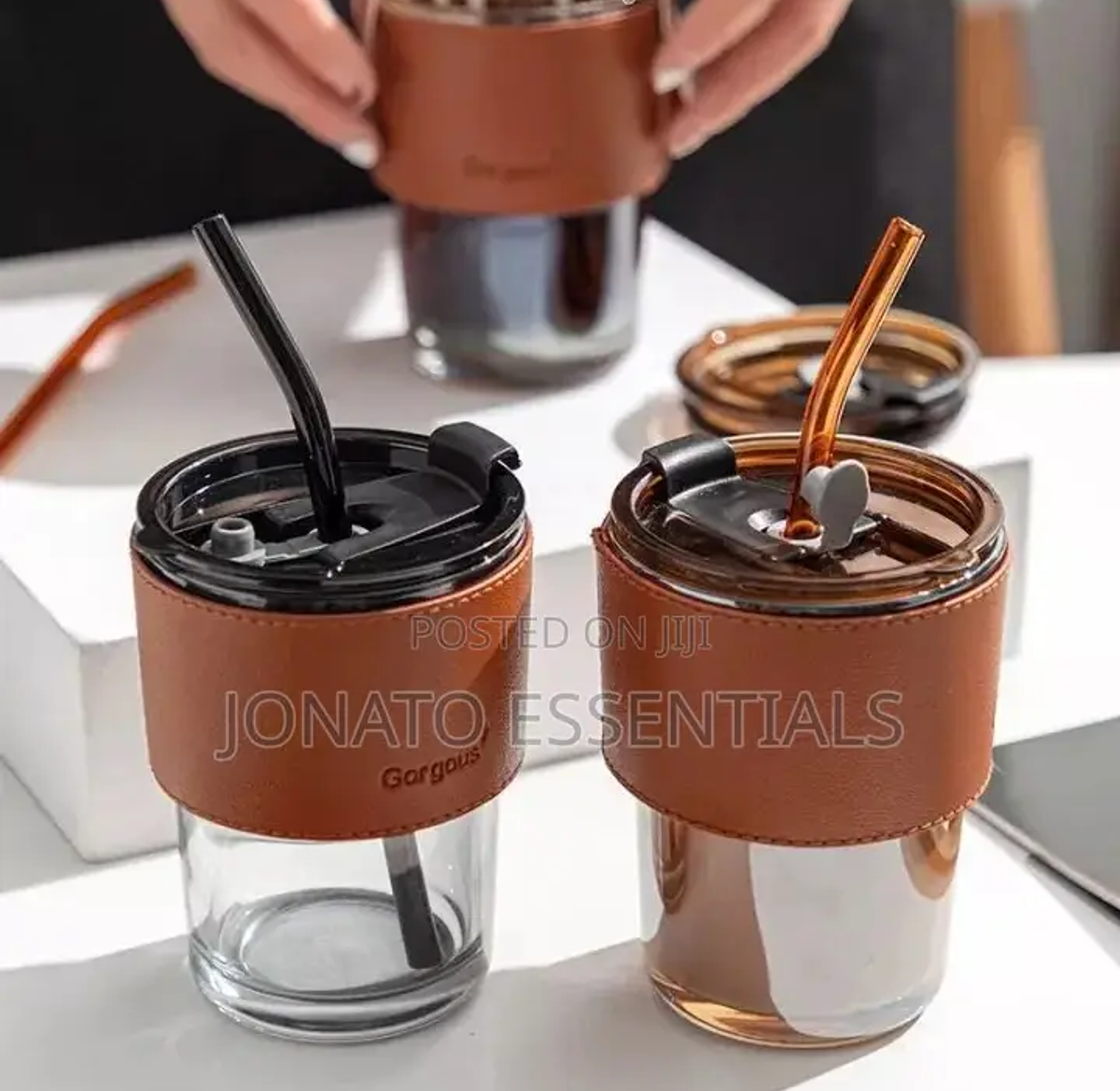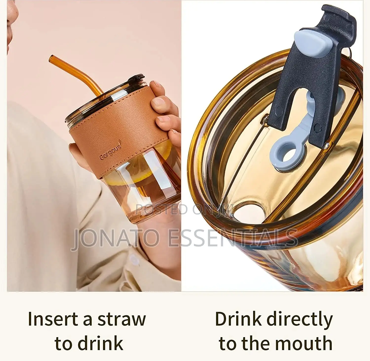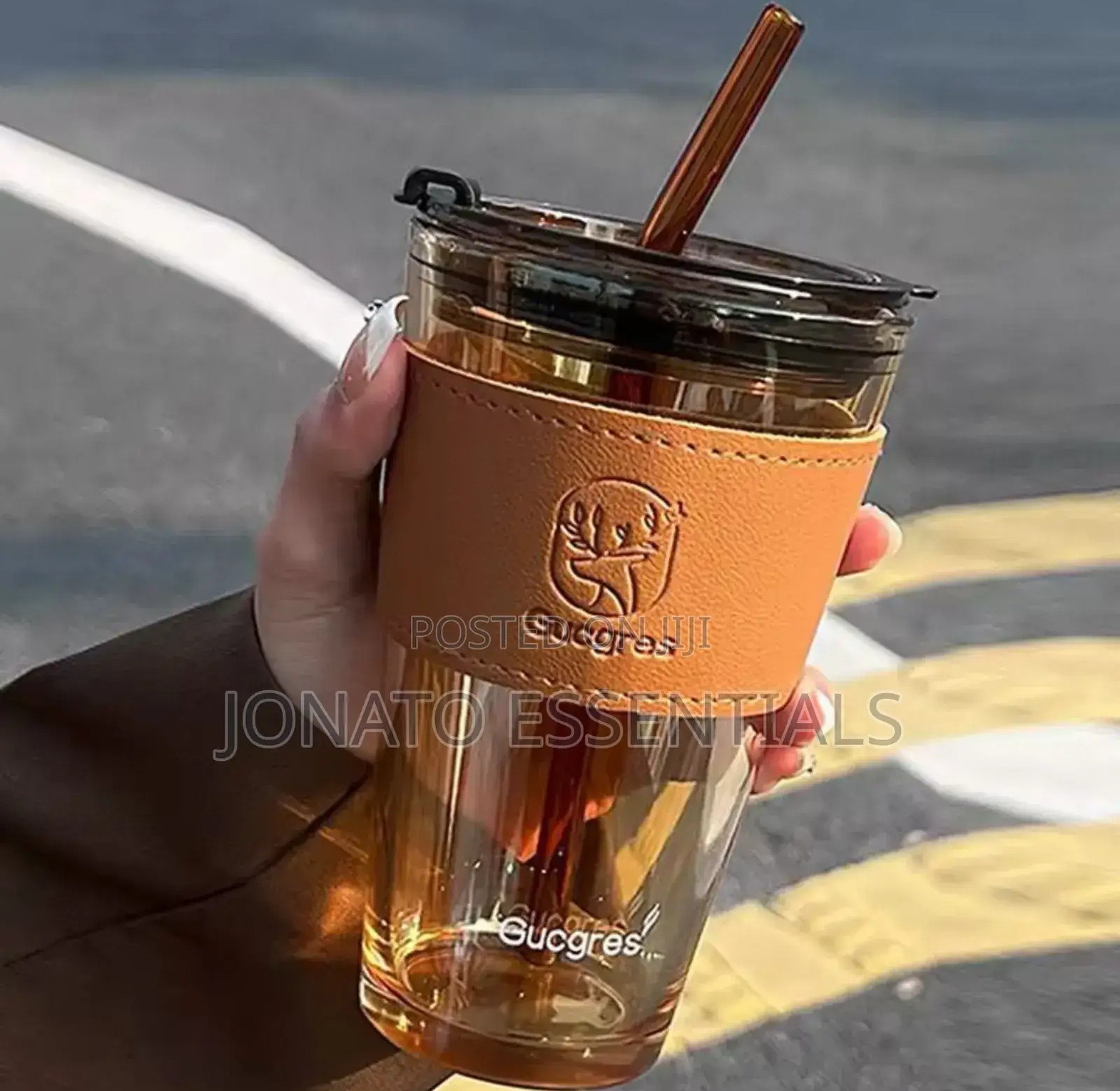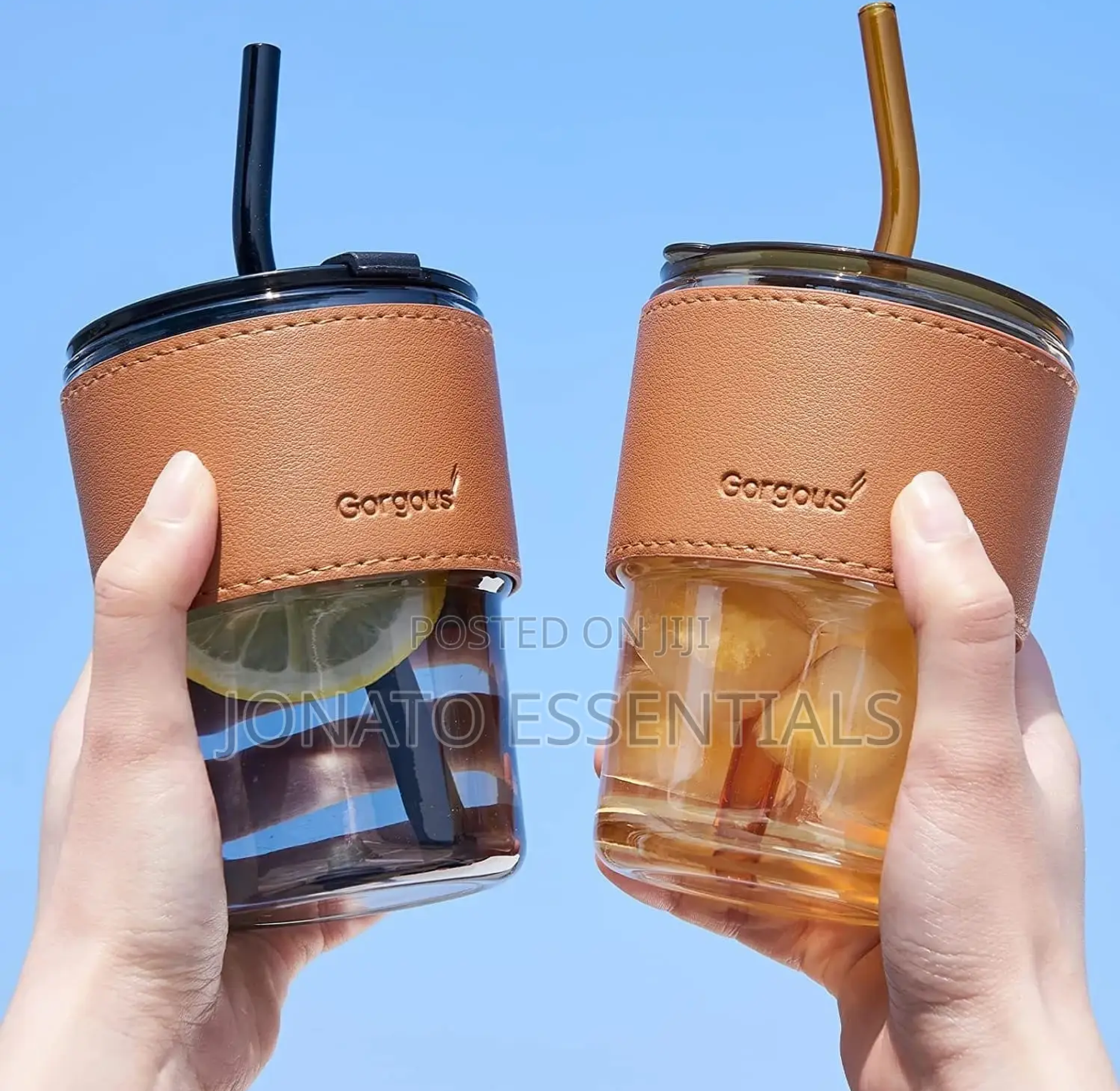 Glass tumbler with straw and lid glass cups with cover + straw + leather sleeveand capacity :450ml 15oz, glass cup with leather protective sleeve, used with straw and/or direct drinking mouth multi-purpose: this bottle with glass can hold any beverage you like, such as: water, juice, iced tea, cold brew coffee, beer, etc designed with high borosilicate glass, which can withstand high temperature of 27°f. reusable boba bottle, iced coffee glasses, travel tumbler for bubble tea