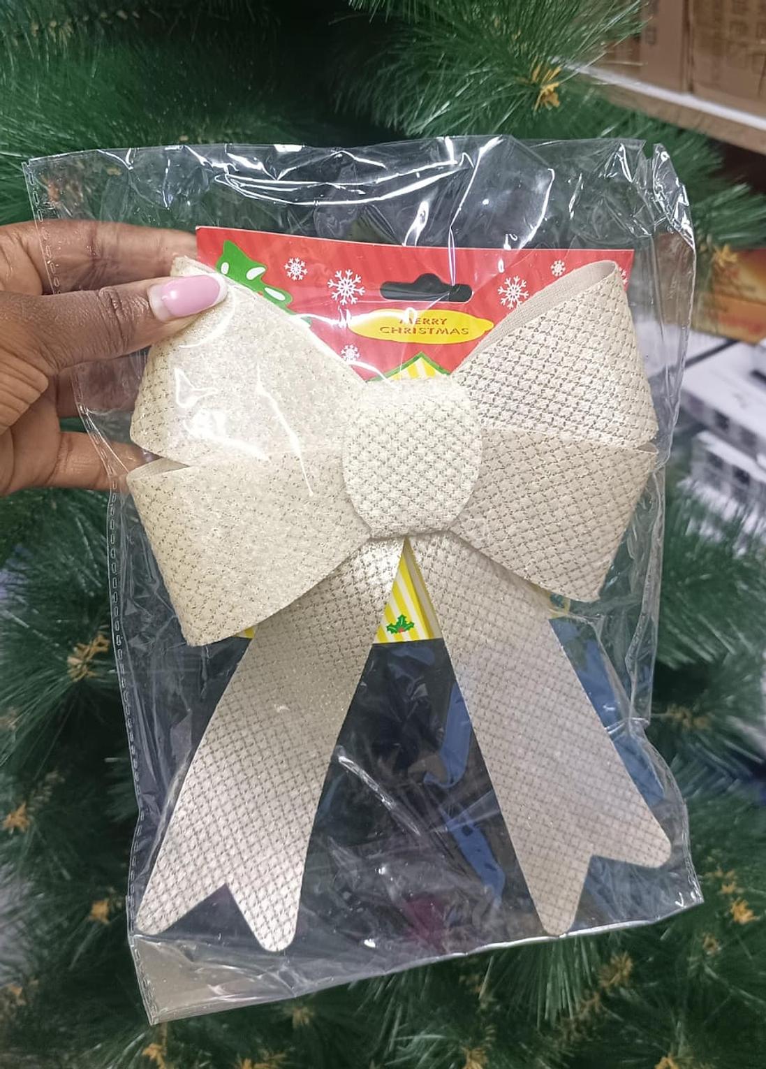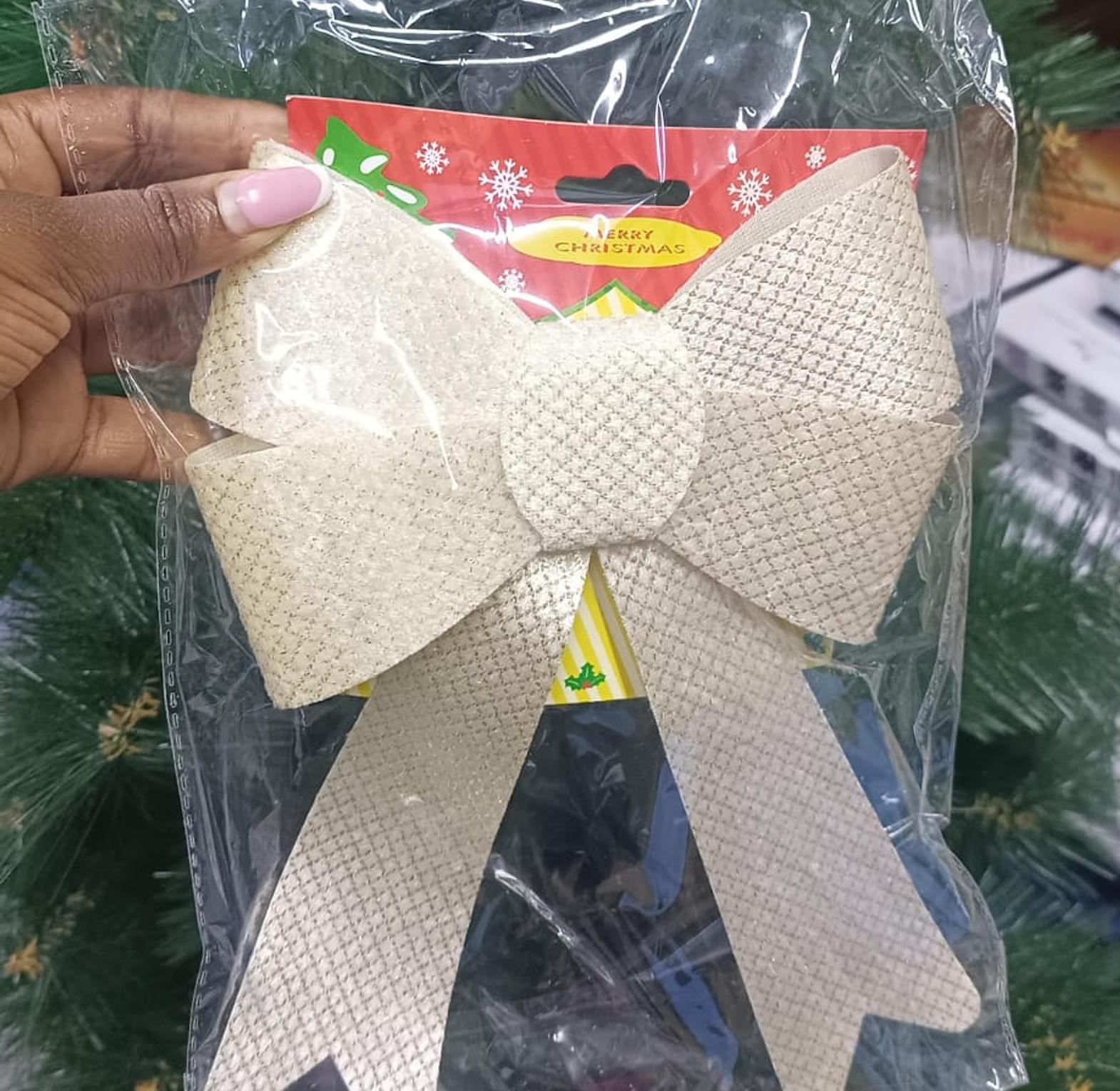 Christmas bow Kenya, gold festive ribbon, shiny holiday decoration, Christmas tree bow, gift wrapping bow, affordable Christmas decor Nairobi, metallic bow ornament, yuletide ribbon bow, sparkling Christmas accessory, Kenyan holiday decor