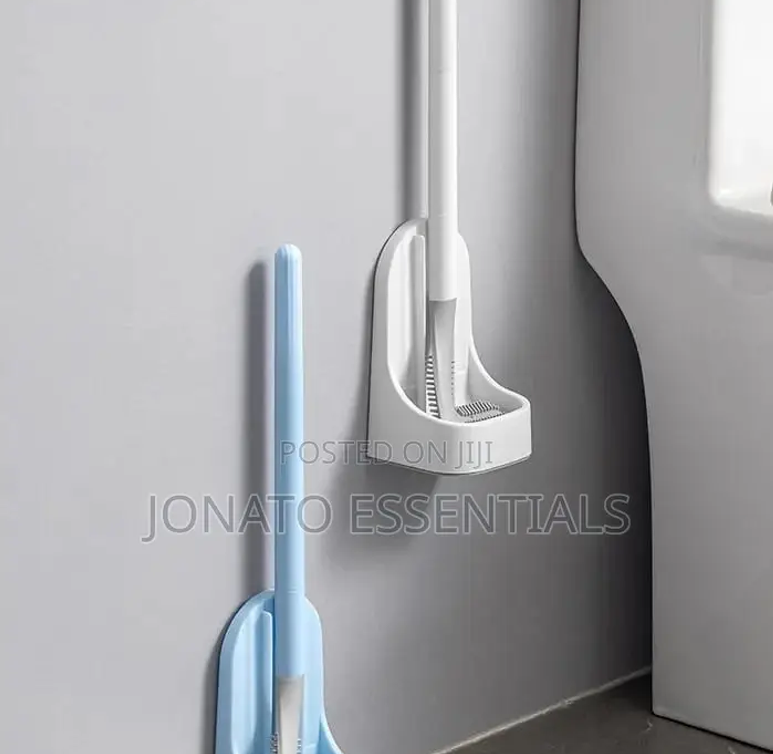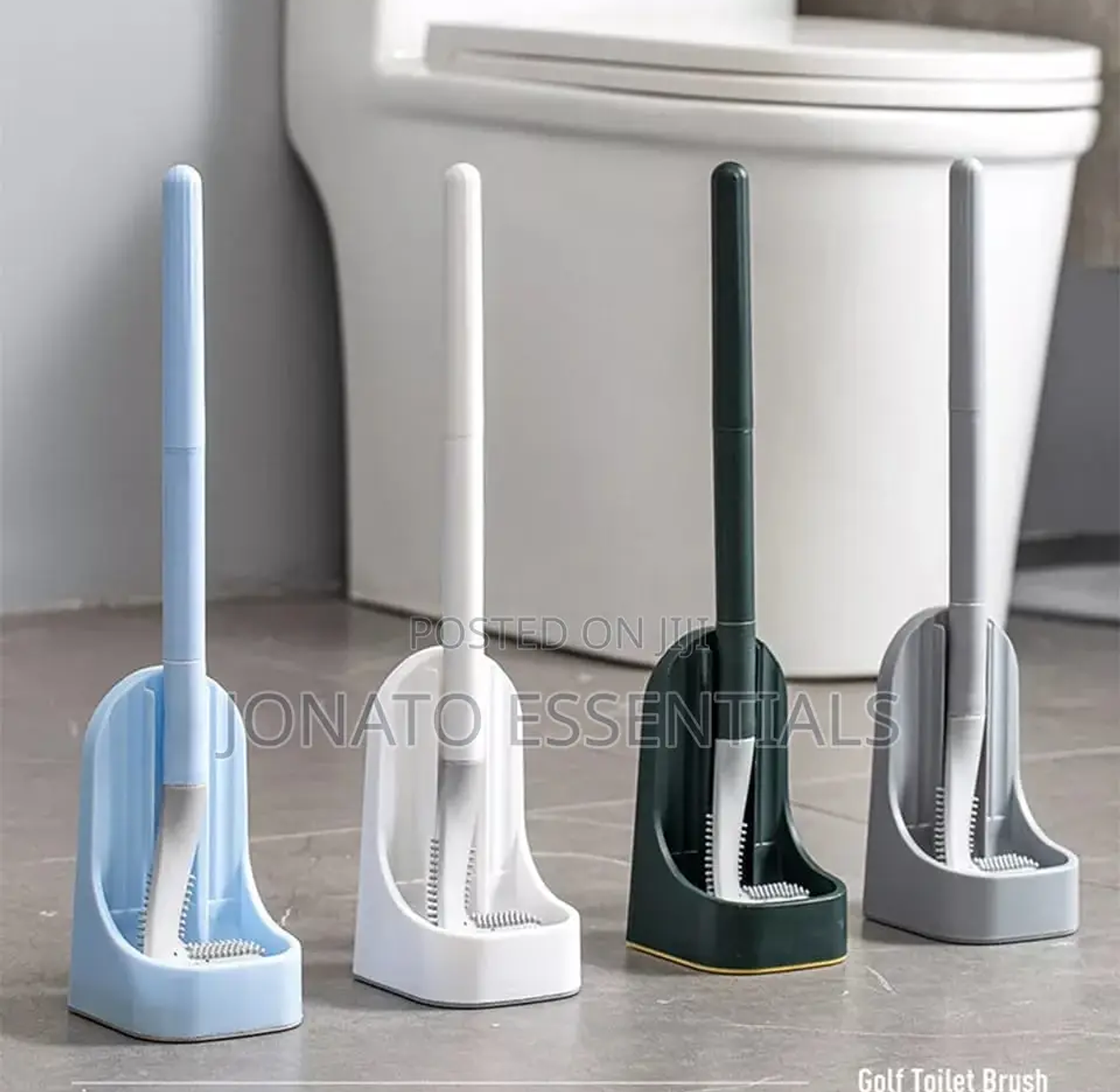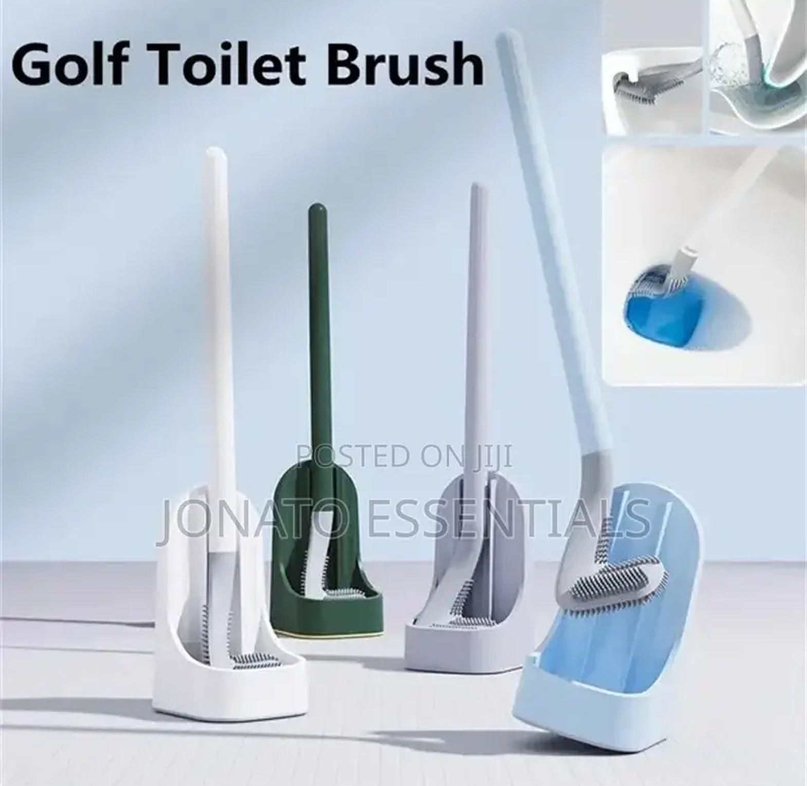 Golf design toilet cleaning brush with holder and long handle plus a base that you can remove. thoroughly clean any corner of the toilet: the unique triangle design of the brush head fits the toilet at every angle, leaving no blind spots. can deep clean any corner of the toilet. easy to clean corners and dark grooves. silicone brush head quick drying long-handled toilet brush corner cleaning brush wall-mounted cleaning tool for bathroom toilet.