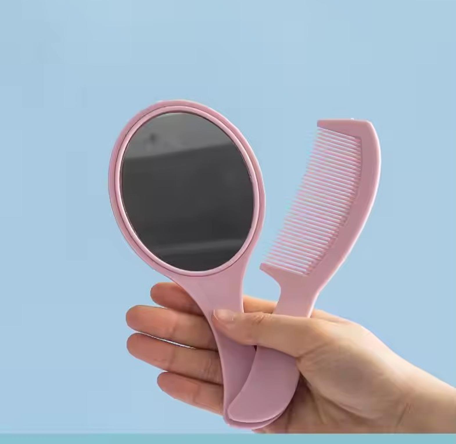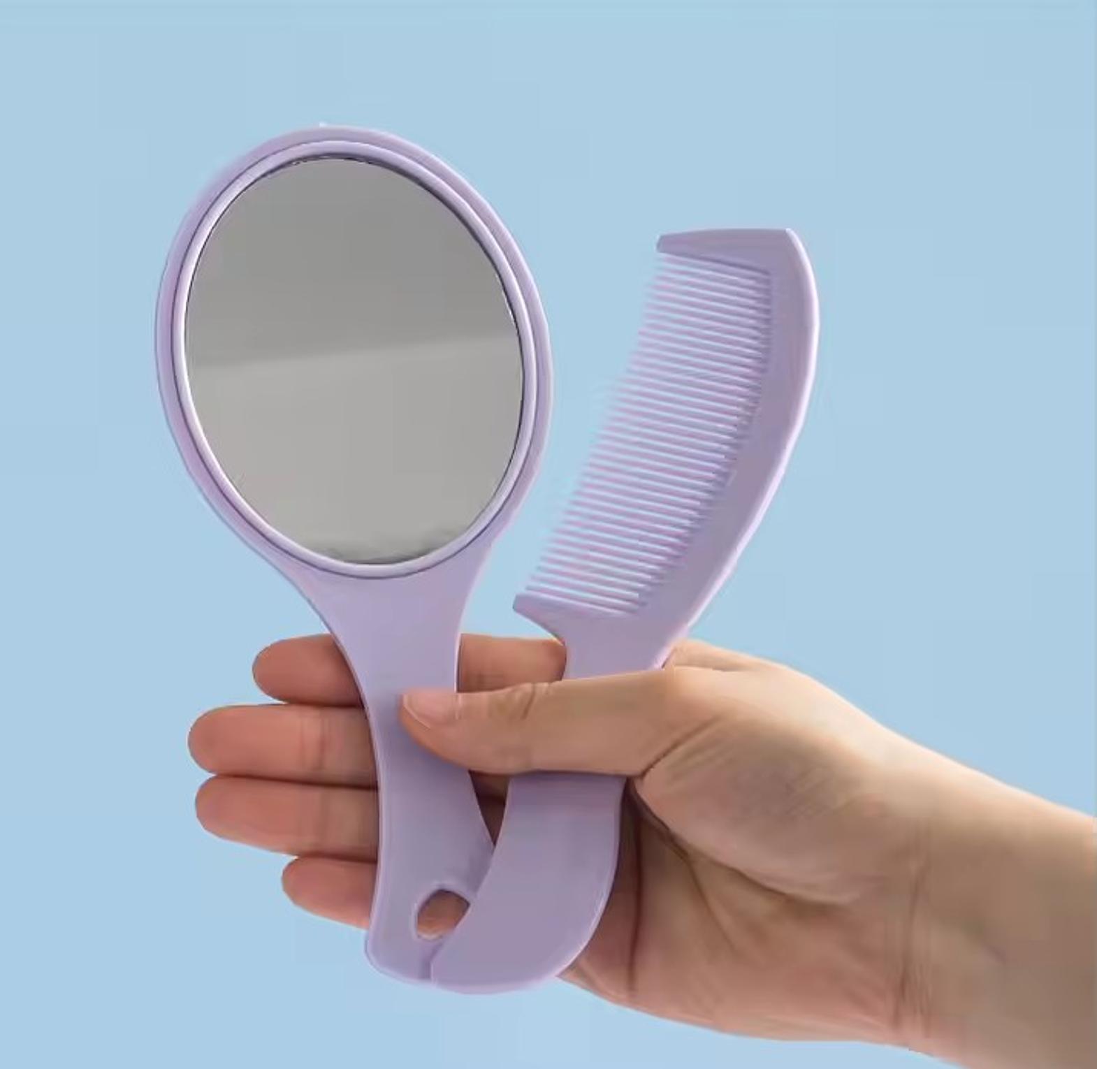 Hand mirror comb set key features: high-quality material: made with durable, scratch-resistant materials for long-lasting use. portable design: lightweight and compact, making it ideal for travel, handbags, and on-the-go use. stylish and elegant: features a modern design that complements any dressing table or vanity. multipurpose use: perfect for hair styling, makeup application, and grooming.detangling hair brush, make-up mirror, cute 2 in 1 mirror comb set, creative comb and mirror set for girls, multi-design baby comb setshow more
