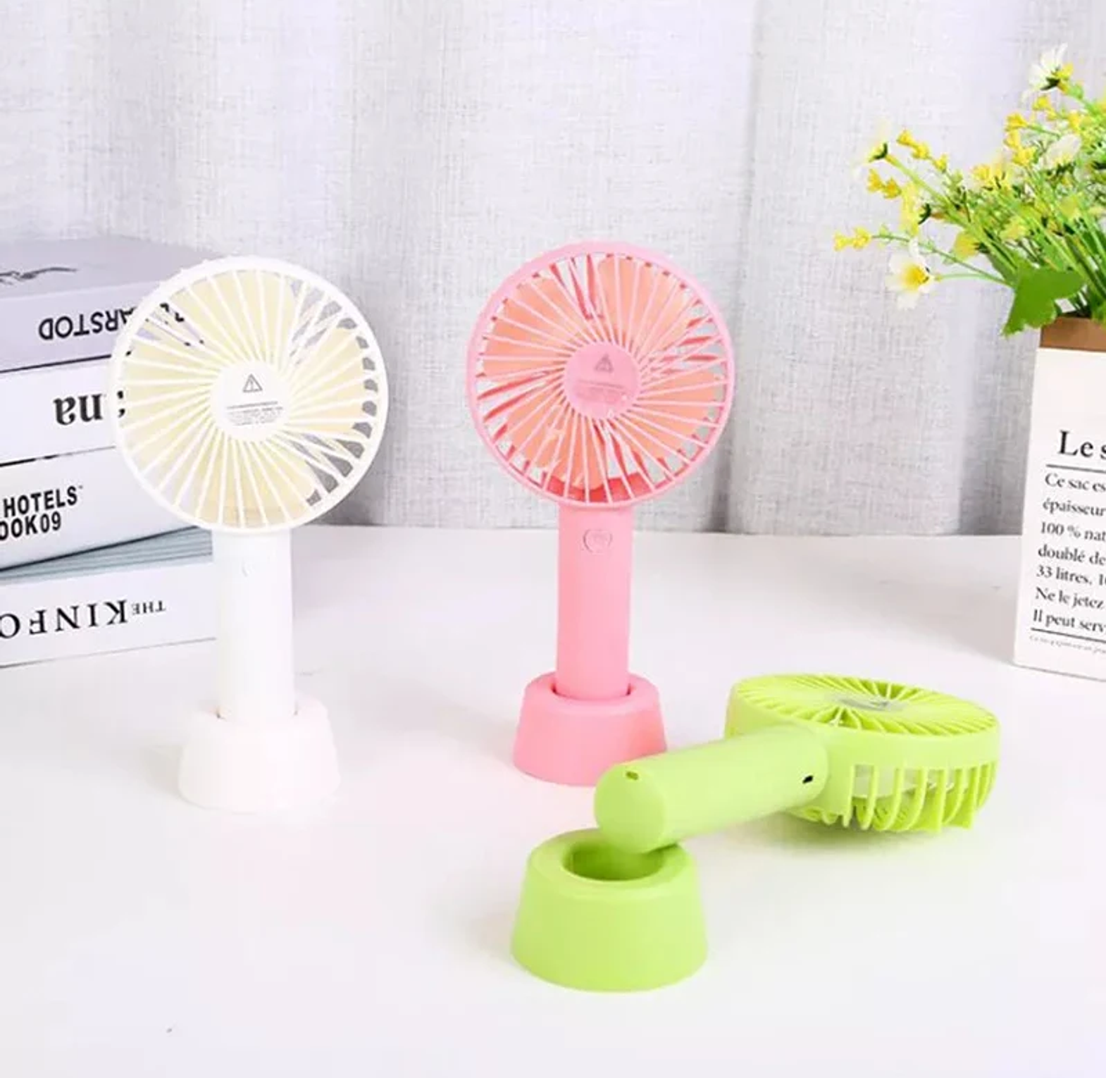 Handheld rechargeable fan adjustable wind speed: features 3 wind modes, switch freely by the power button. usb powered: compatible with computers, laptops, portable chargers and other devices with usb output. base support: with the supplied base, stands up on the desktop more stable. design: easy to carry, can be put into your bag or use. application: perfect fan for the office, home, dorm, study, library, games room or outdoors. usb rechargeable mini handheld fan outdoor mini creative desktop office mute charging portable handheld fan for office travel.
